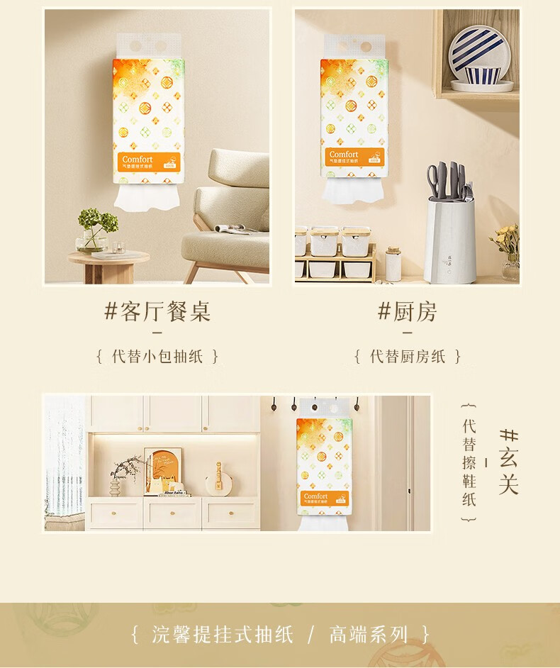 【自营】蓝漂浣馨系列悬挂式纸巾抽纸底部挂抽纸餐巾纸卫生纸擦手纸 14提 FCS-52142