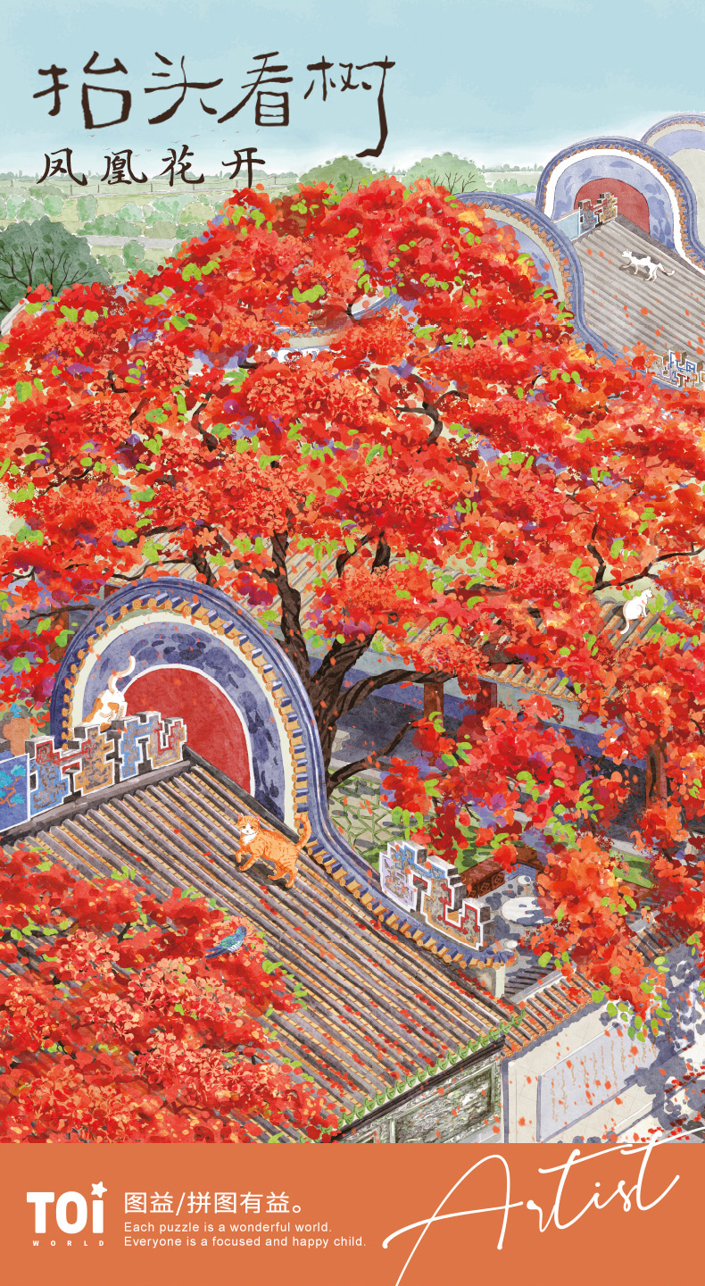 TOi图益-潮玩拼图抬头看树系列-凤凰花开-1000片-分包款