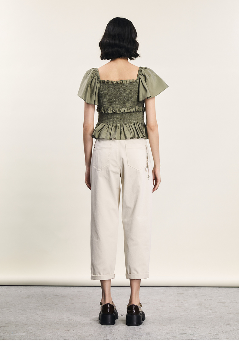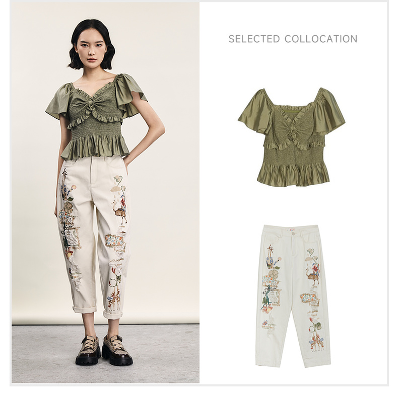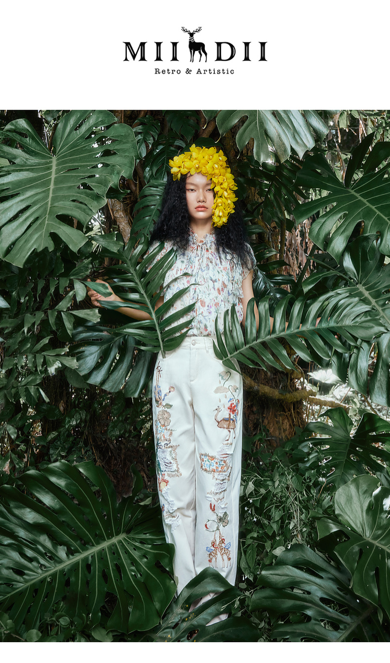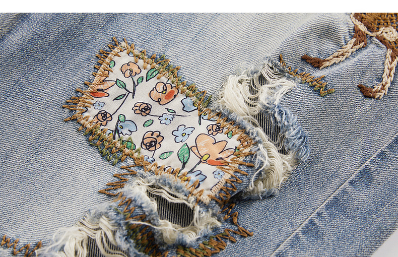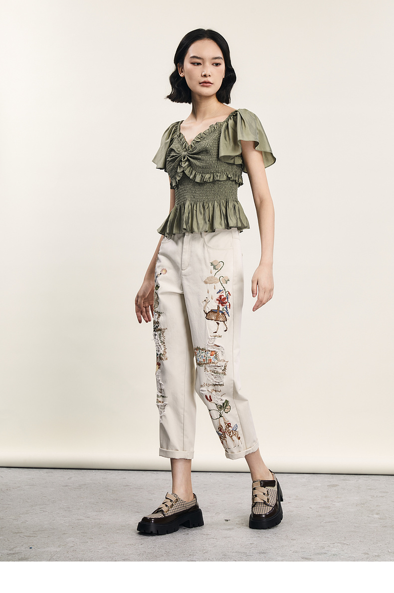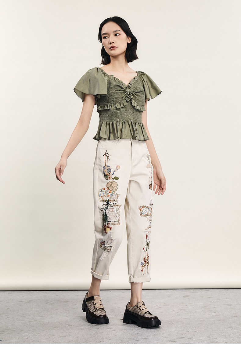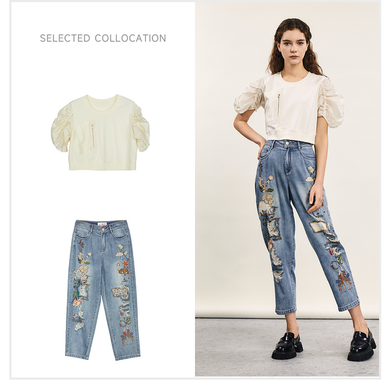 谜底萝卜裤女2024夏季新品复古重工绣花破洞宽松九分裤242MK0666
