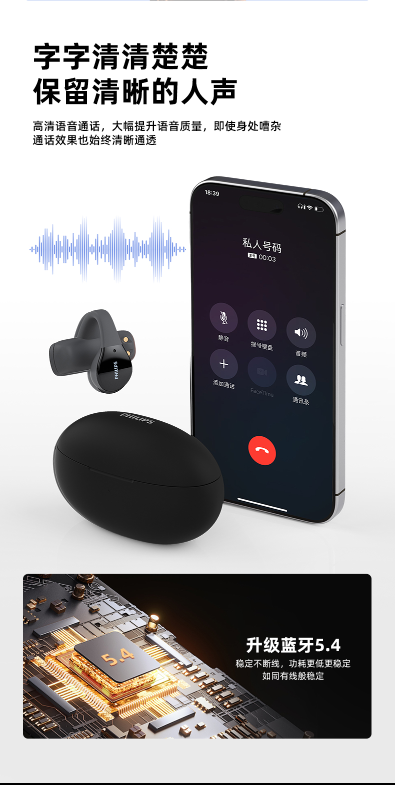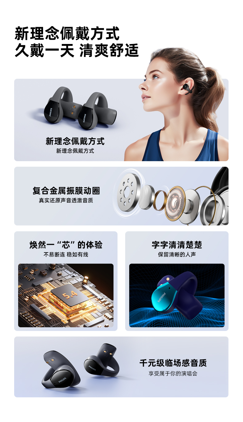 飞利浦骨传导概念蓝牙耳机TAT2719
