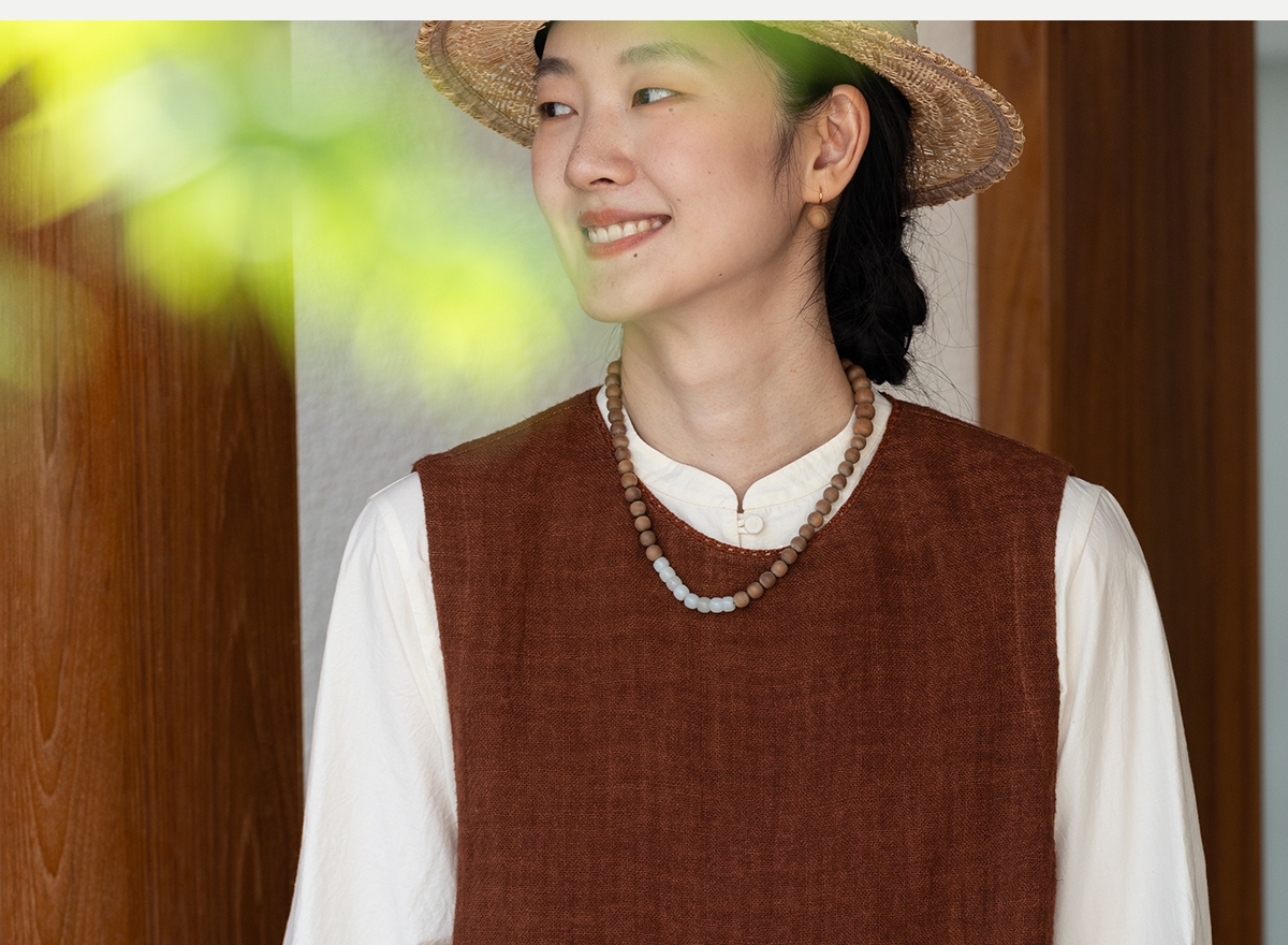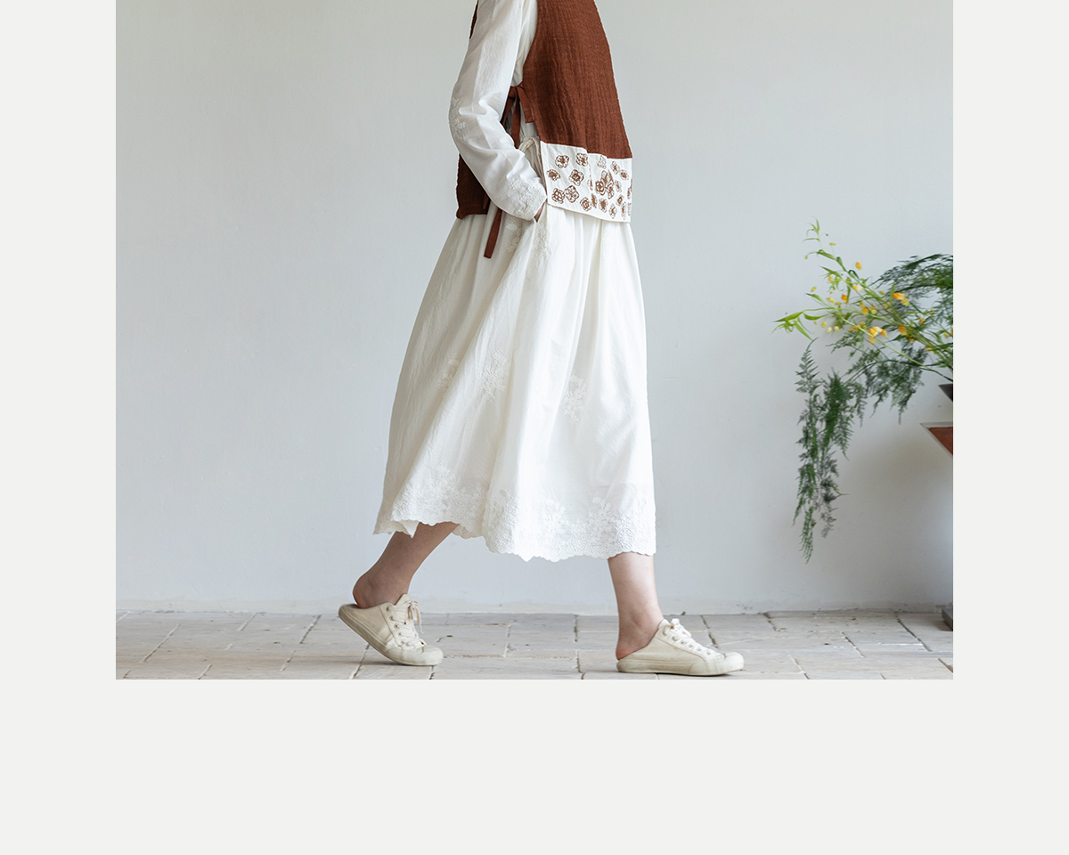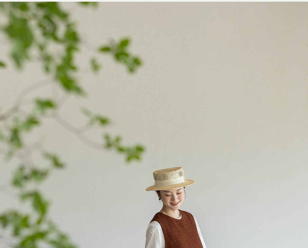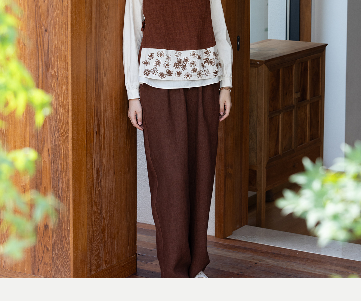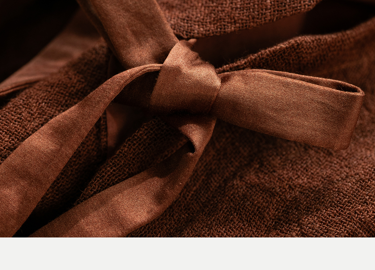 牧衣游原创 炒色机绣亚麻马夹新品设计感古朴撞色系带上衣 知意