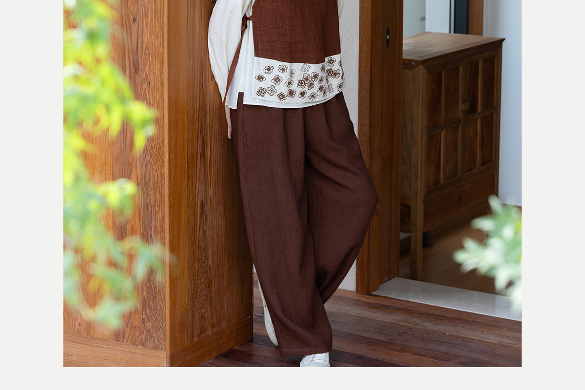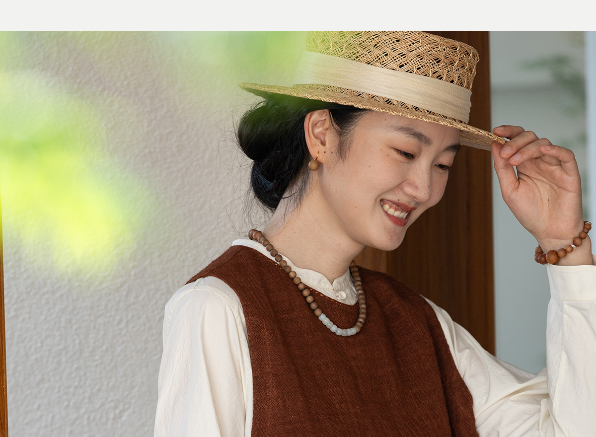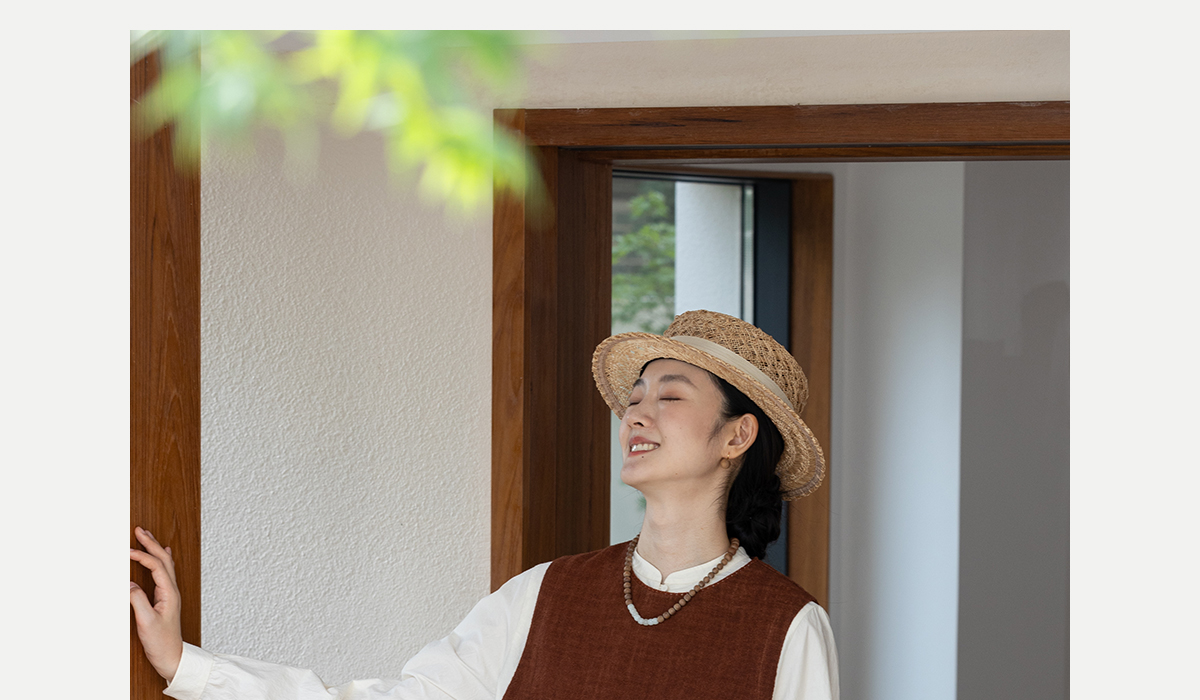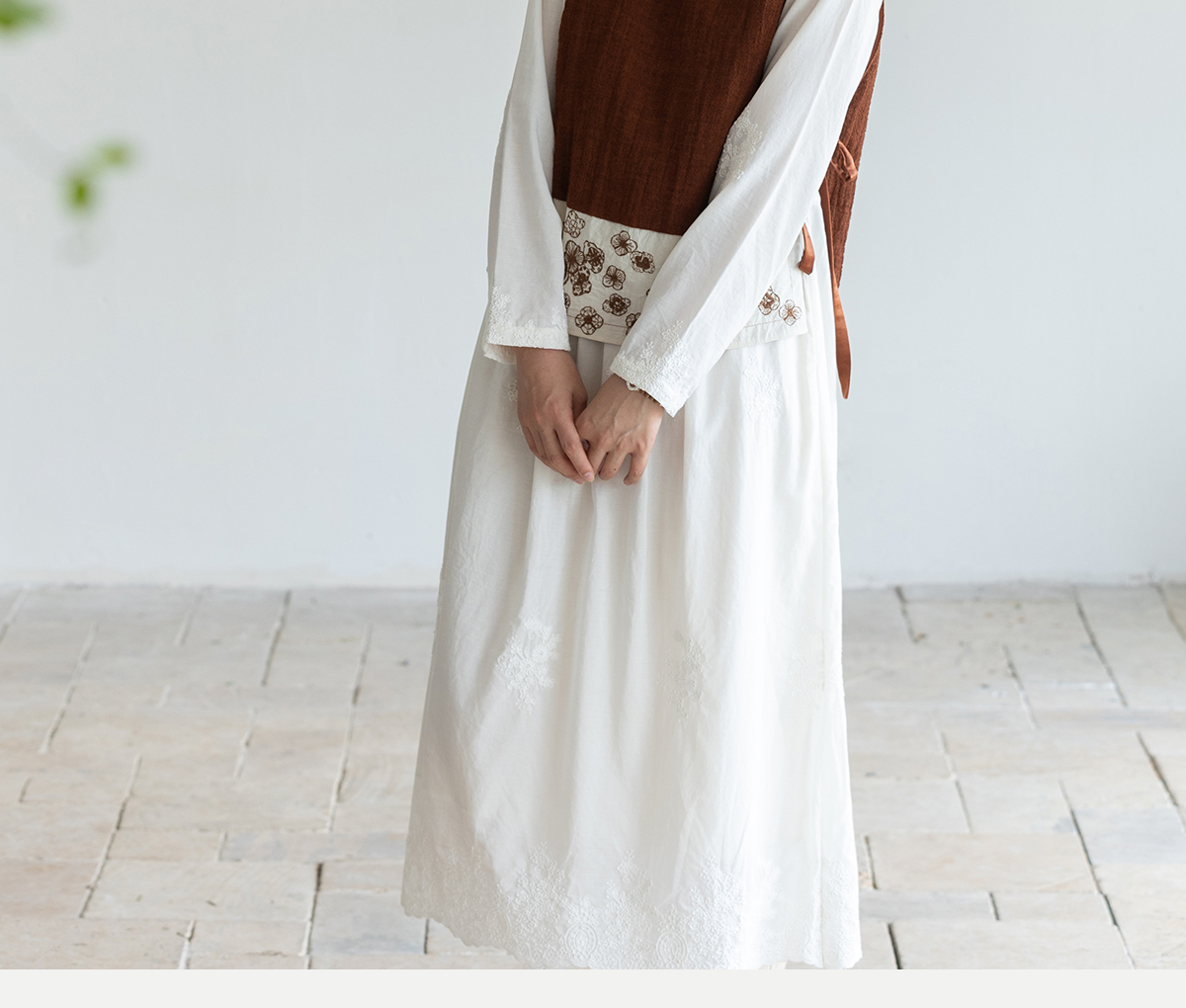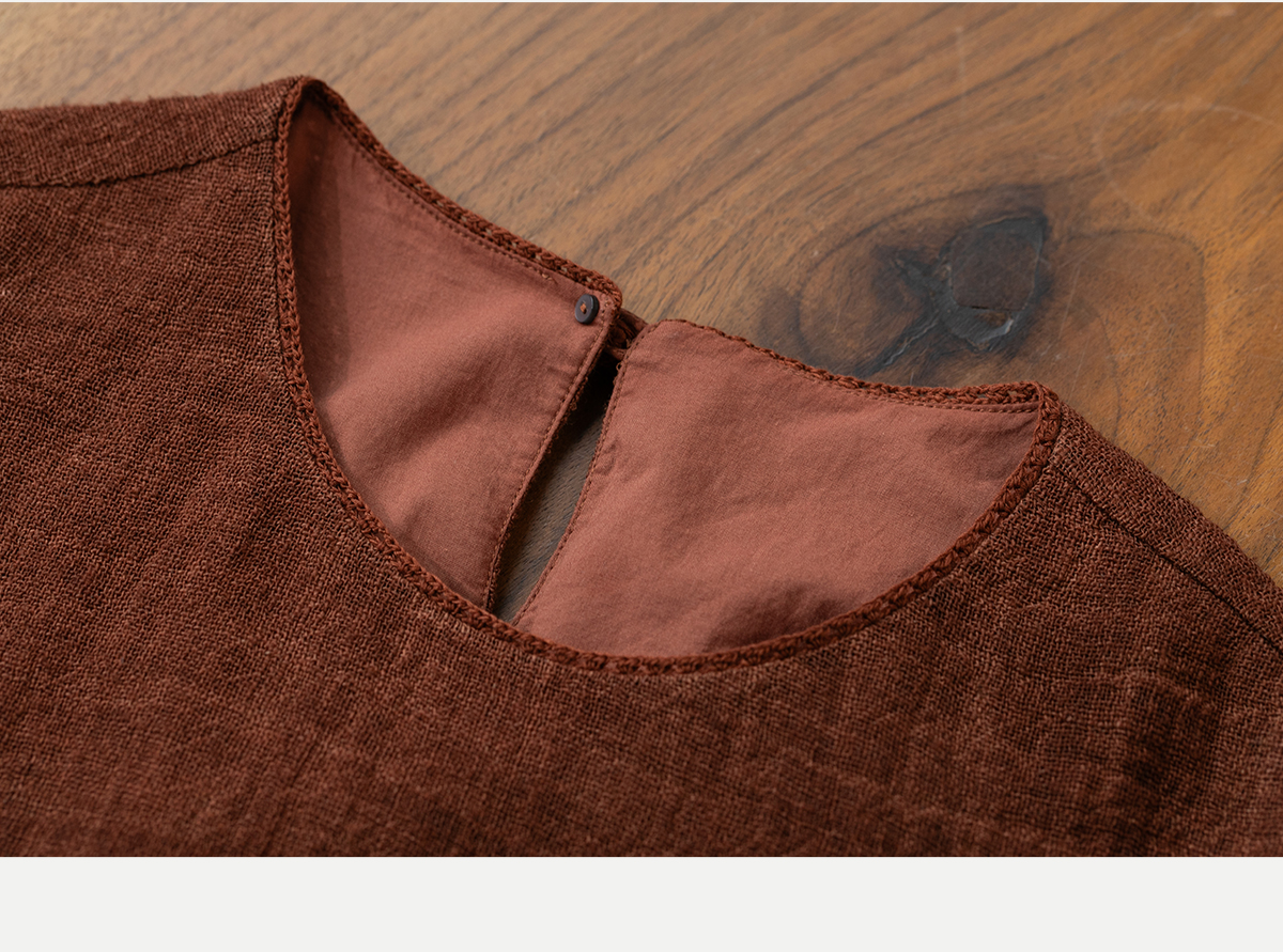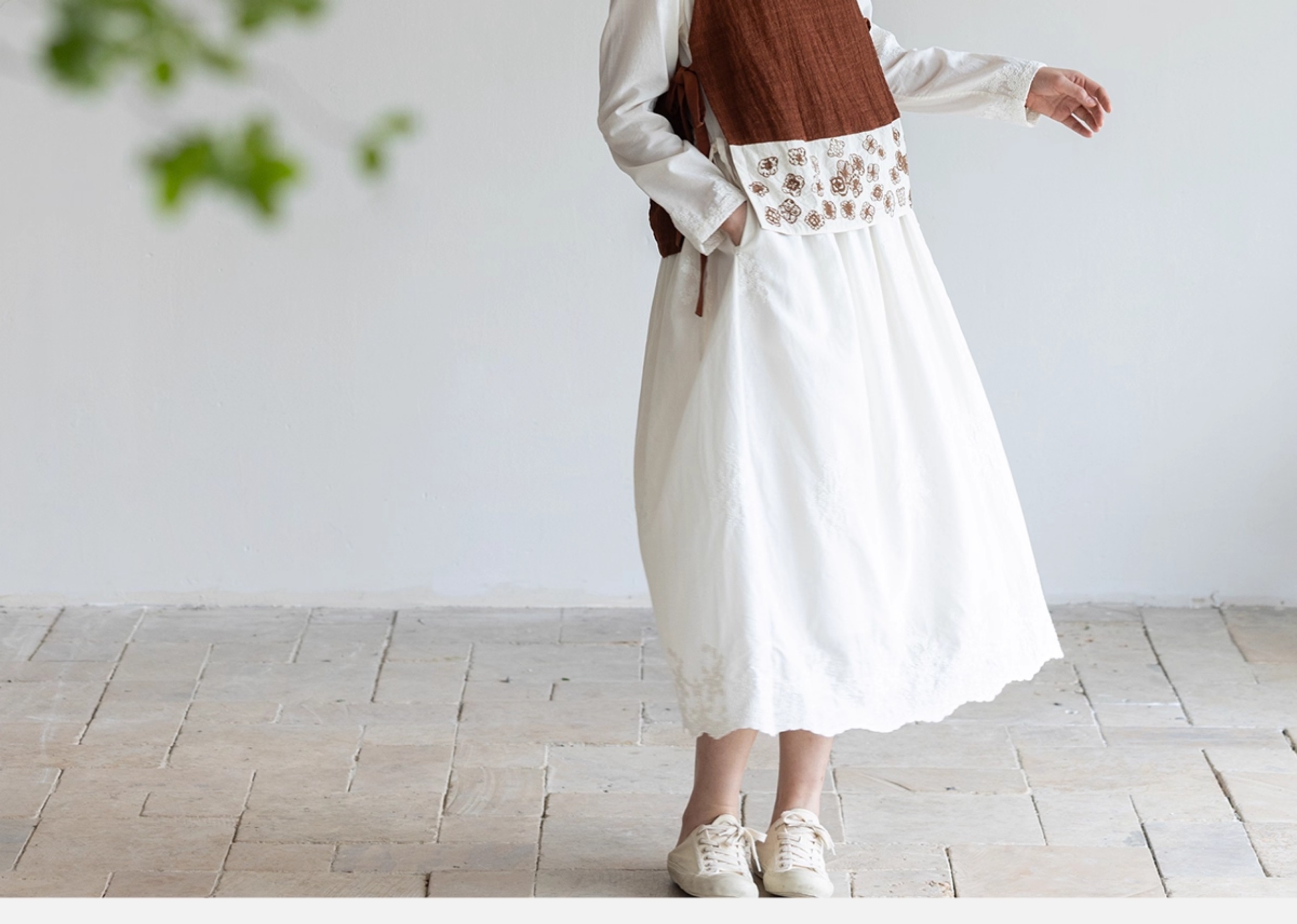 牧衣游原创 炒色机绣亚麻马夹新品设计感古朴撞色系带上衣 知意
