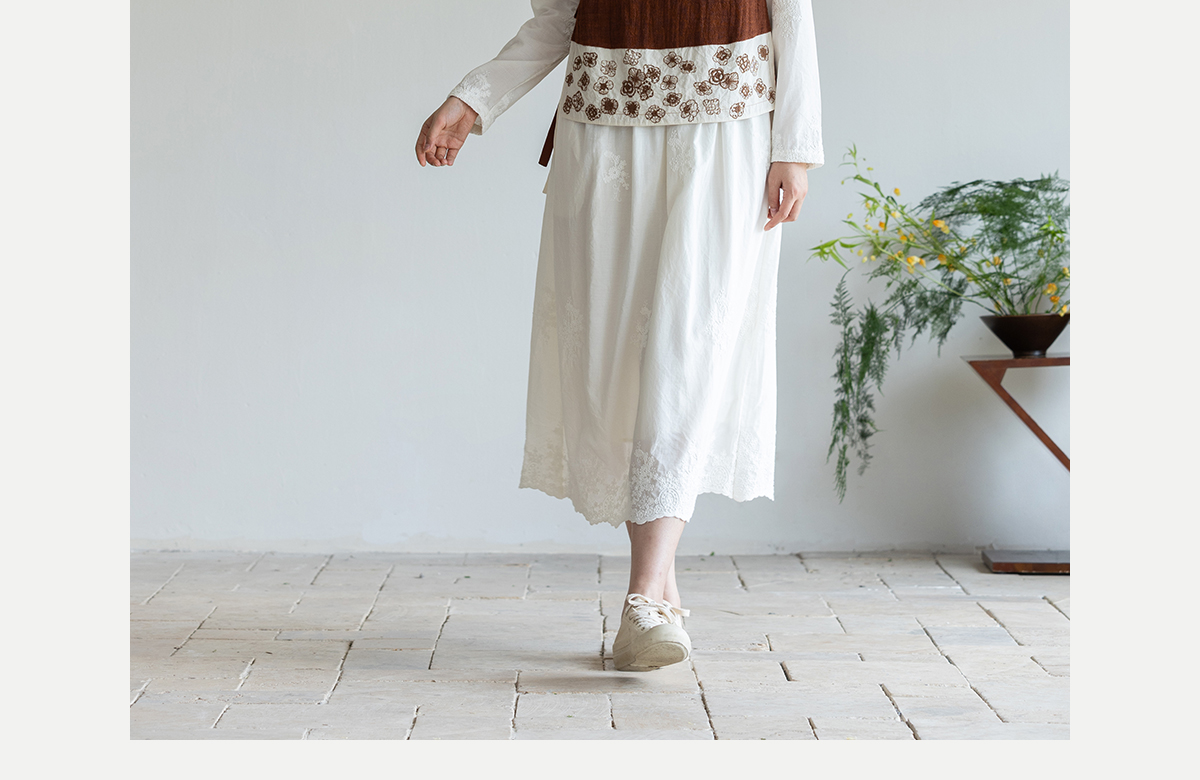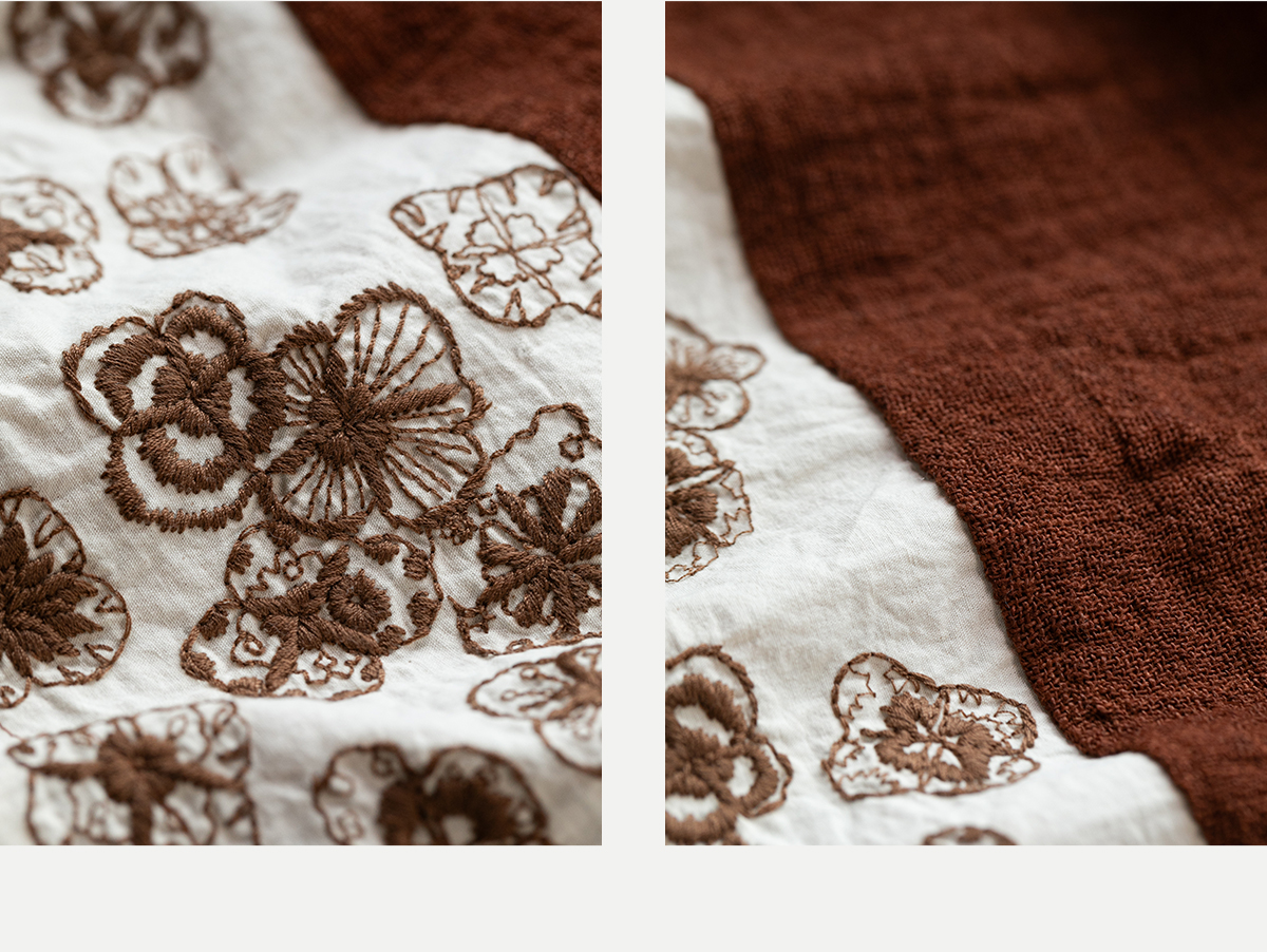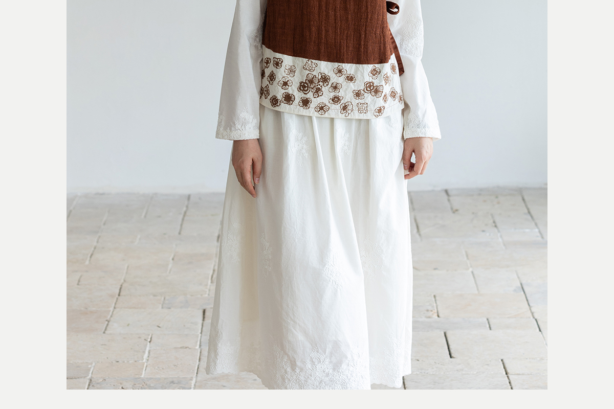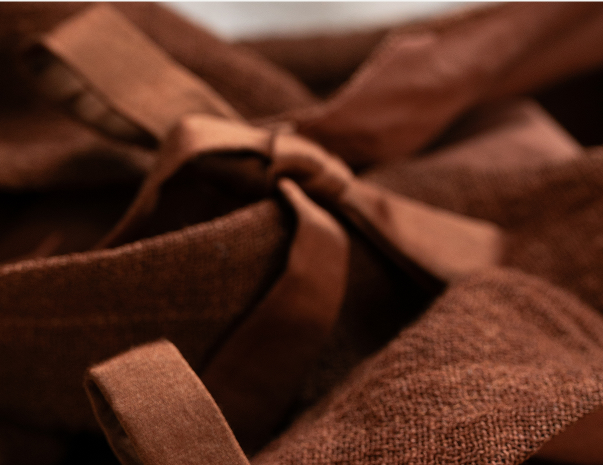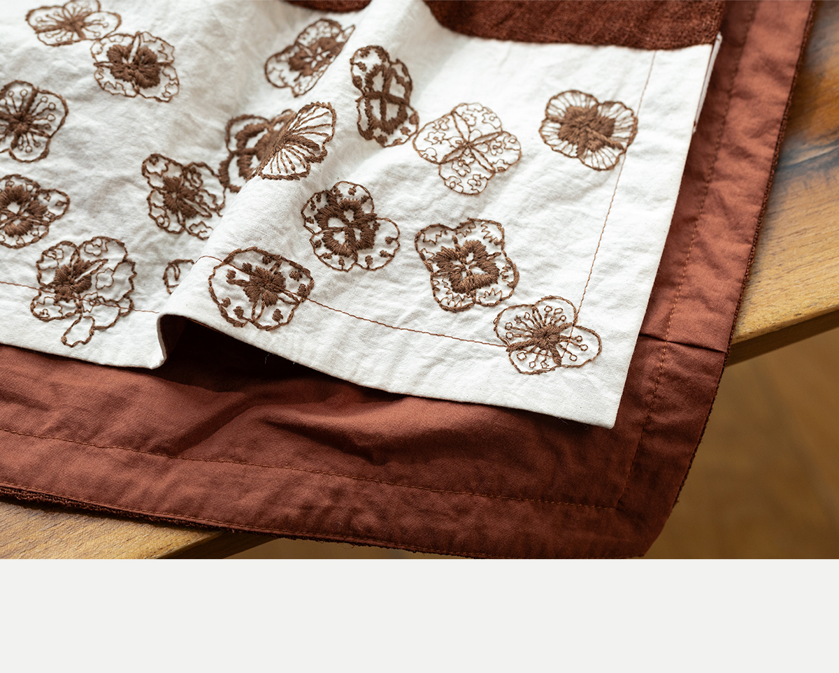 牧衣游原创 炒色机绣亚麻马夹新品设计感古朴撞色系带上衣 知意