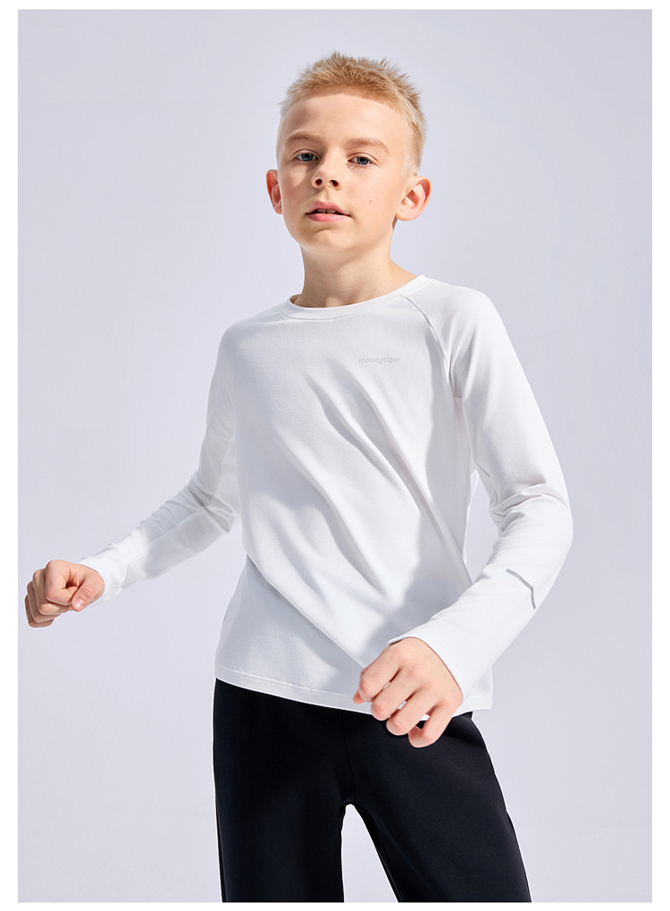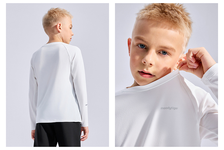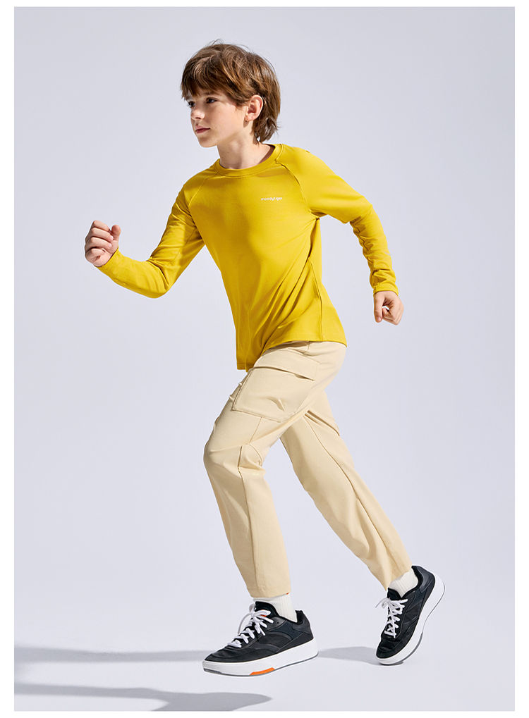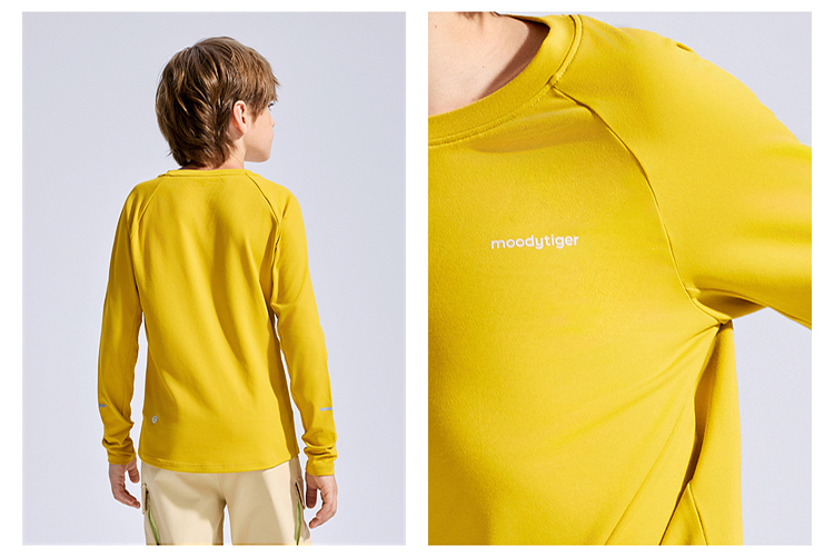 moodytiger运动风套头T恤男童25年新款长袖舒适透气53110107【大J】