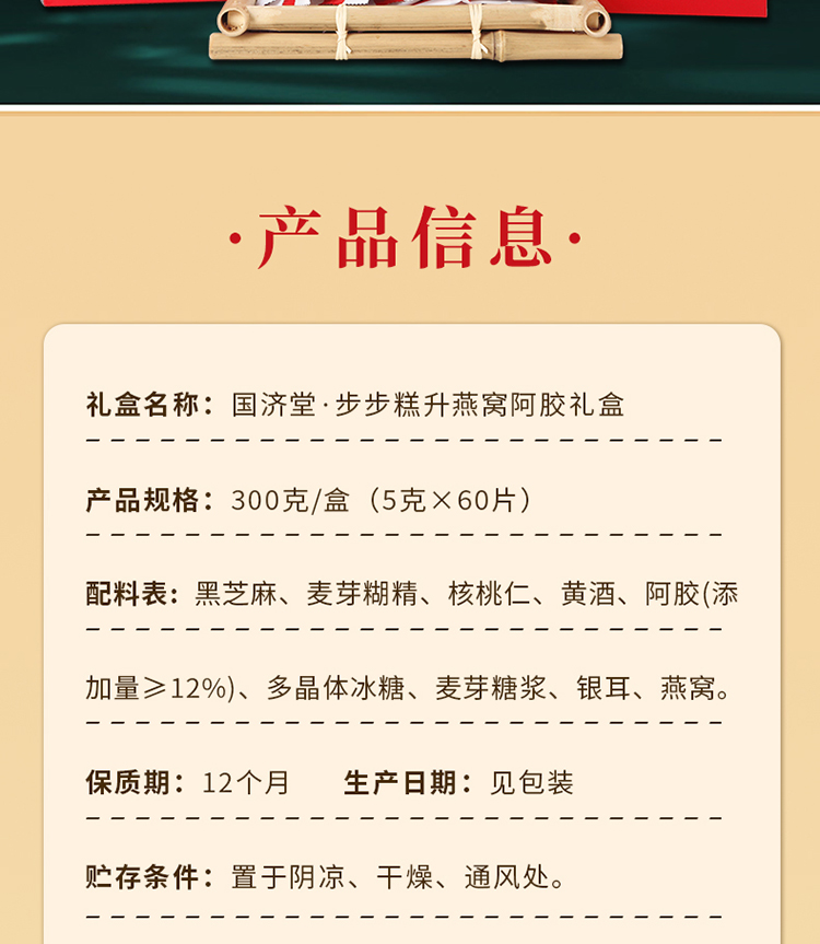 国济堂.步步糕升燕窝阿胶礼盒300g(5g*60)