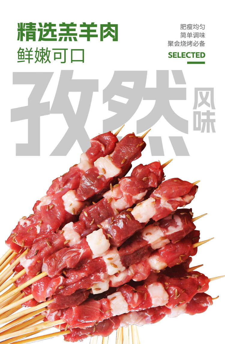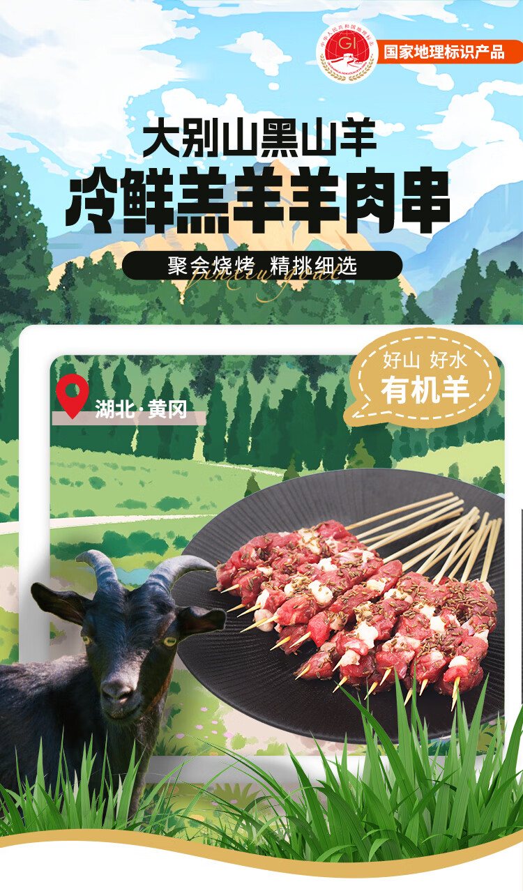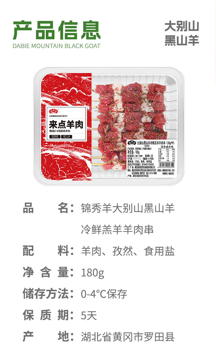冰鲜大别山黑山羊孜然羊肉串 180g 调味羊肉串 烧烤食材