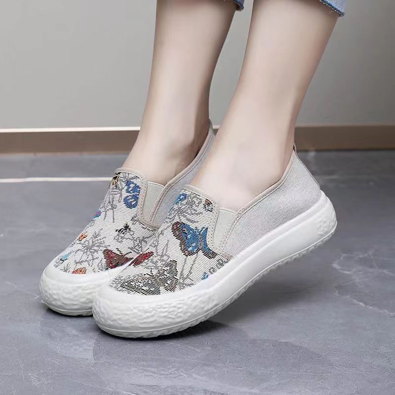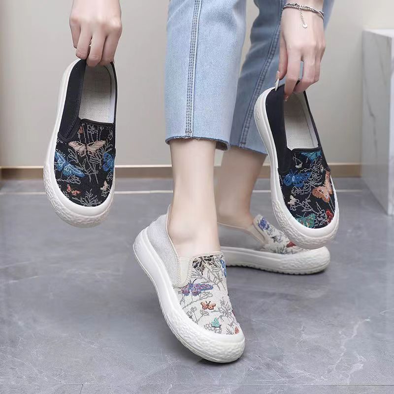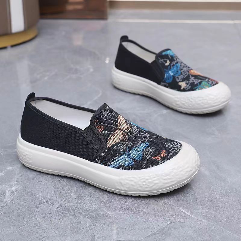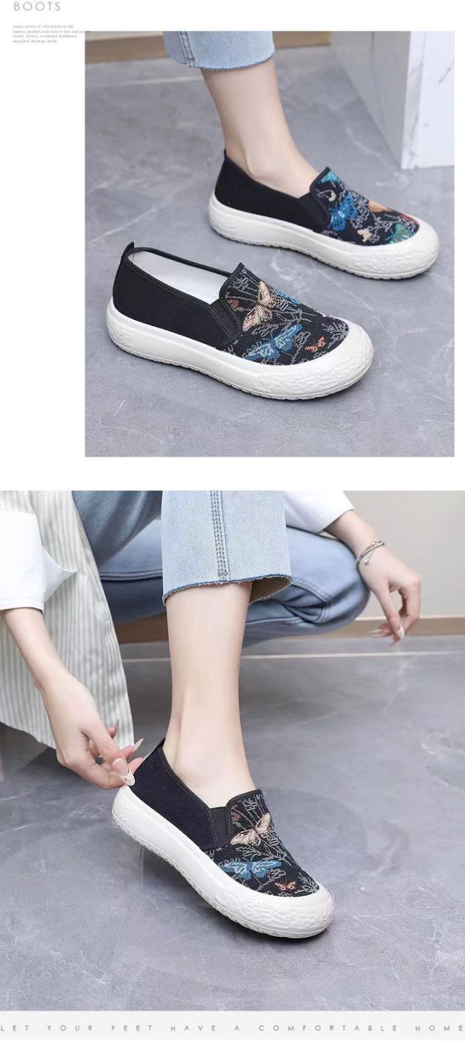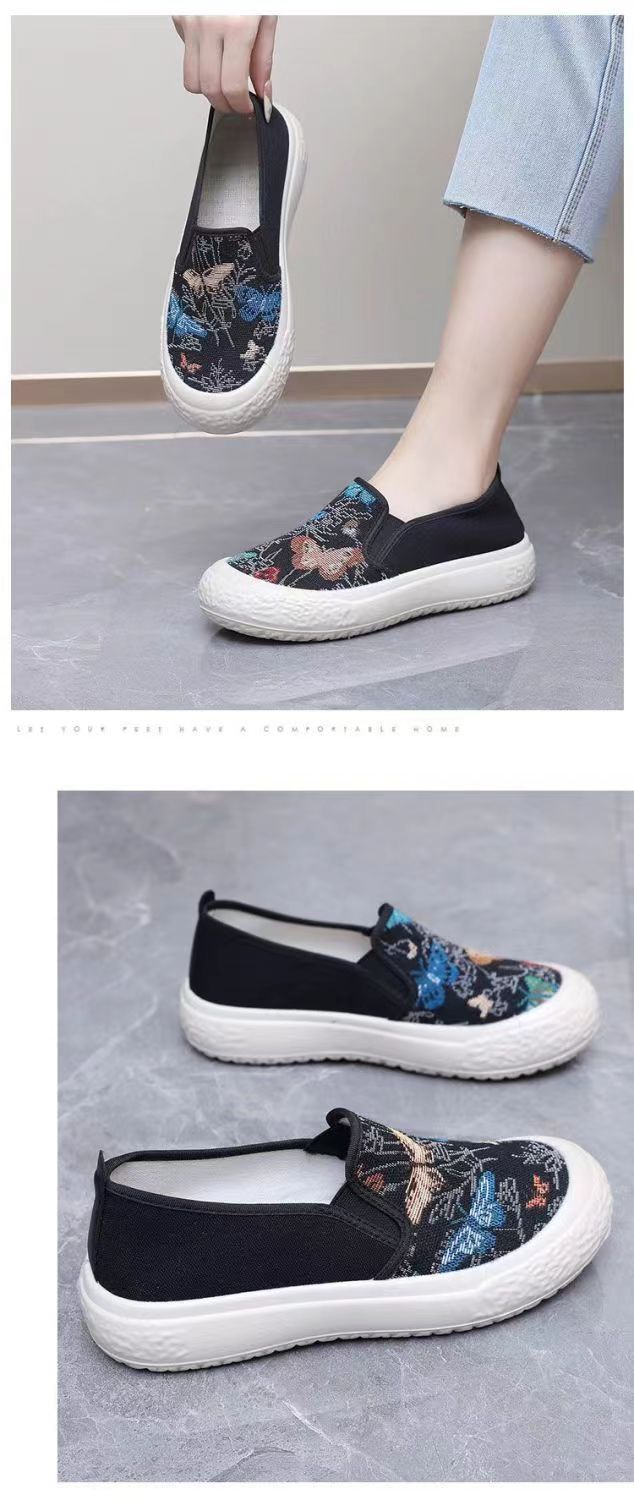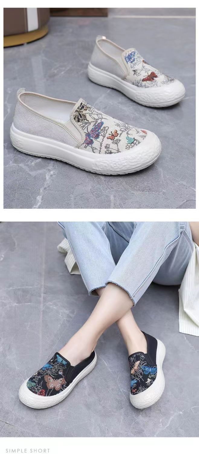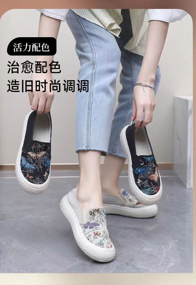 「买1送1!39.9到手两双」2024春夏季新款女鞋 圆头一脚蹬帆布鞋女软底学生懒人鞋单鞋渔夫鞋
