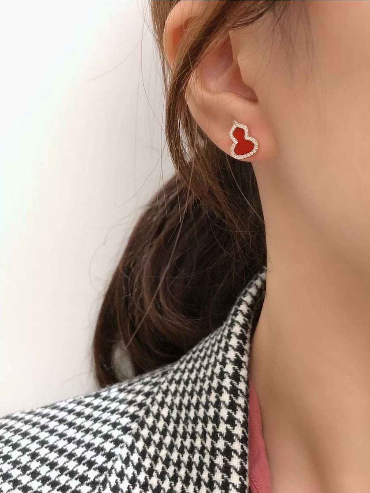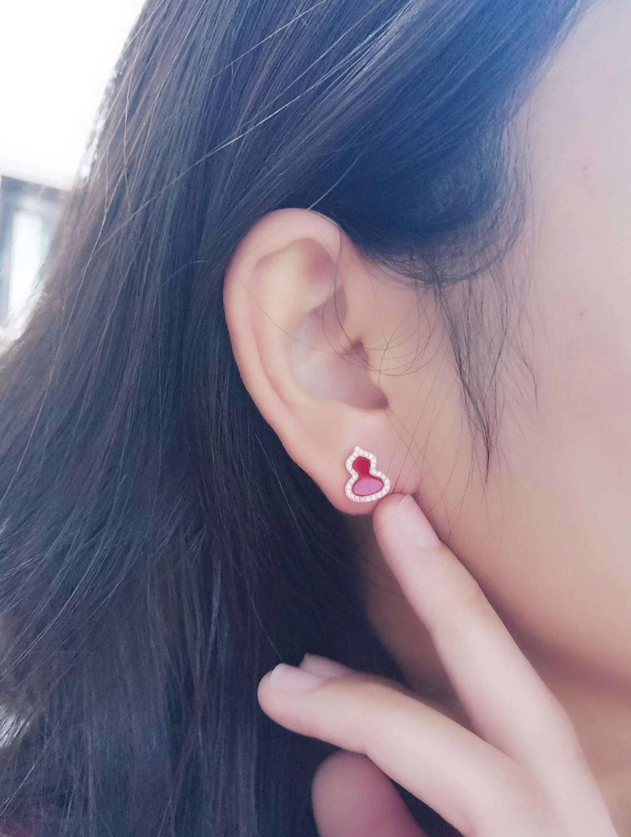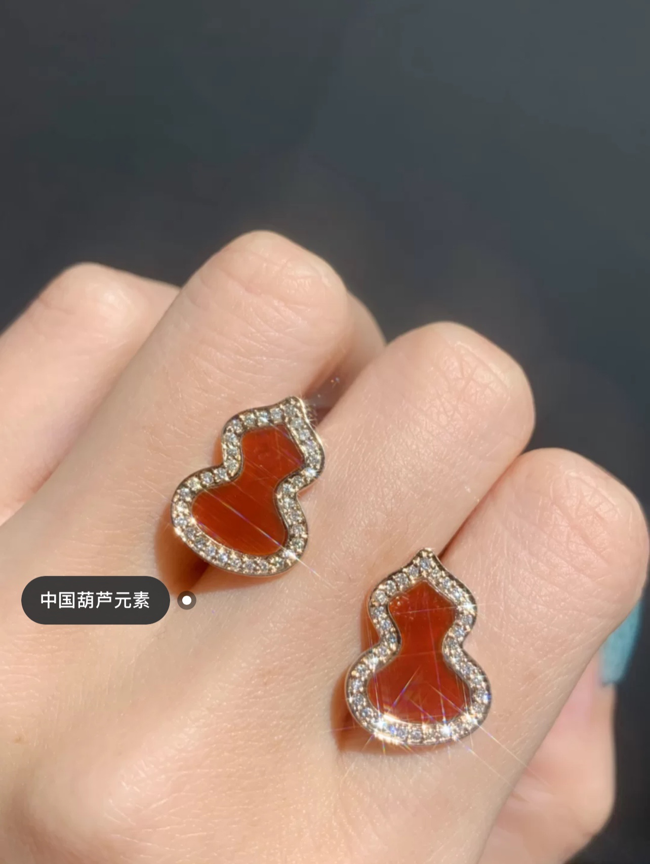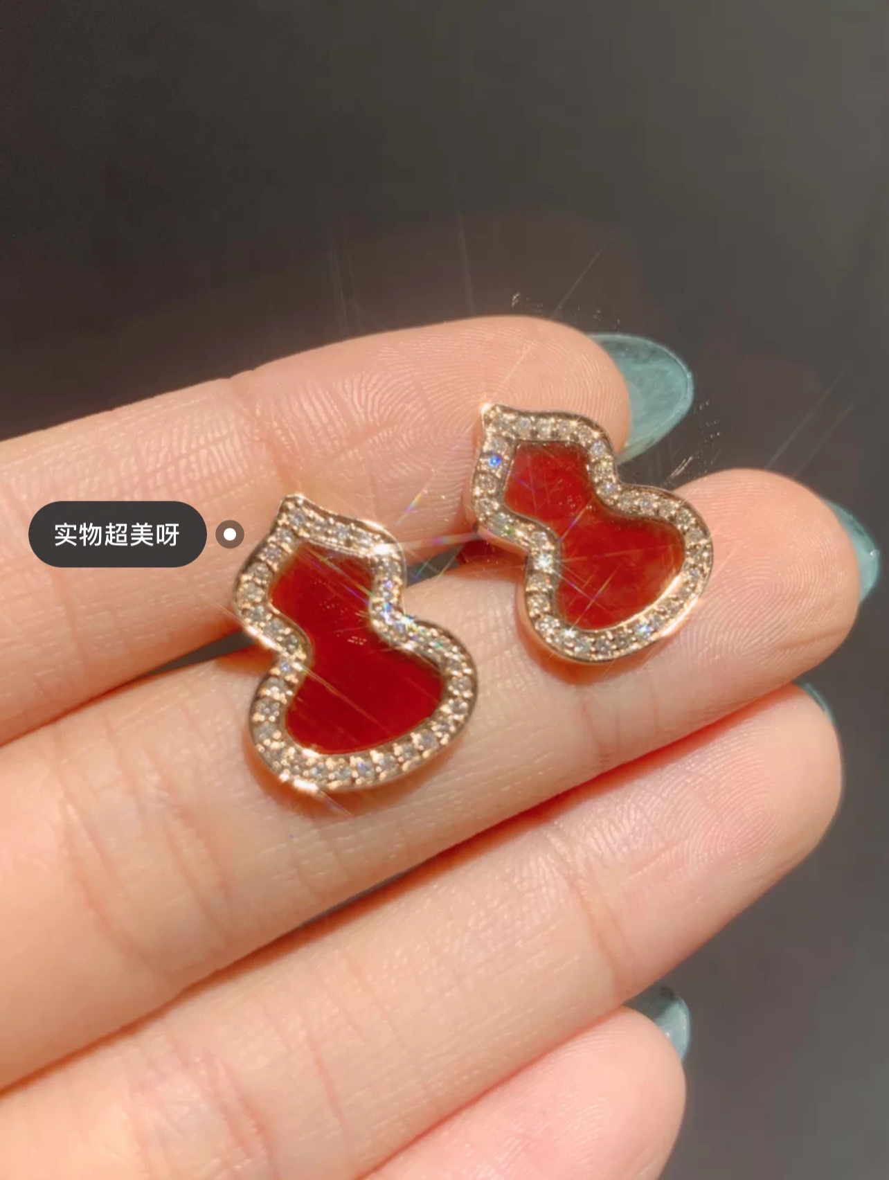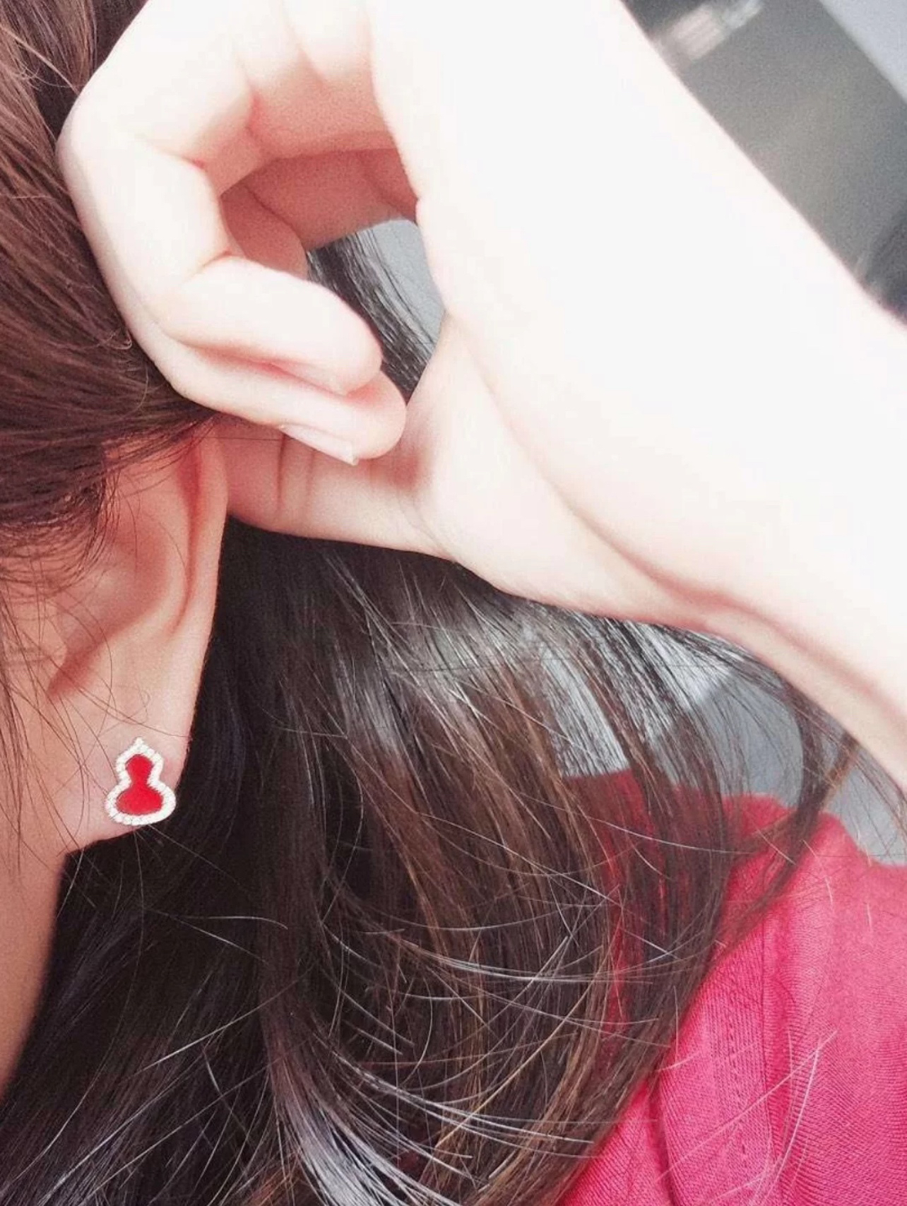 Qeelin红葫芦耳钉(一对),乱真精工,高品质,实拍,配全套专柜包装