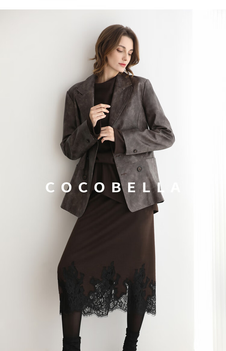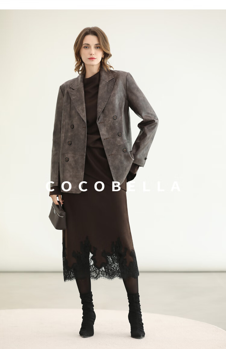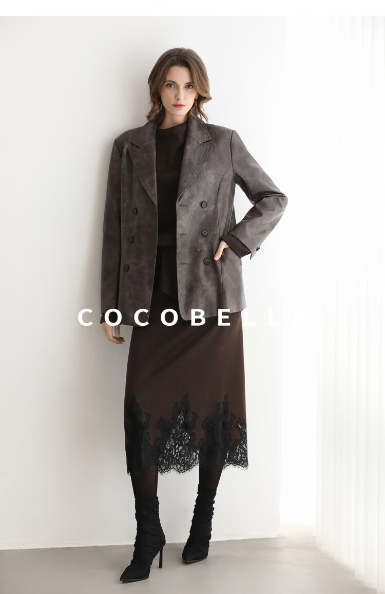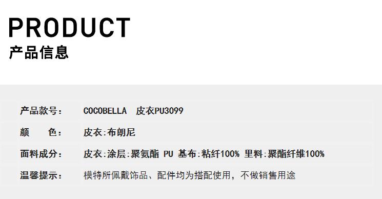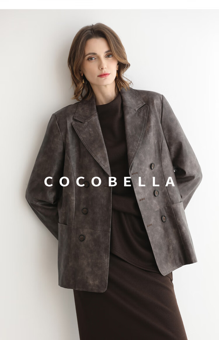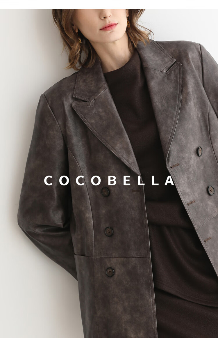 COCOBELLA复古双排扣PU西装手工擦色时尚环保皮衣夹克外套PU3099