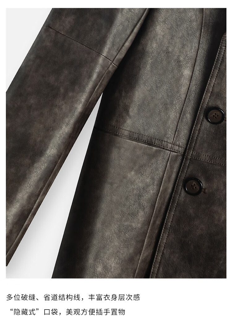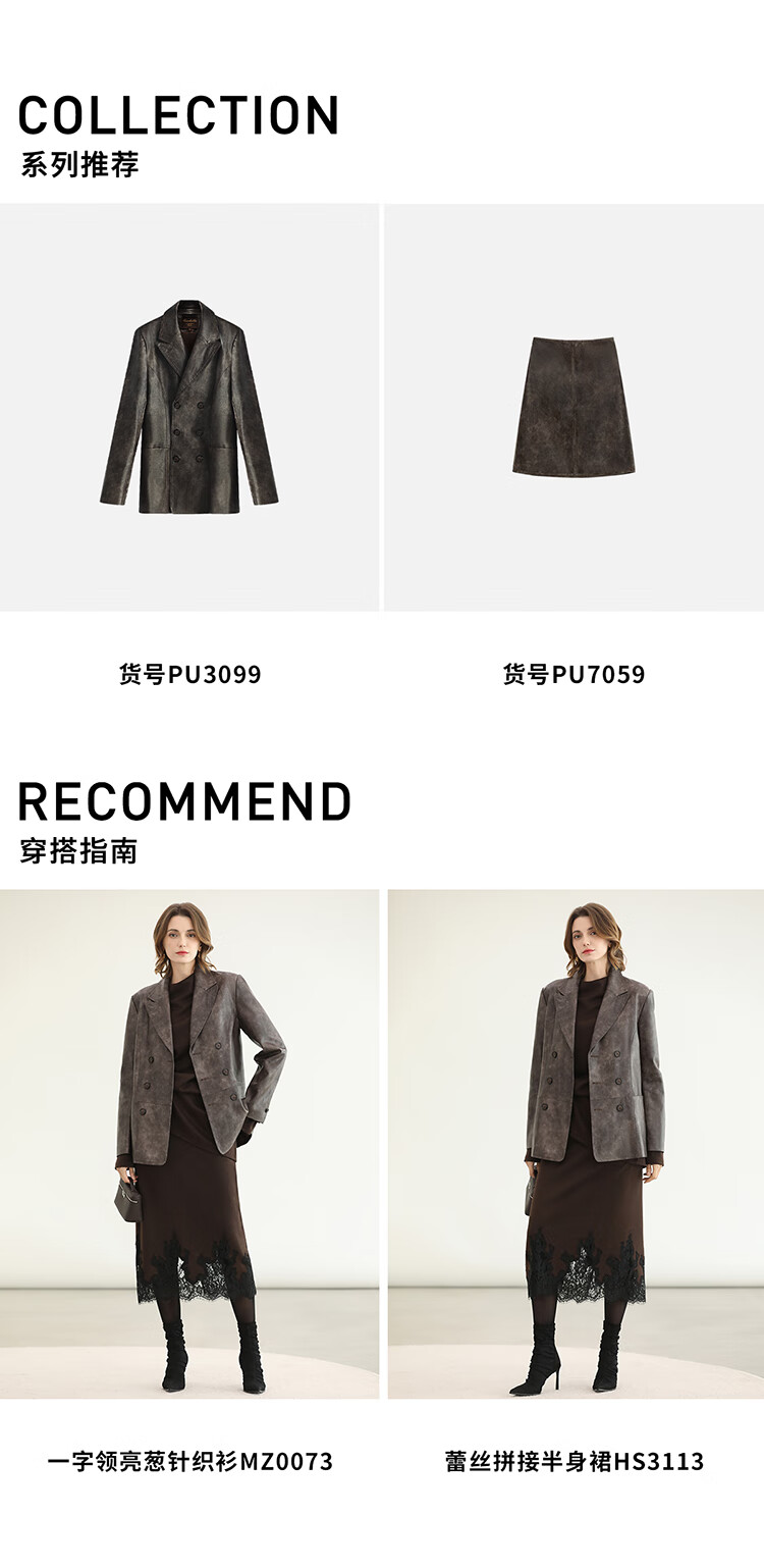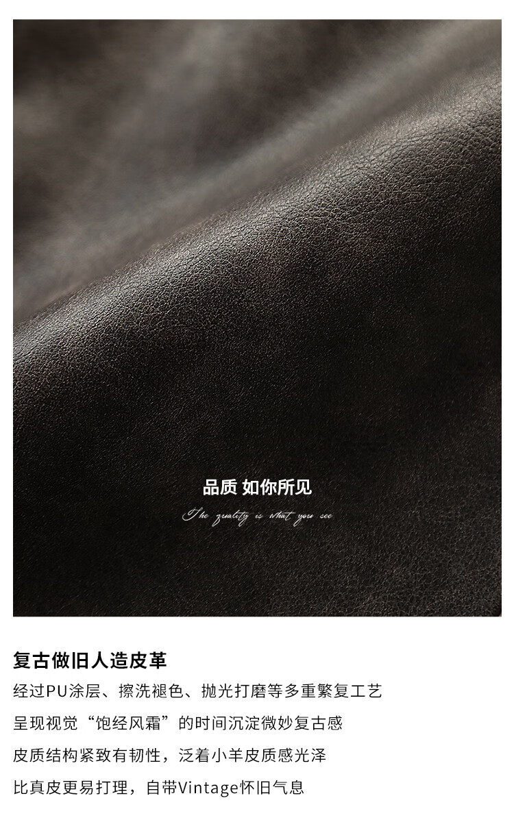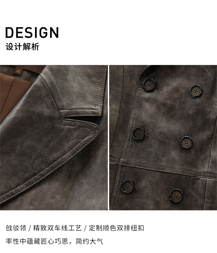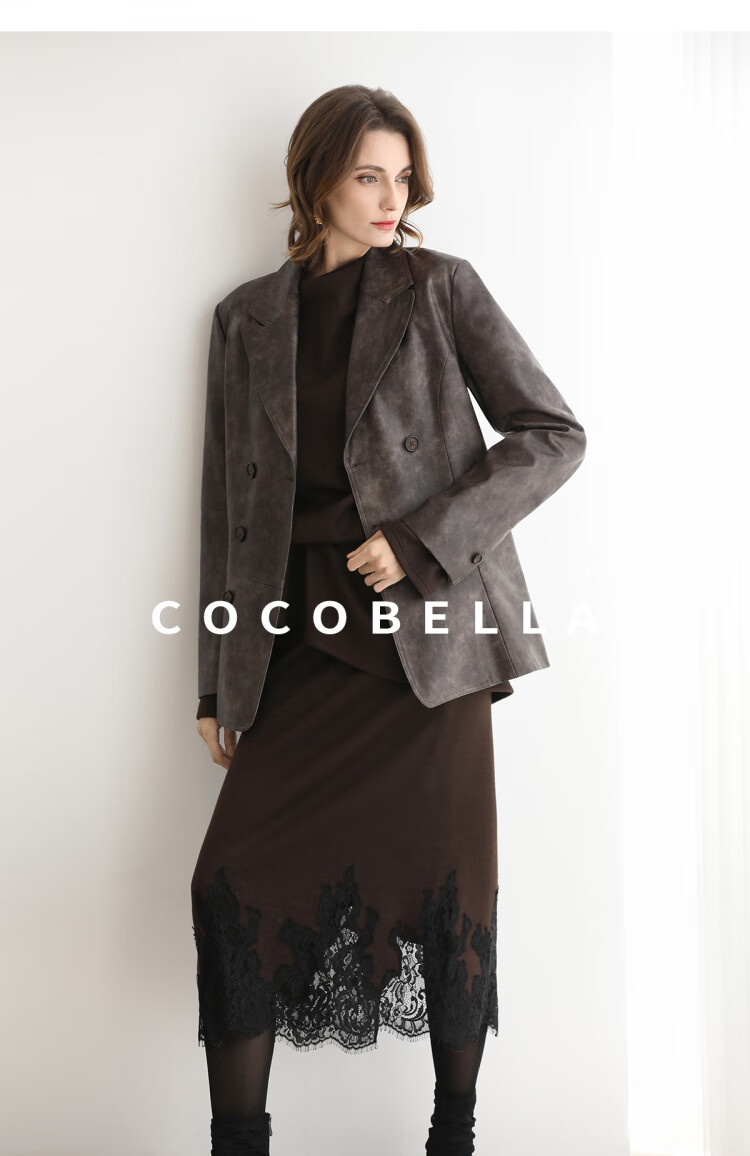 COCOBELLA复古双排扣PU西装手工擦色时尚环保皮衣夹克外套PU3099