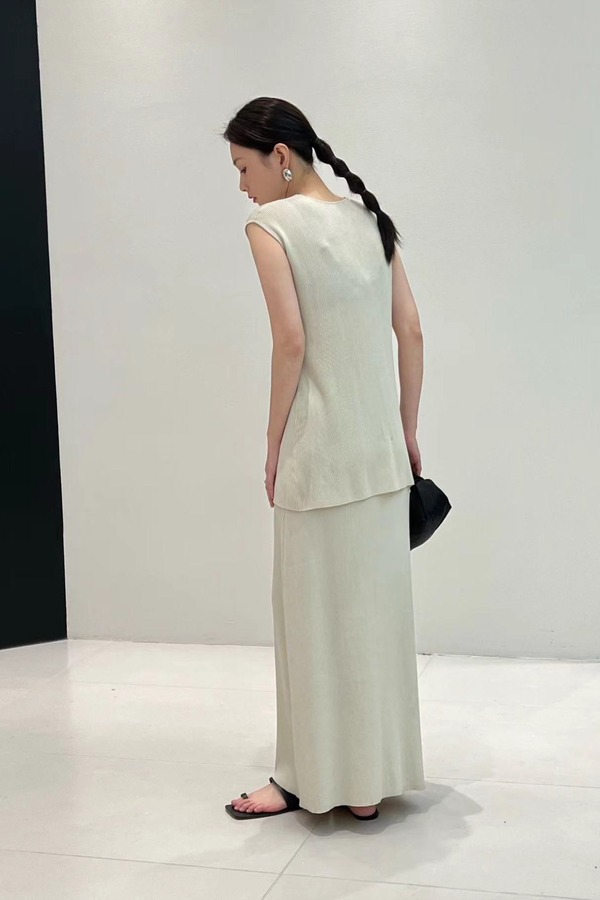Le Malene 高级感极简风无袖马甲半裙针织套装 20215