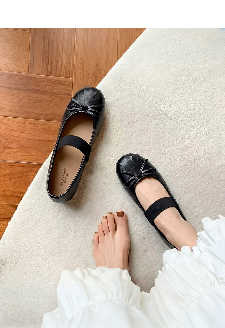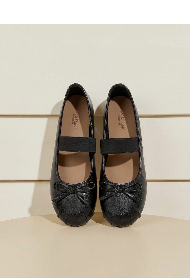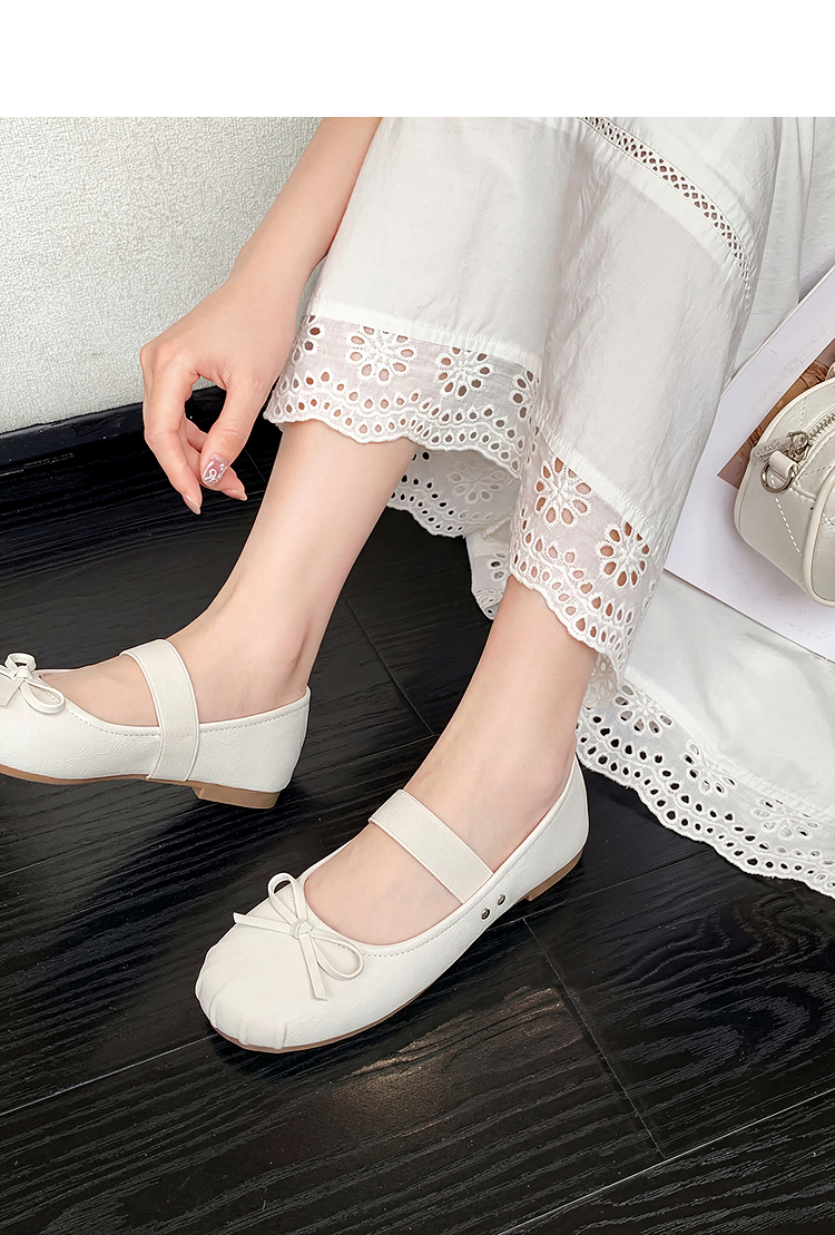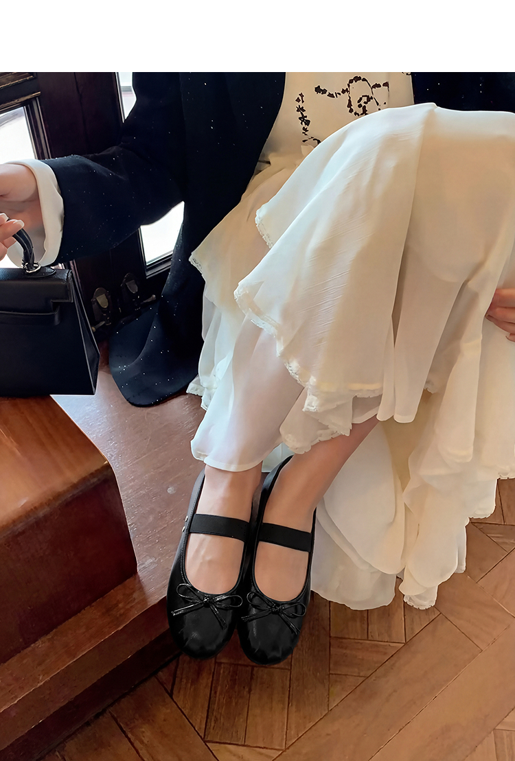 西遇芭蕾风玛丽珍鞋女2026新款春季法式一字扣平底蝴蝶结百搭单鞋V0566358