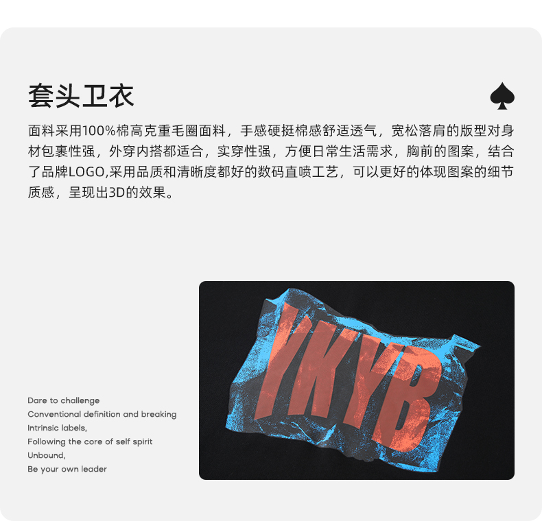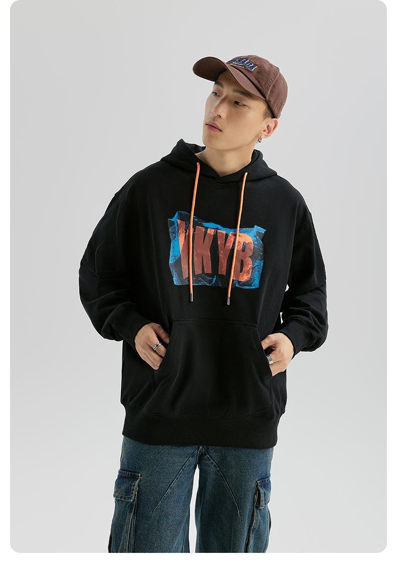 YKYB秋季新款上衣潮牌美式街头宽松休闲外套个性纯棉印花连帽卫衣