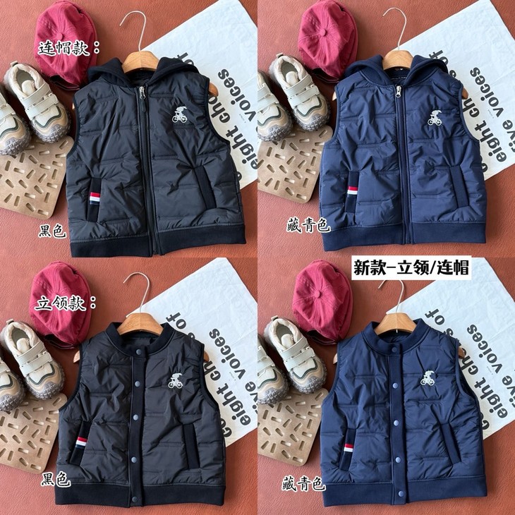 ✅儿童刺绣夹绒马甲 扣领/拉链款休闲外搭,多色 可选叠穿神器