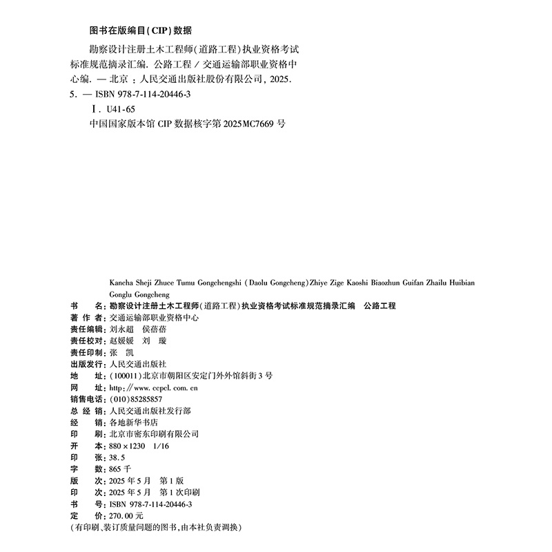 书名:勘察设计注册土木工程师(道路工程)执业资格考试标准规范摘录汇编 公路工程