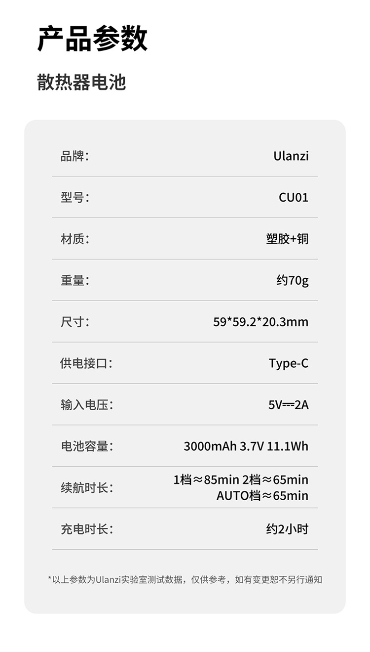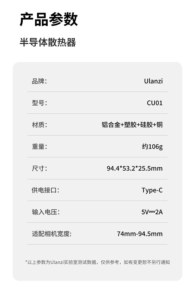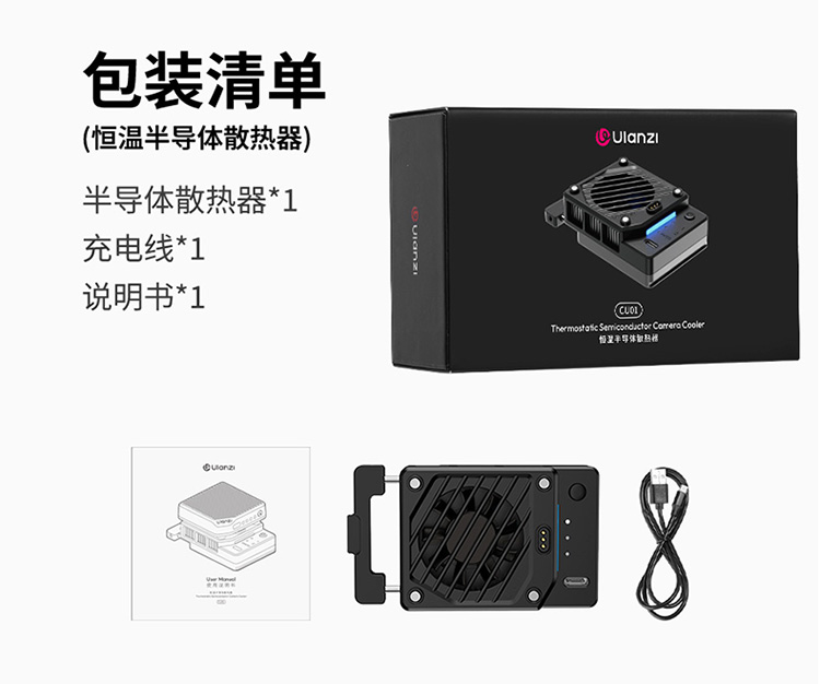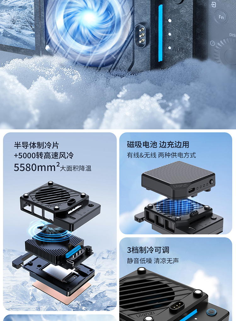 Ulanzi优篮子 CU01恒温半导体相机散热器直播降温风扇卡扣索尼a7m4佳能zve10微单单反视频录制静音制冷神器