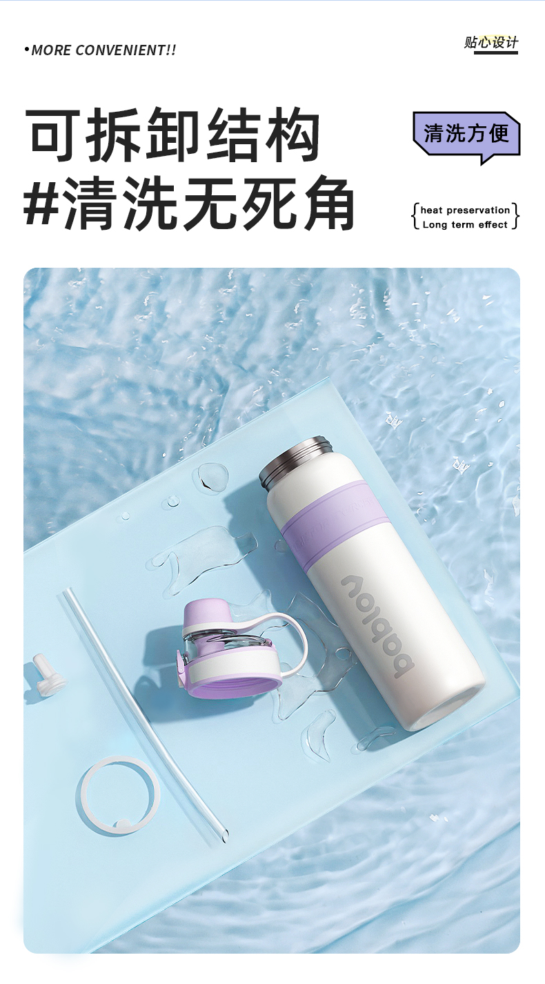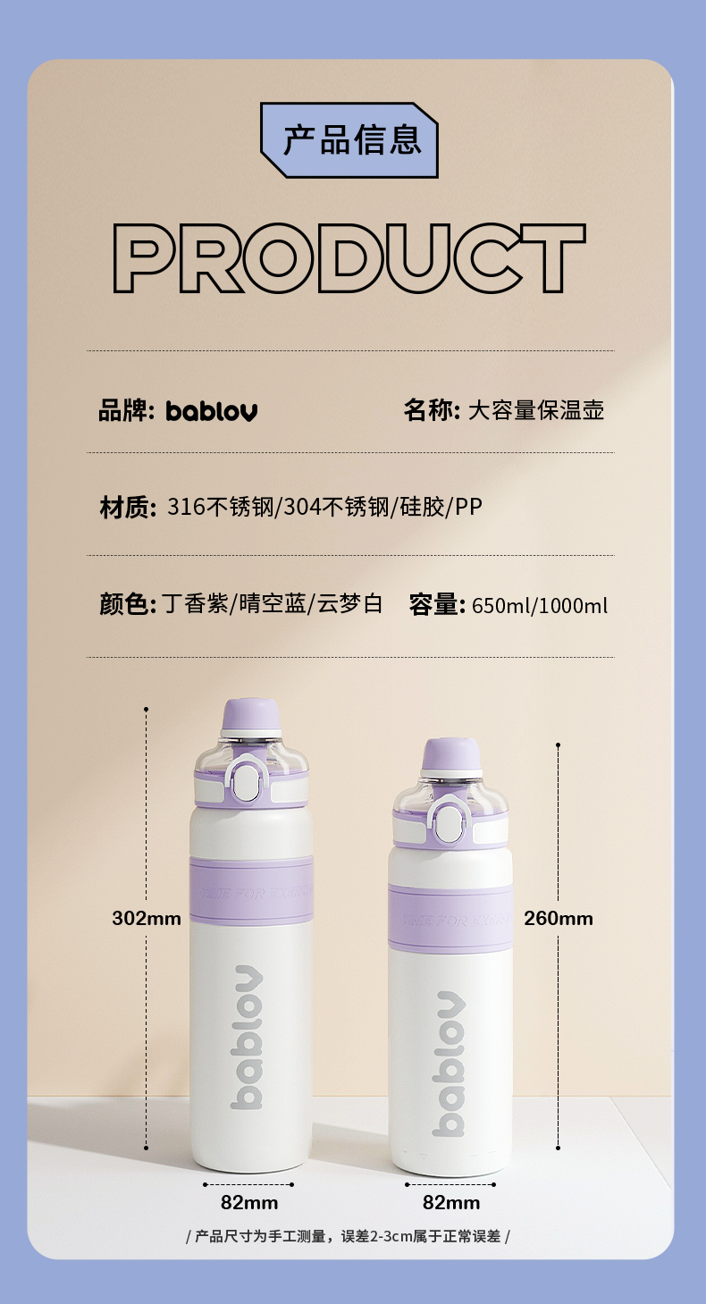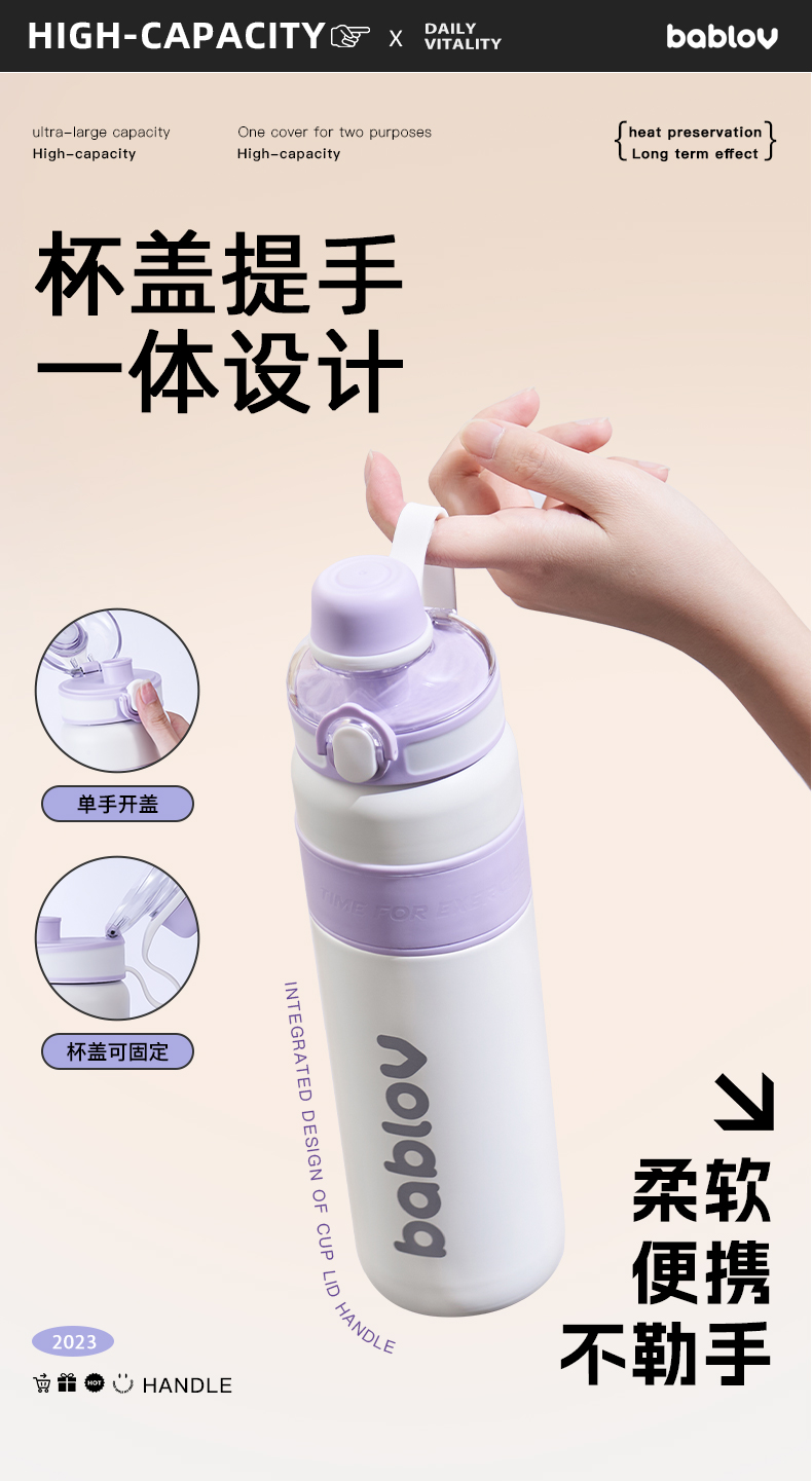bablov大容量保温杯女学生水杯子儿童带吸管316不锈钢水壶高颜值