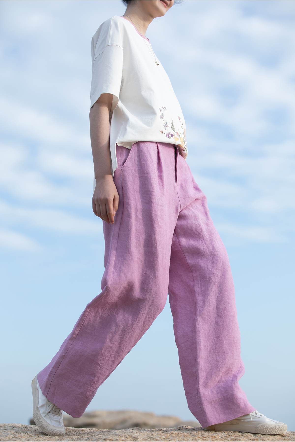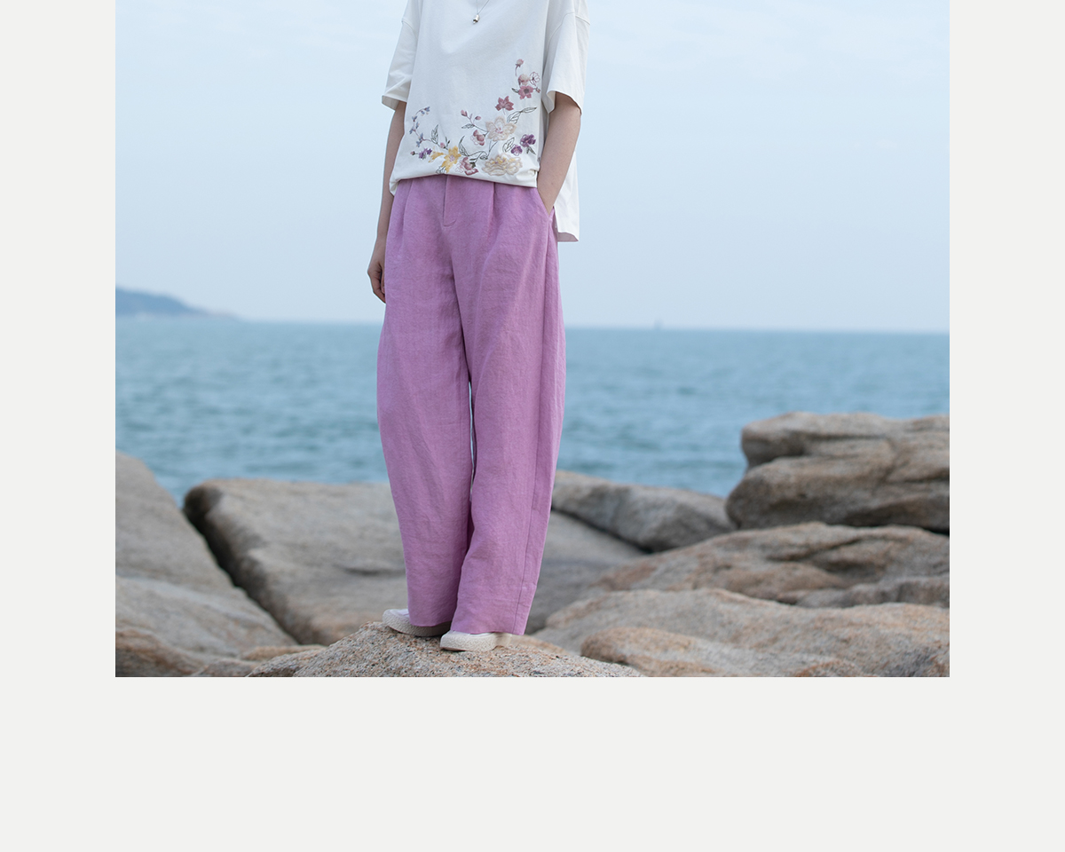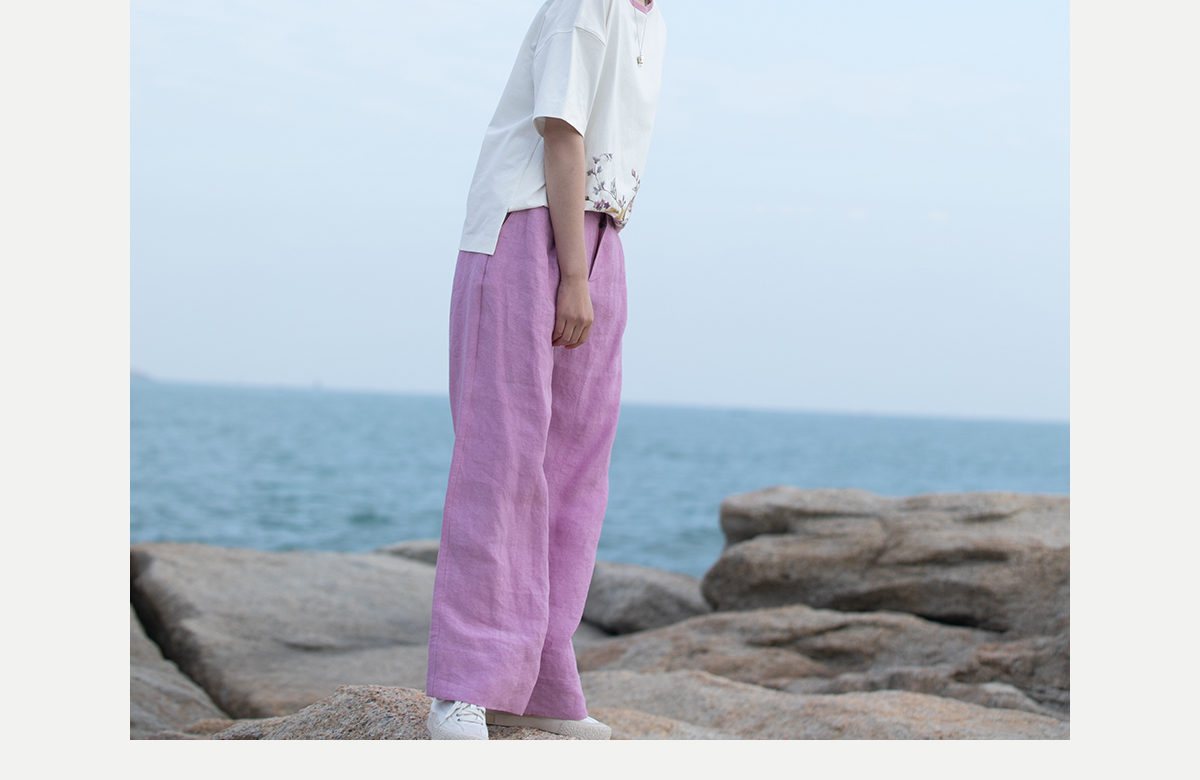 牧衣游原创 炒色汉麻裤子女轻薄清凉柔软宽松显瘦百搭休闲裤 行歌