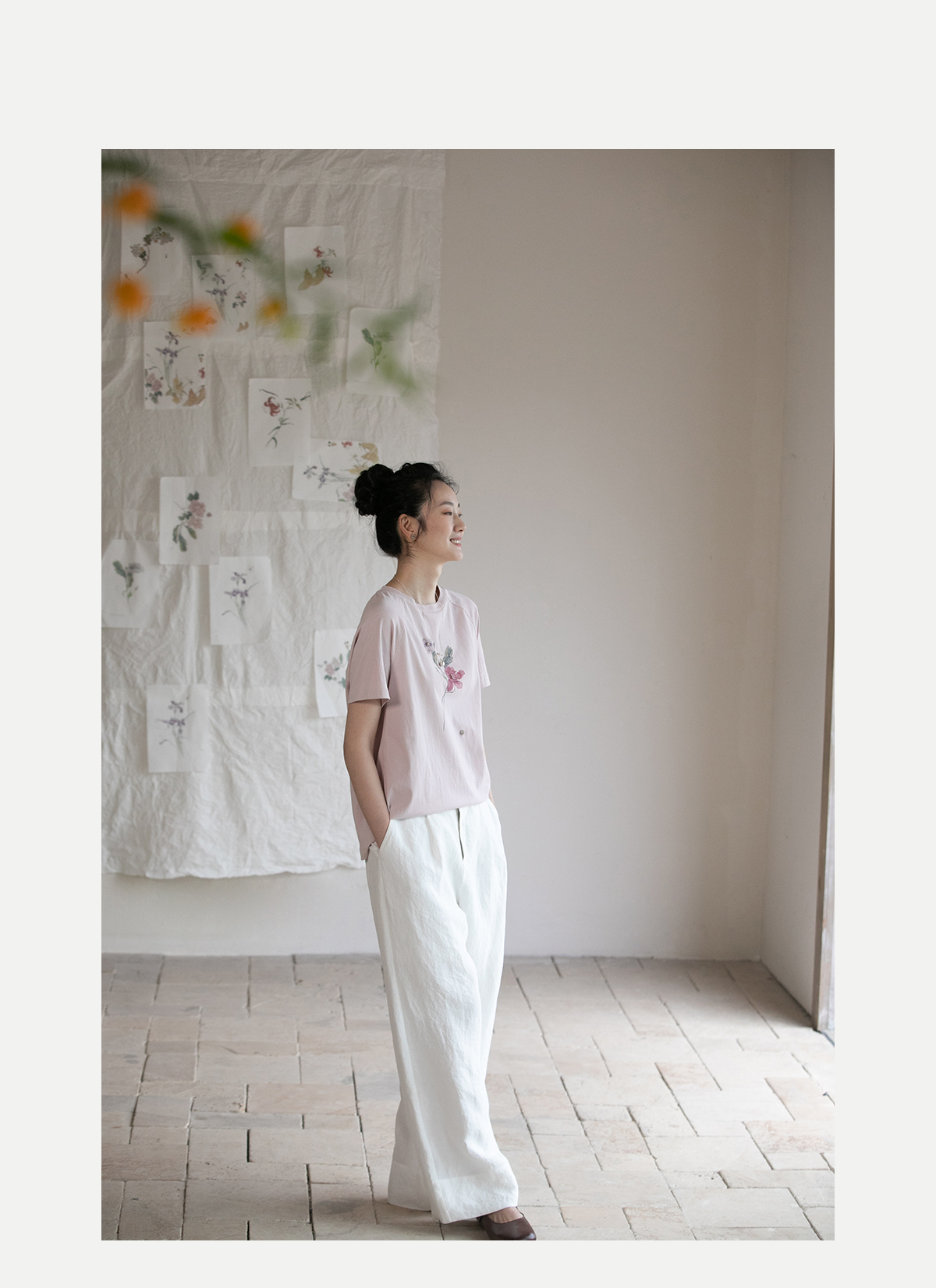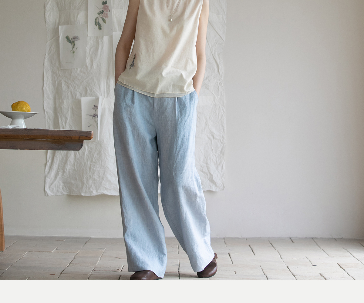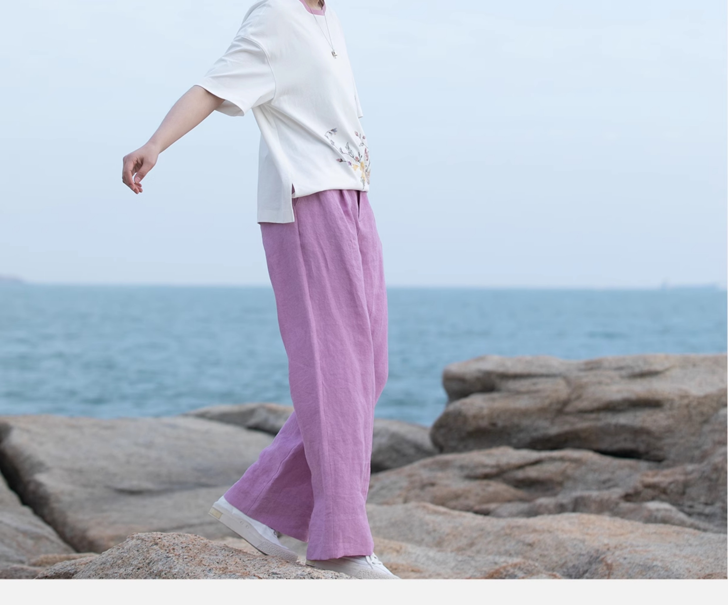 牧衣游原创 炒色汉麻裤子女轻薄清凉柔软宽松显瘦百搭休闲裤 行歌
