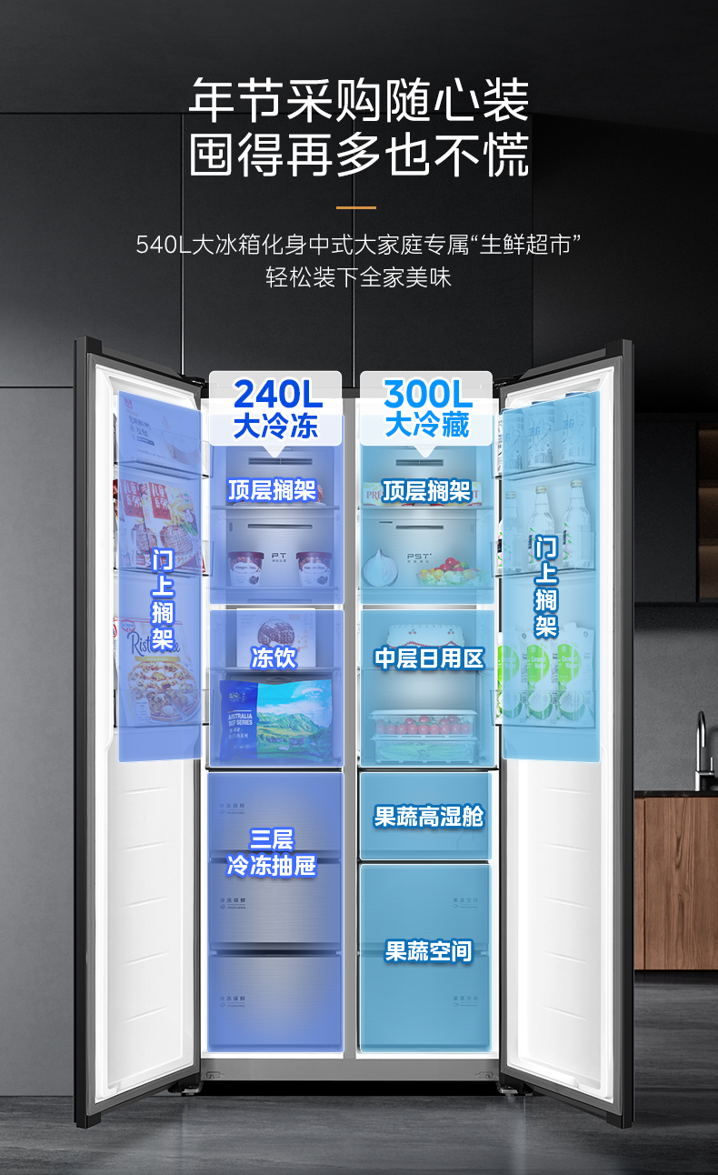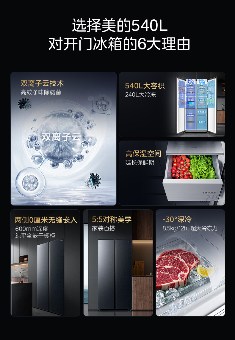 美的 冰箱 BCD-540WUKGPZM(Q) 月光黛