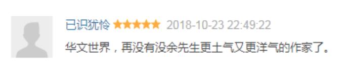 难怪有读者评论:“华文世界,再没有比余先生更土气又更洋气的作家了。”