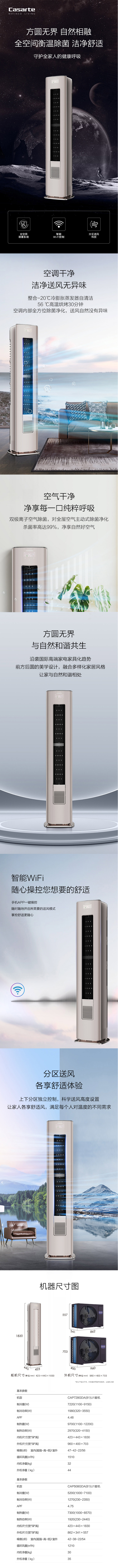 卡萨帝3匹变频一级能耗柜机空调 全空间除菌系统 WIFI智控分区送风 【全空间除菌】CAP728GDA(81)U1