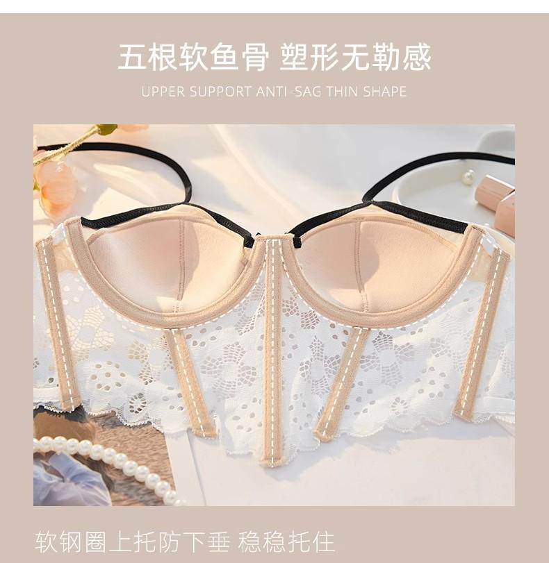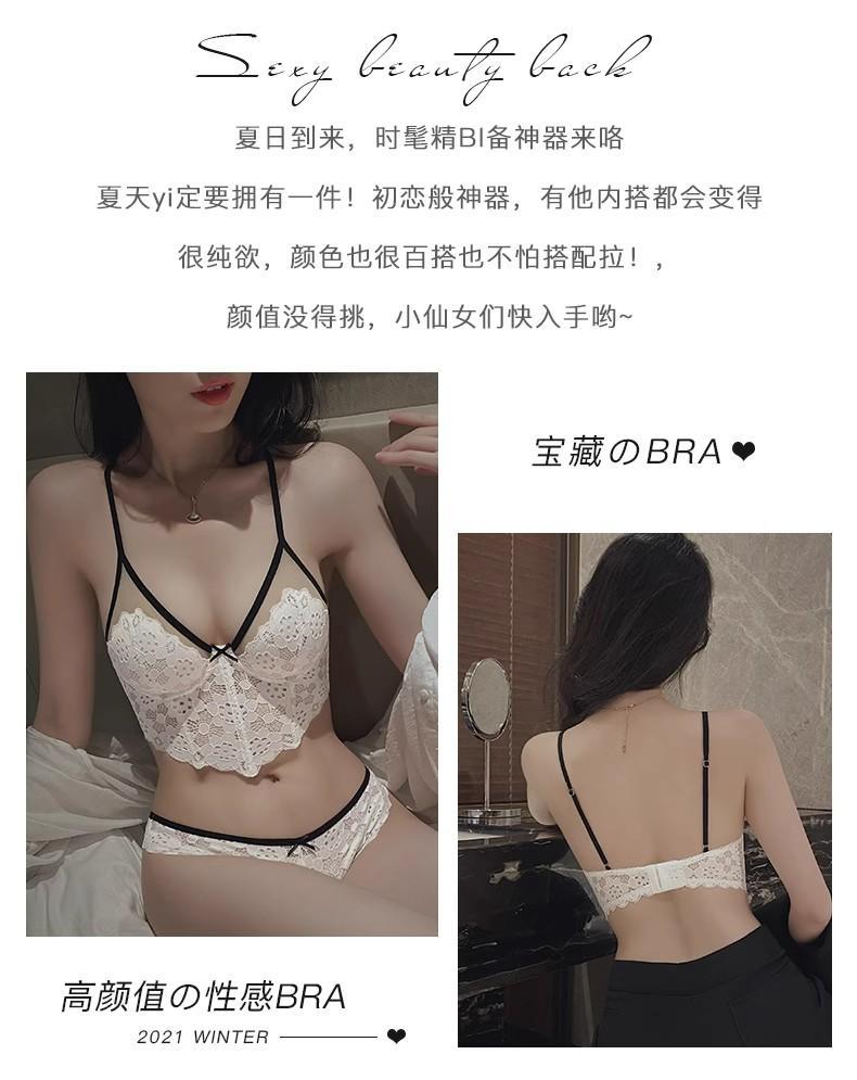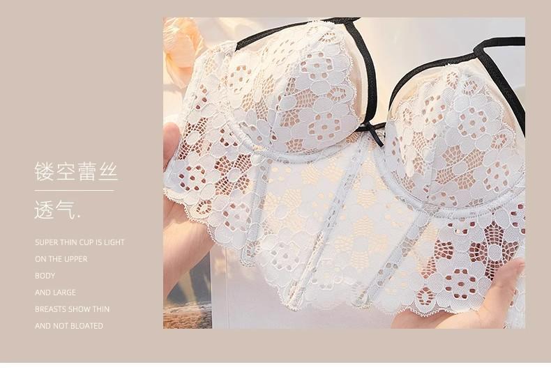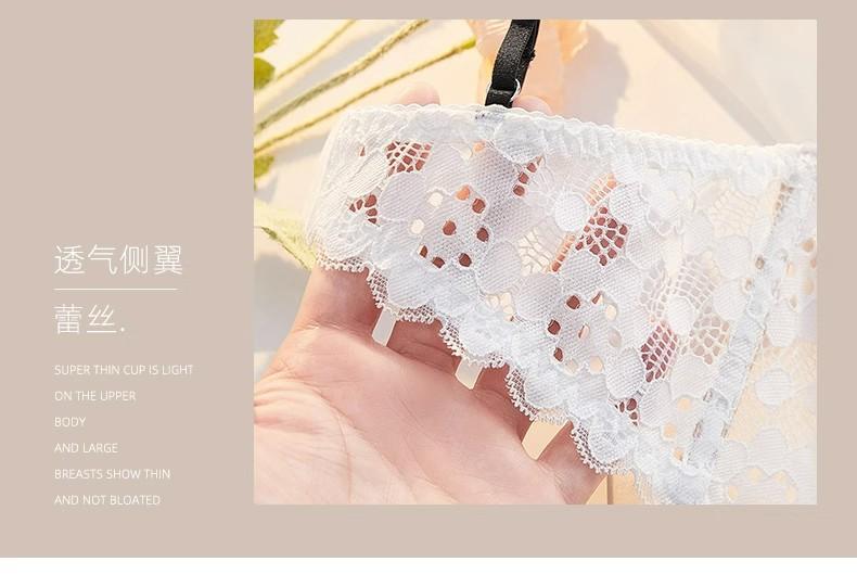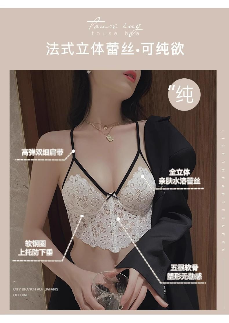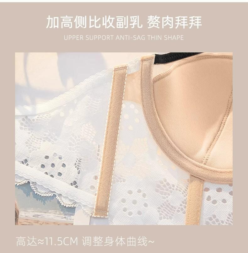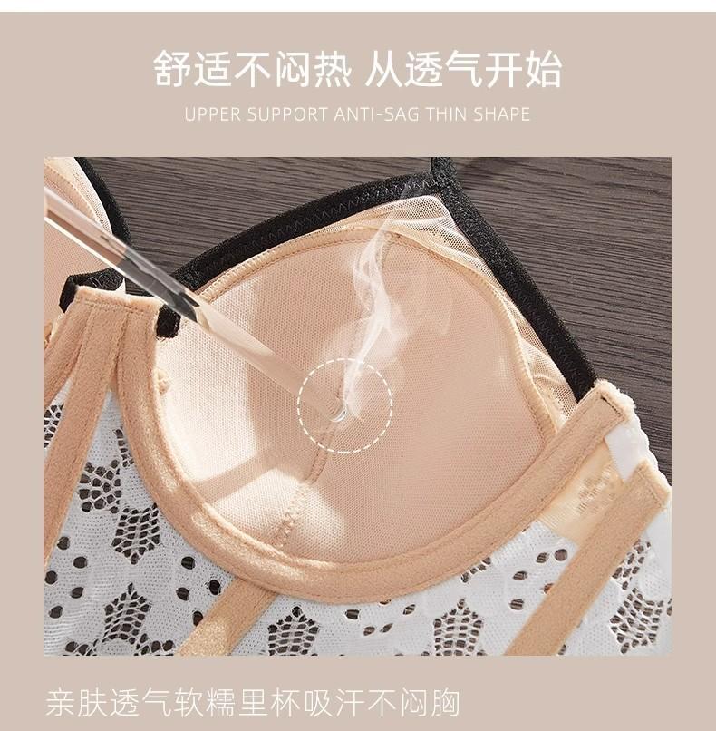 【五根软鱼骨,塑形无勒感!】法式超薄内衣女大胸显小胸 夏季薄款收副乳防下垂套装 细肩吊带文胸-QA