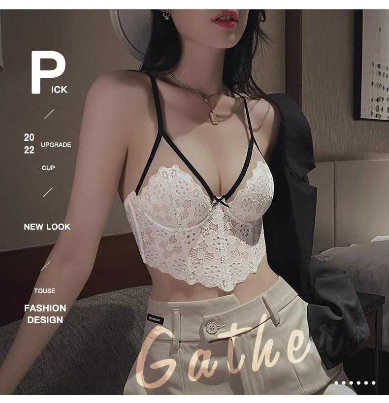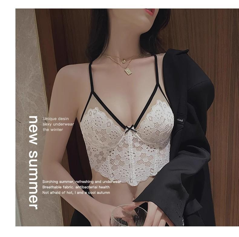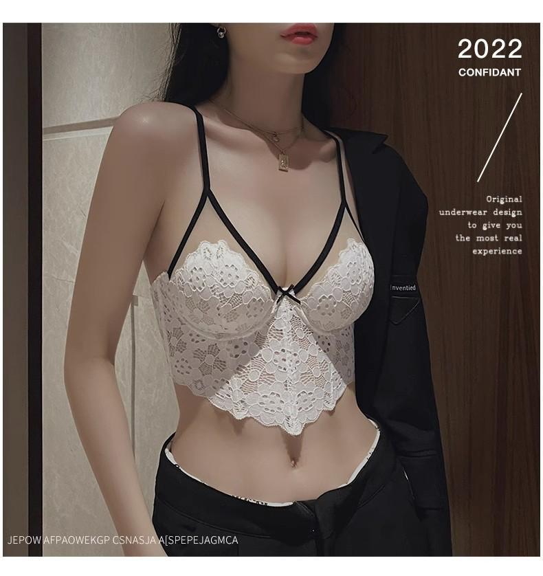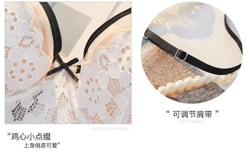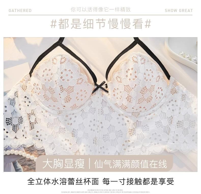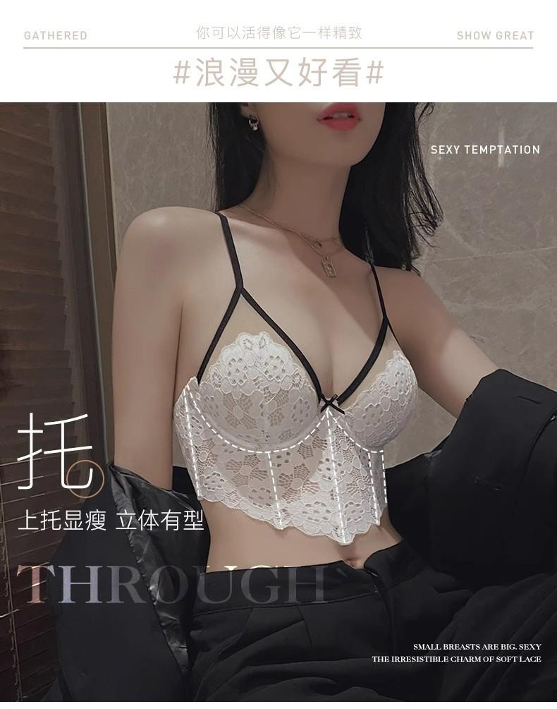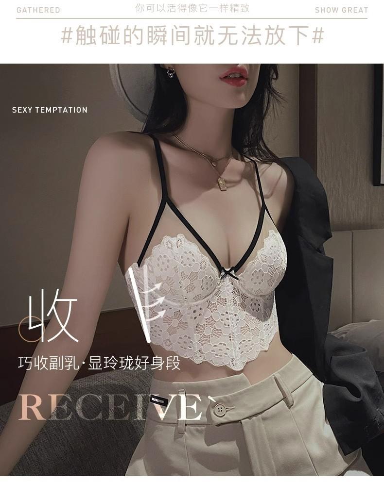 【五根软鱼骨,塑形无勒感!】法式超薄内衣女大胸显小胸 夏季薄款收副乳防下垂套装 细肩吊带文胸-QA