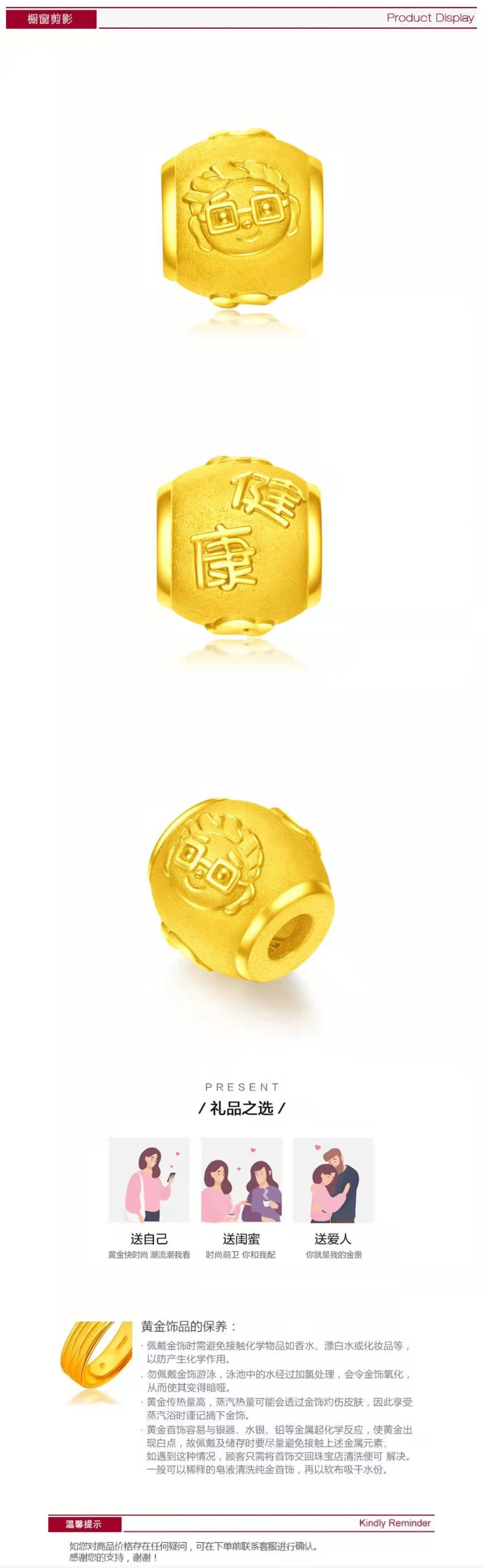 周大福咚咚仔与咕咕喵系列健康足金转运珠R25115