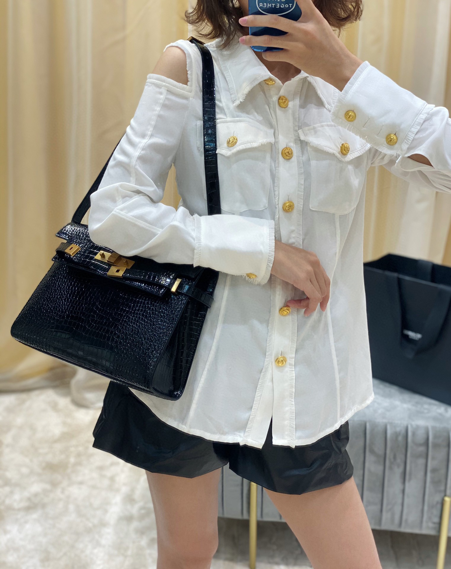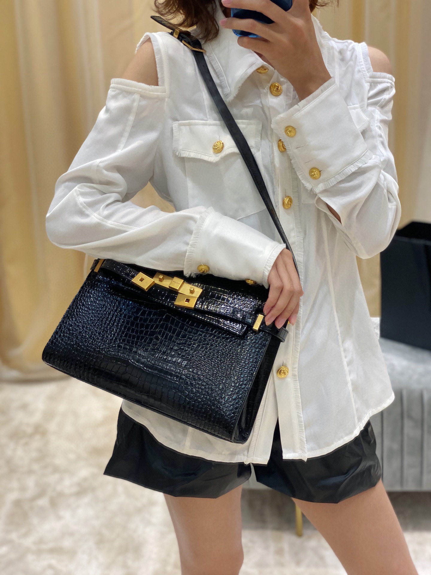 Manhattan 2020最新包型翻盖曼哈顿法棍包,一改以往经典的logo,取而代之低调简约的设计风格,它有点像H家的凯莉,很有复古的味道!商务➕休闲两者结合,总结起来就是百搭!可以手拿,可以单肩或斜挎,一包多用,满足了商务型女士,又满足了小女生的休闲!精心挑选的意大利鳄鱼纹牛皮、完美的走线、精致的五金让整个包包都散发出高级的味道!