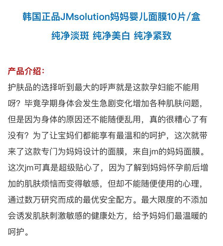 JM SOLUTION 妈妈婴儿面膜 10片装 韩国
