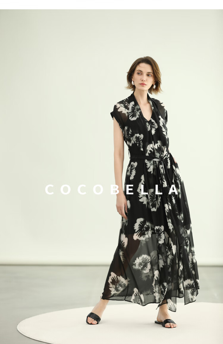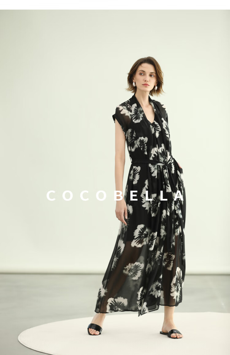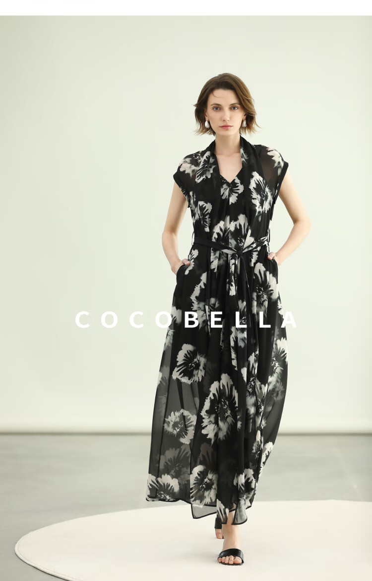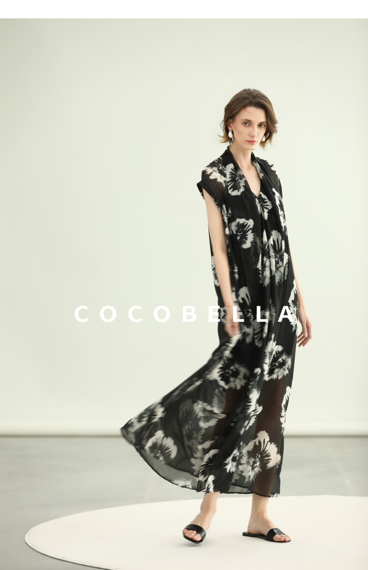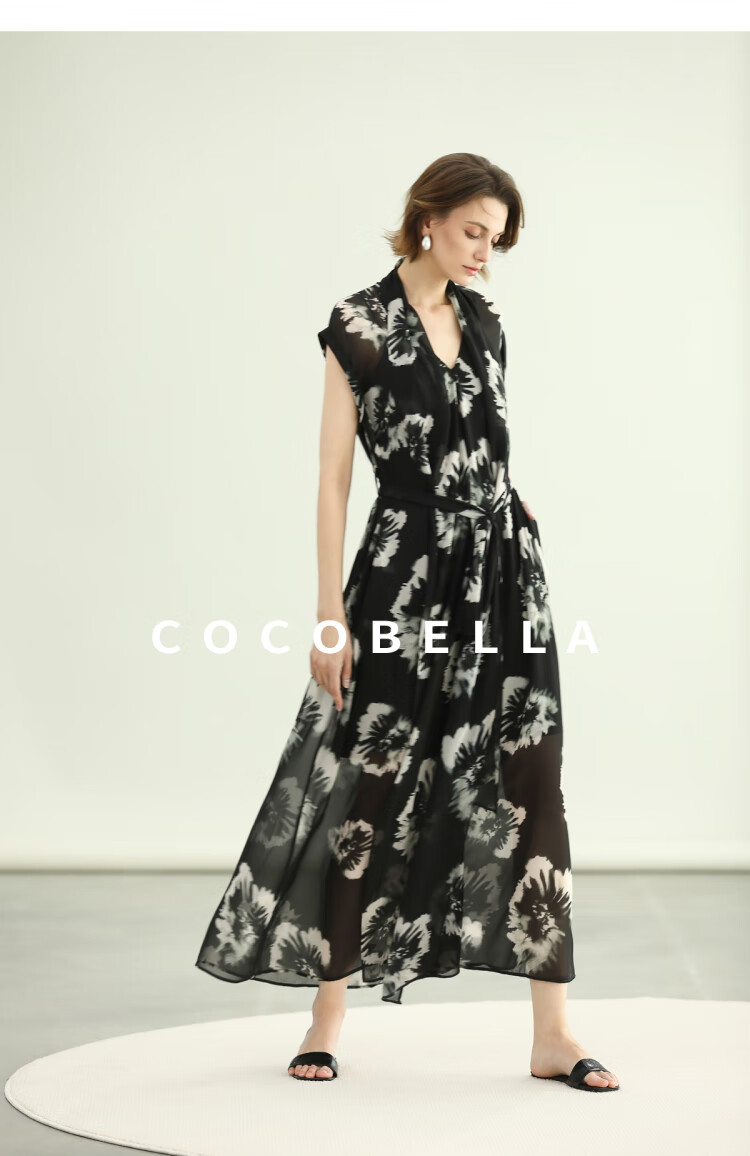 COCOBELLA国风水墨手绘稿遮肉小袖连衣裙清凉夏日长裙FR3090