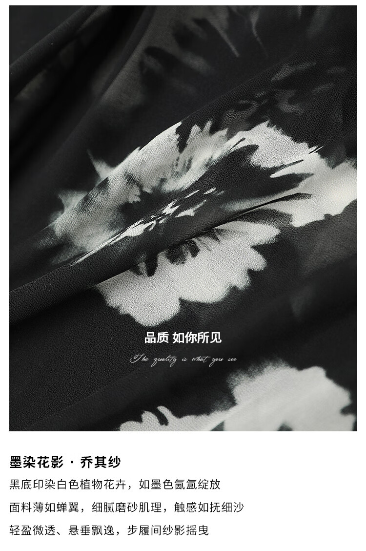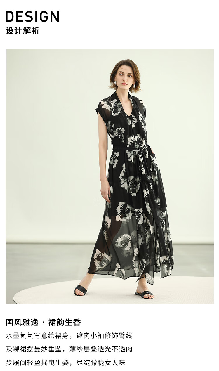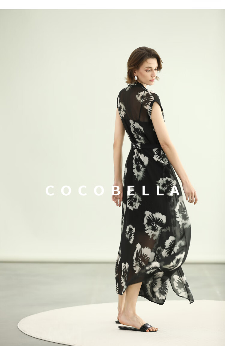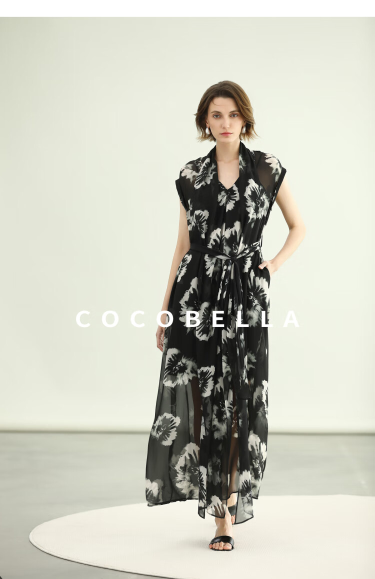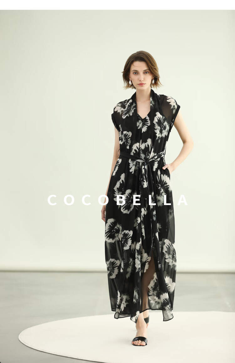 COCOBELLA国风水墨手绘稿遮肉小袖连衣裙清凉夏日长裙FR3090
