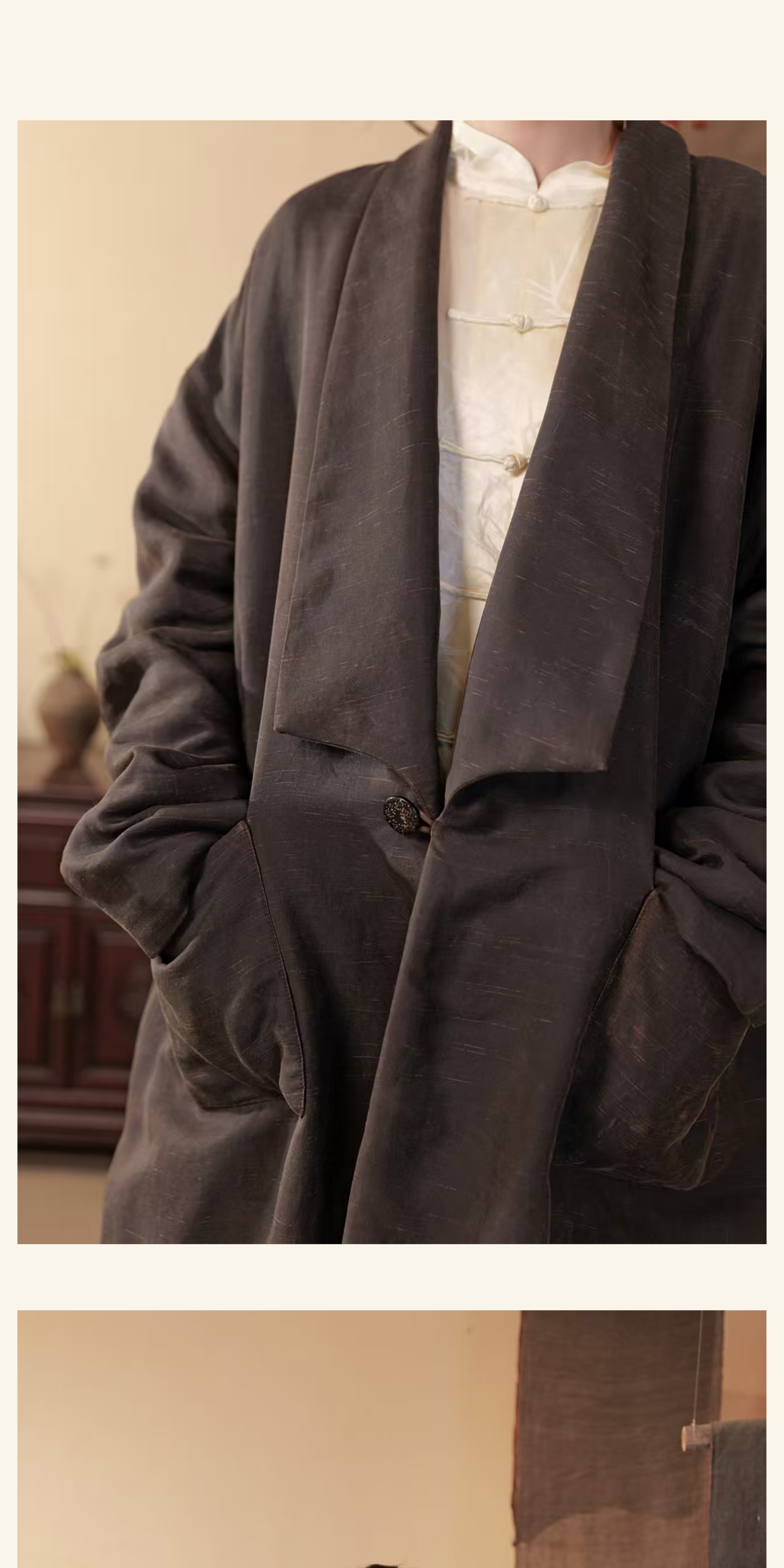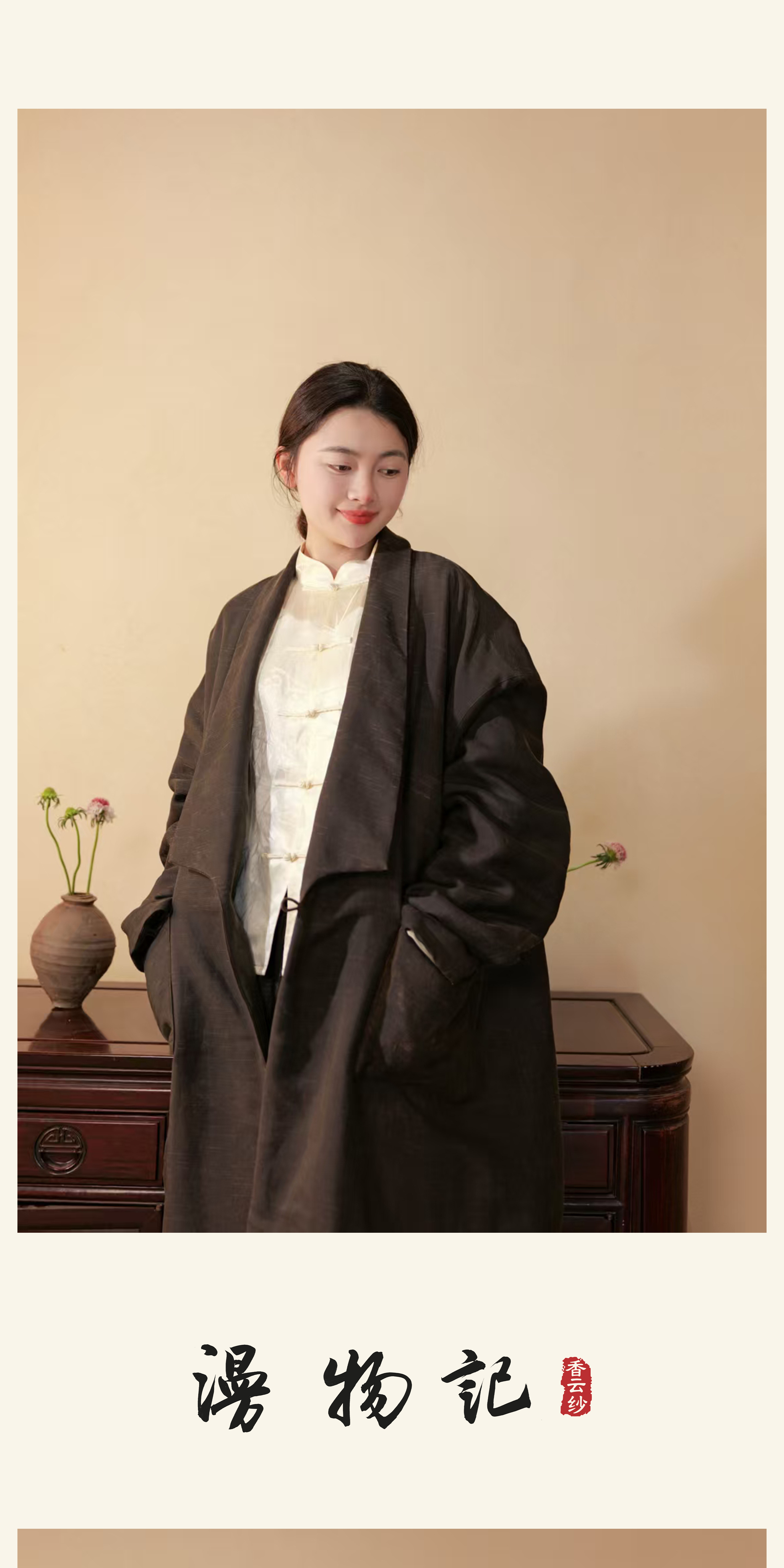 漫物记丝毛翻领双口袋长外套xys-317