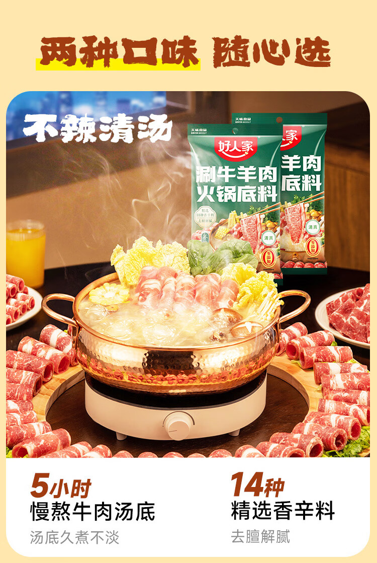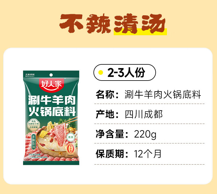 好人家涮牛羊肉不辣清汤火锅底料220g