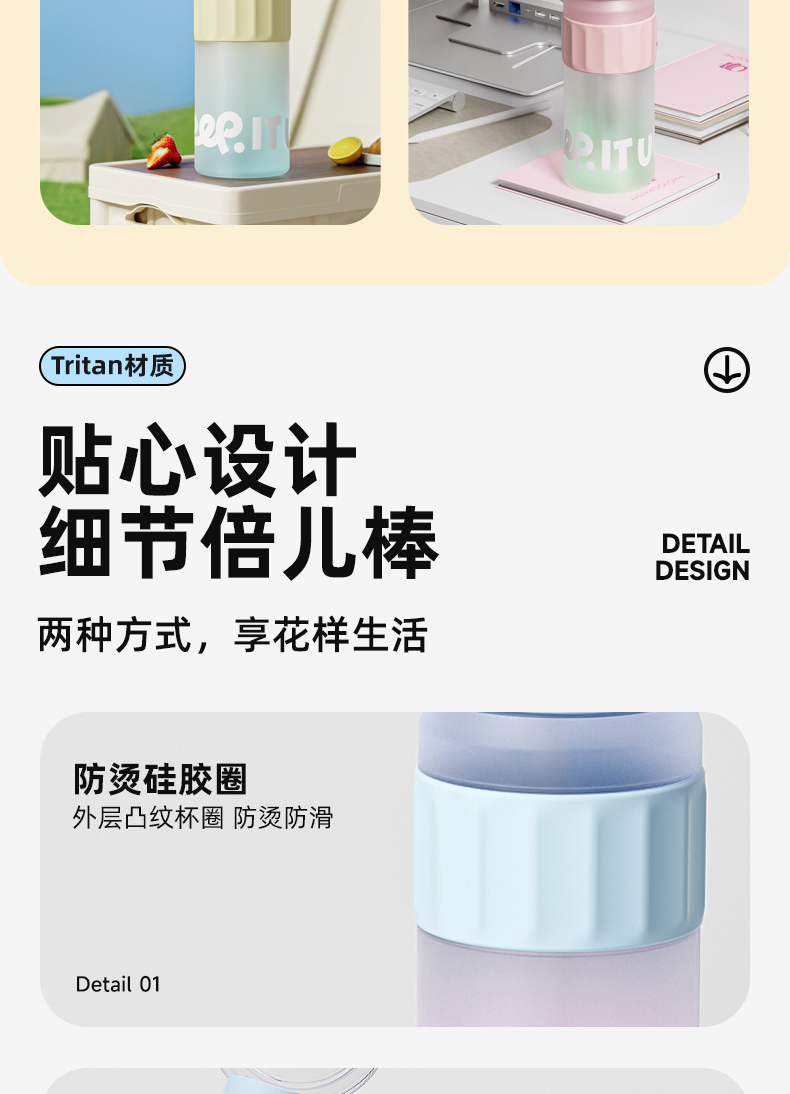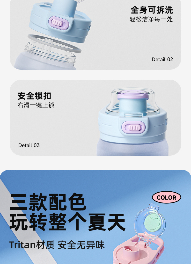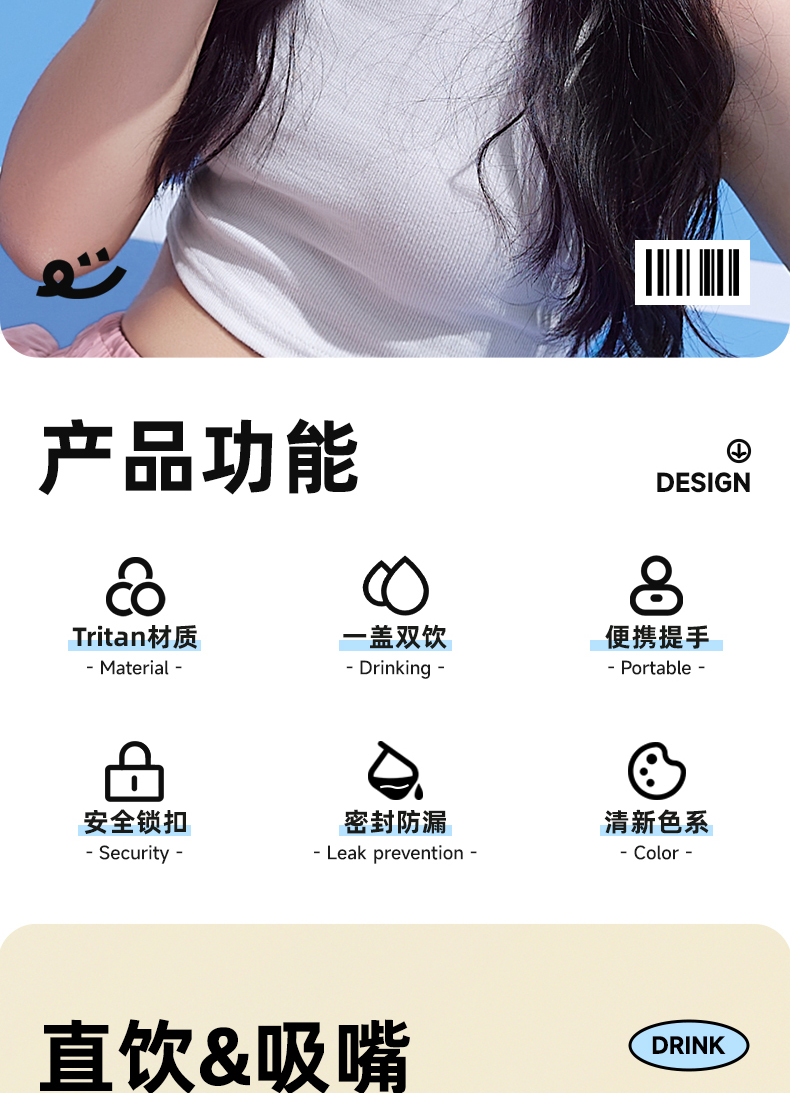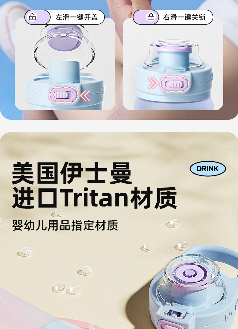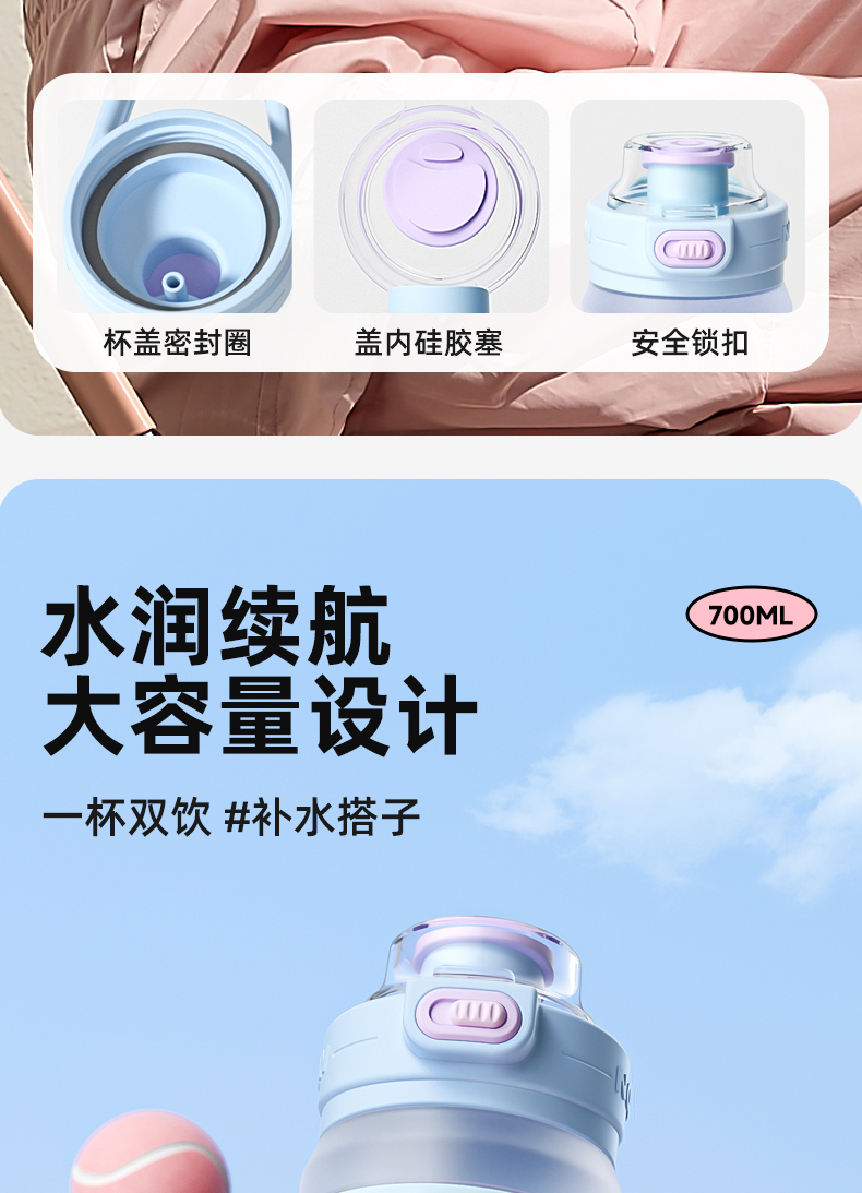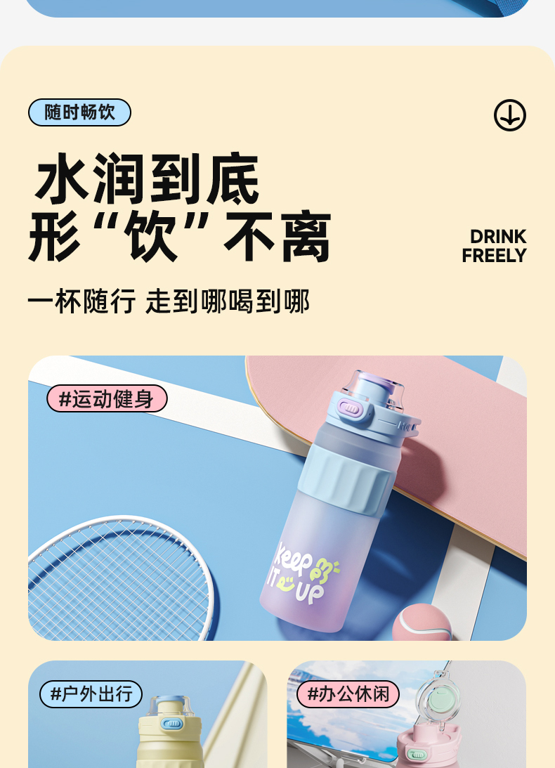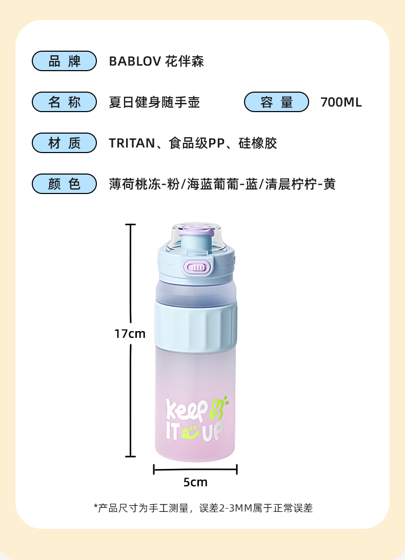 bablov运动水杯夏天男女高颜值便携随行杯大容量tritan塑料吸管杯子