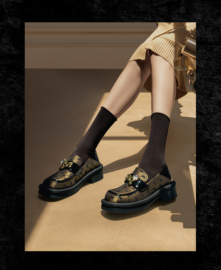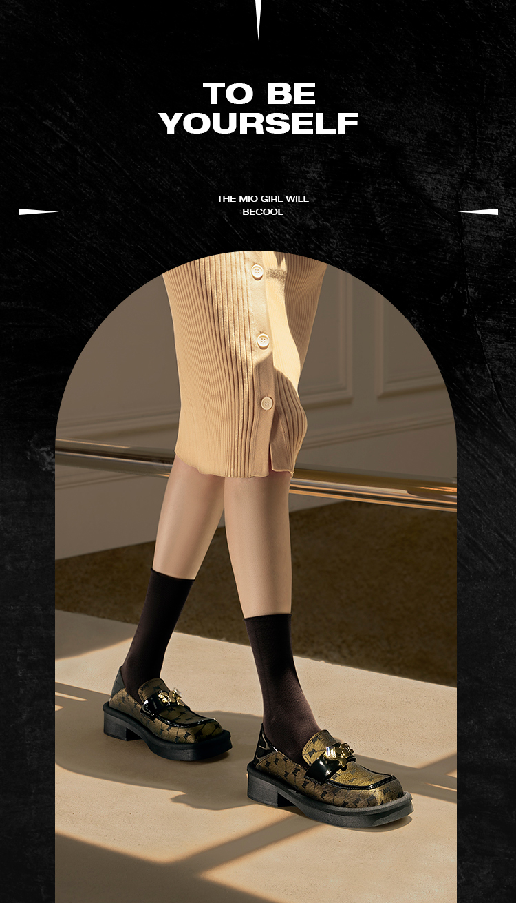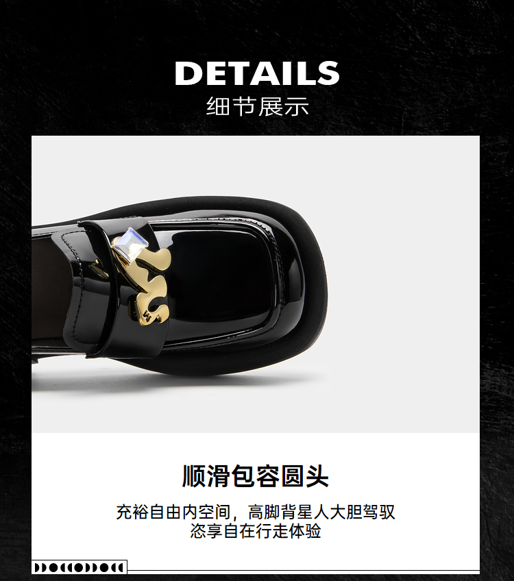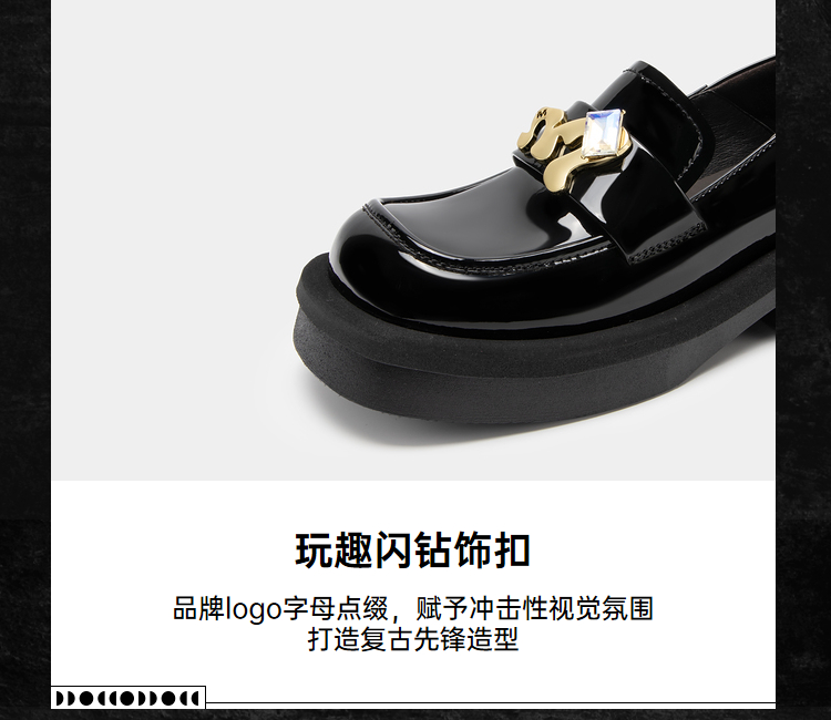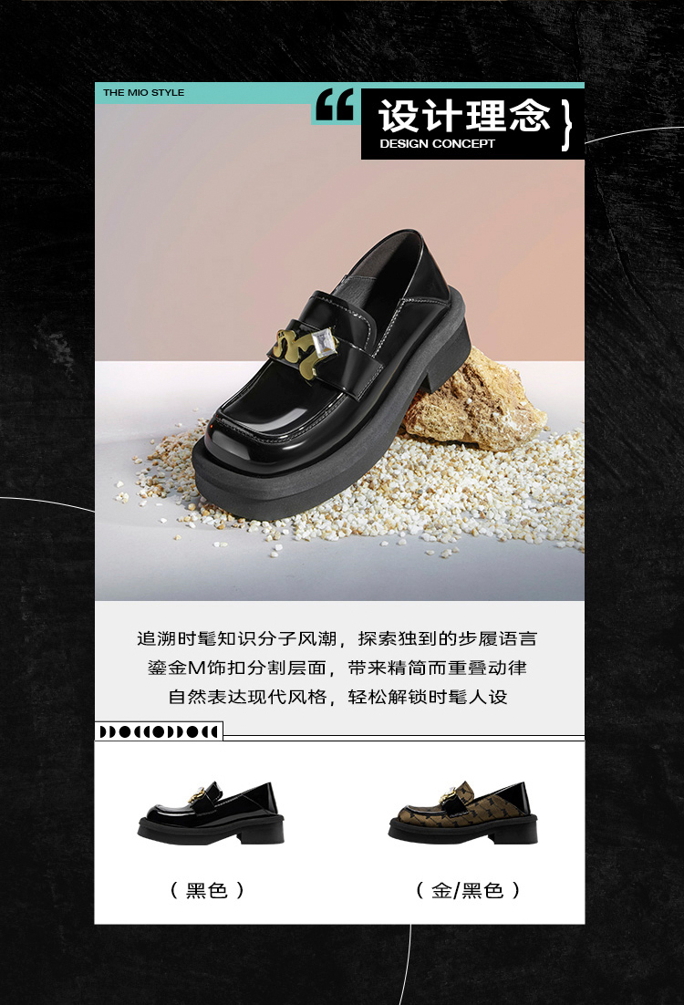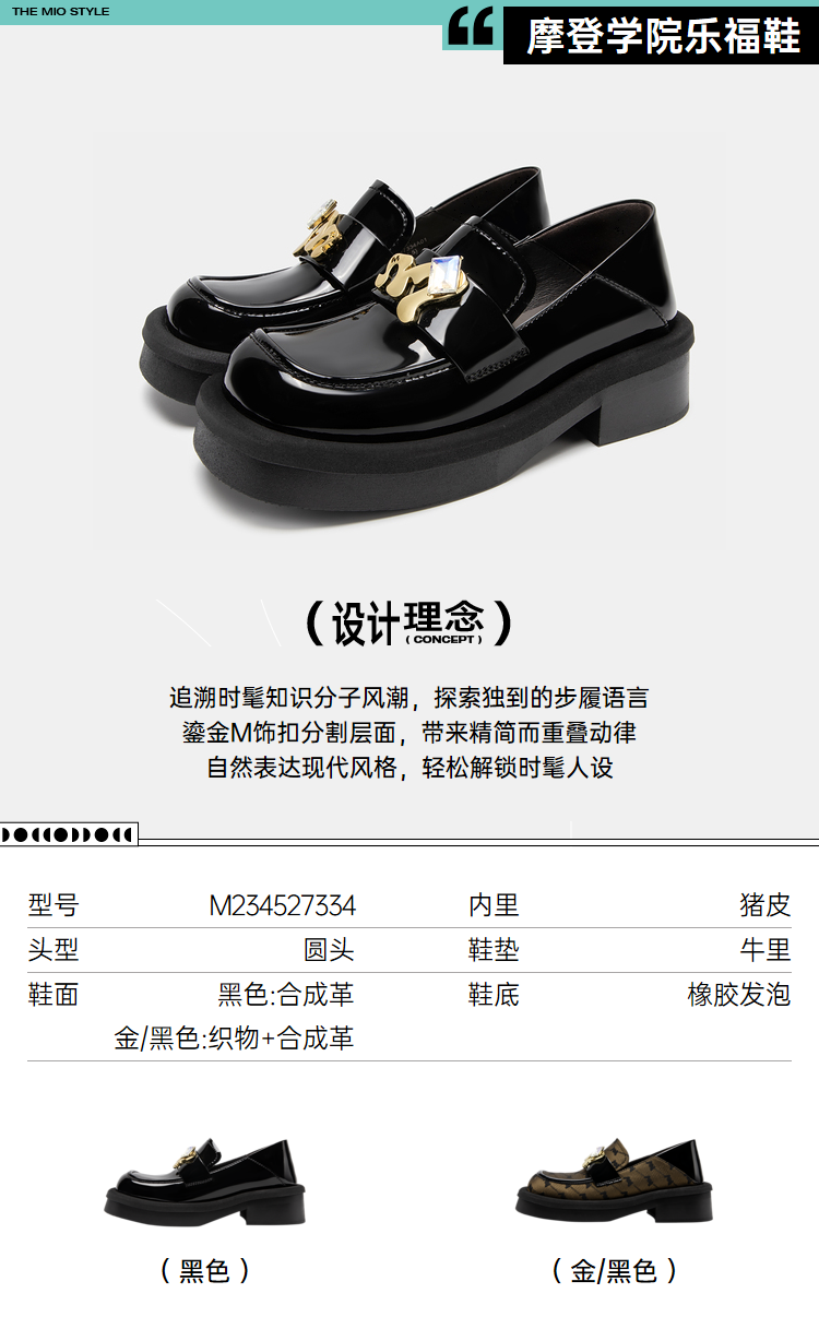 MIO米奥春秋圆头字母钻饰老钱风单鞋复古一脚蹬乐福鞋英伦风女鞋M234527334