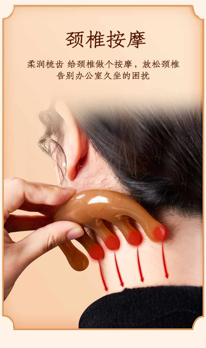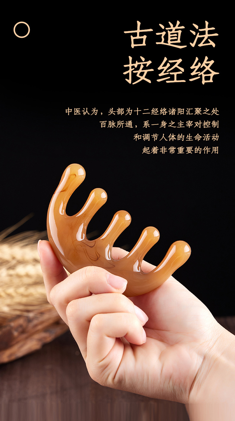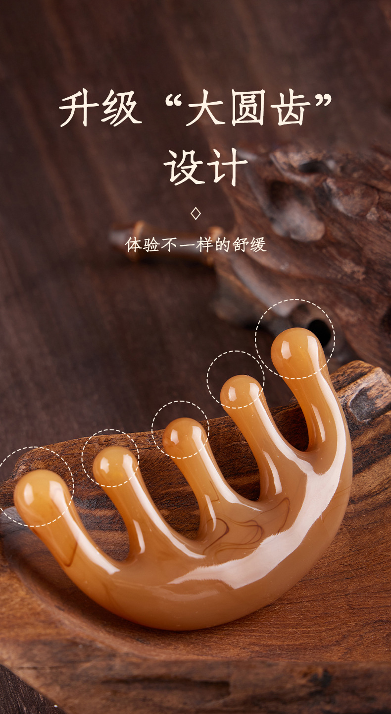 五齿经络按摩梳树脂大齿头部穴位按摩头疗神器五爪减压便携小梳子