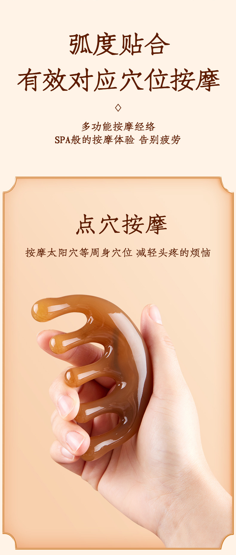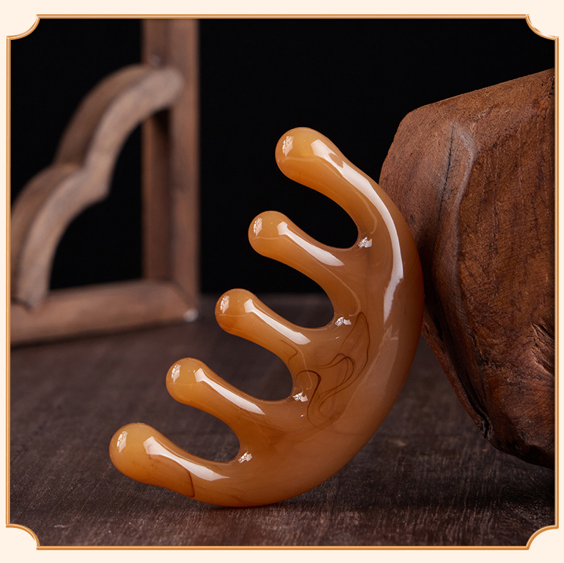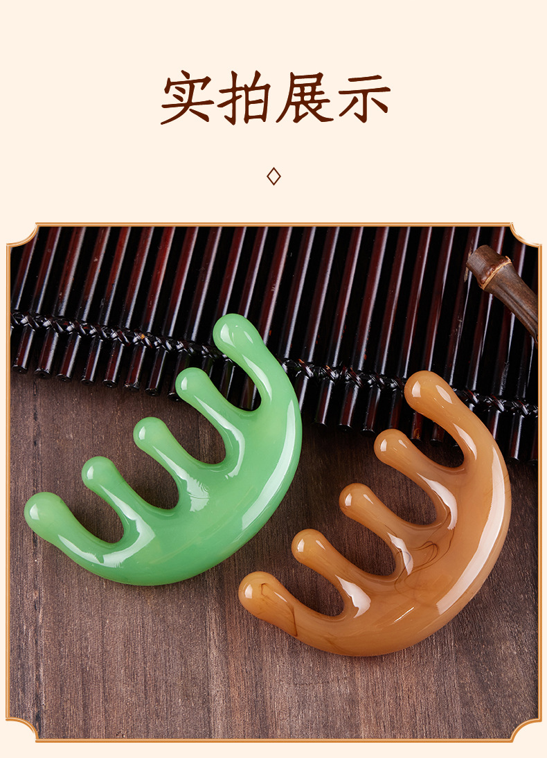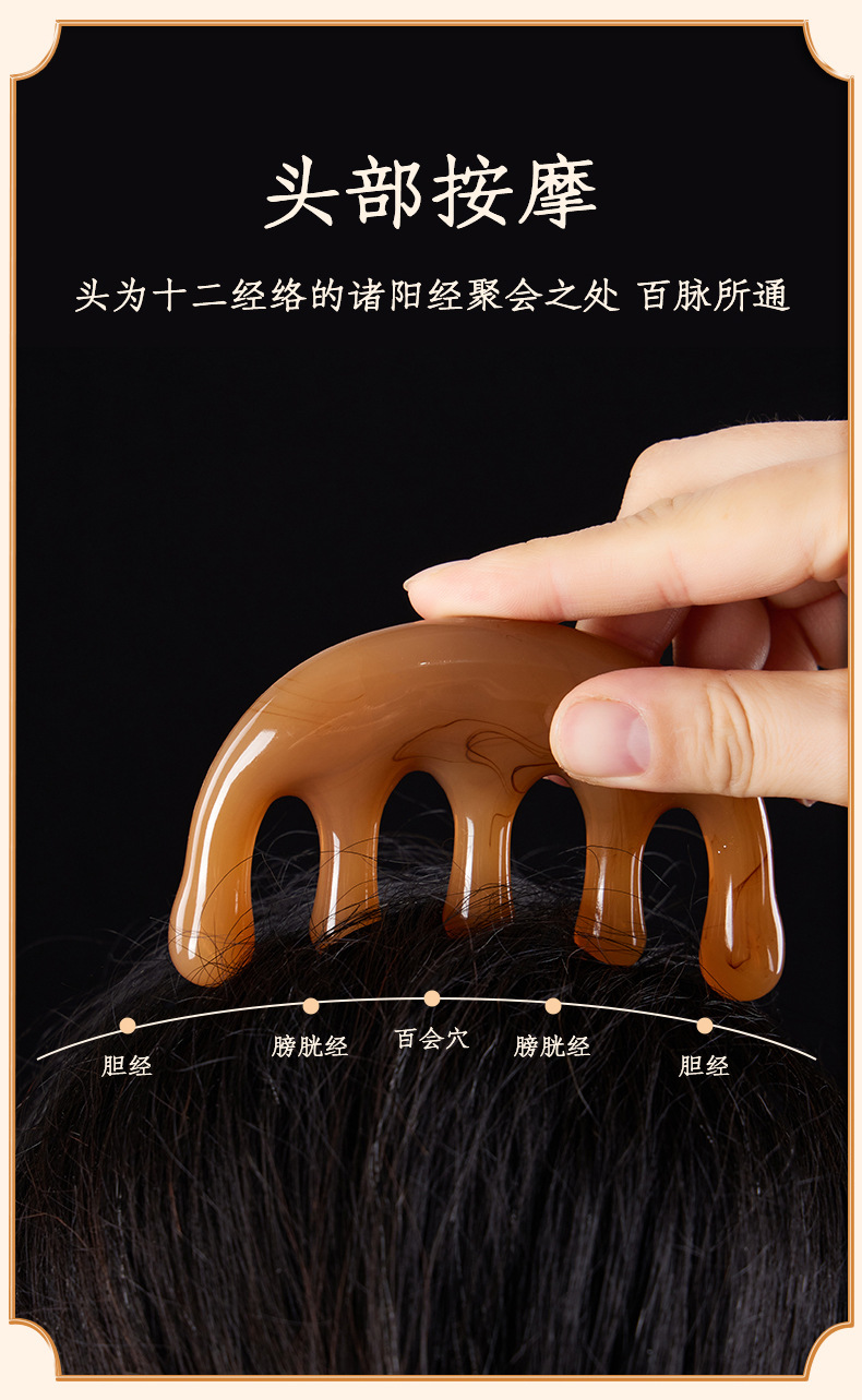 五齿经络按摩梳树脂大齿头部穴位按摩头疗神器五爪减压便携小梳子