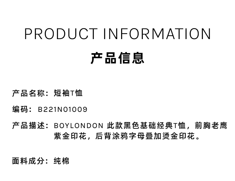BOYLONDON男女同款22春季新品经典基础款紫金印花短袖T恤B221N0100902