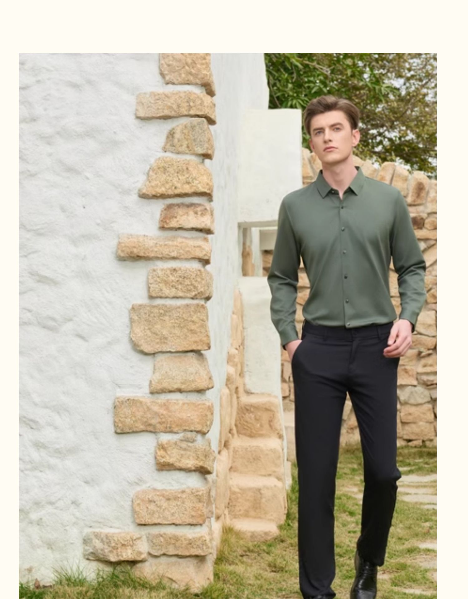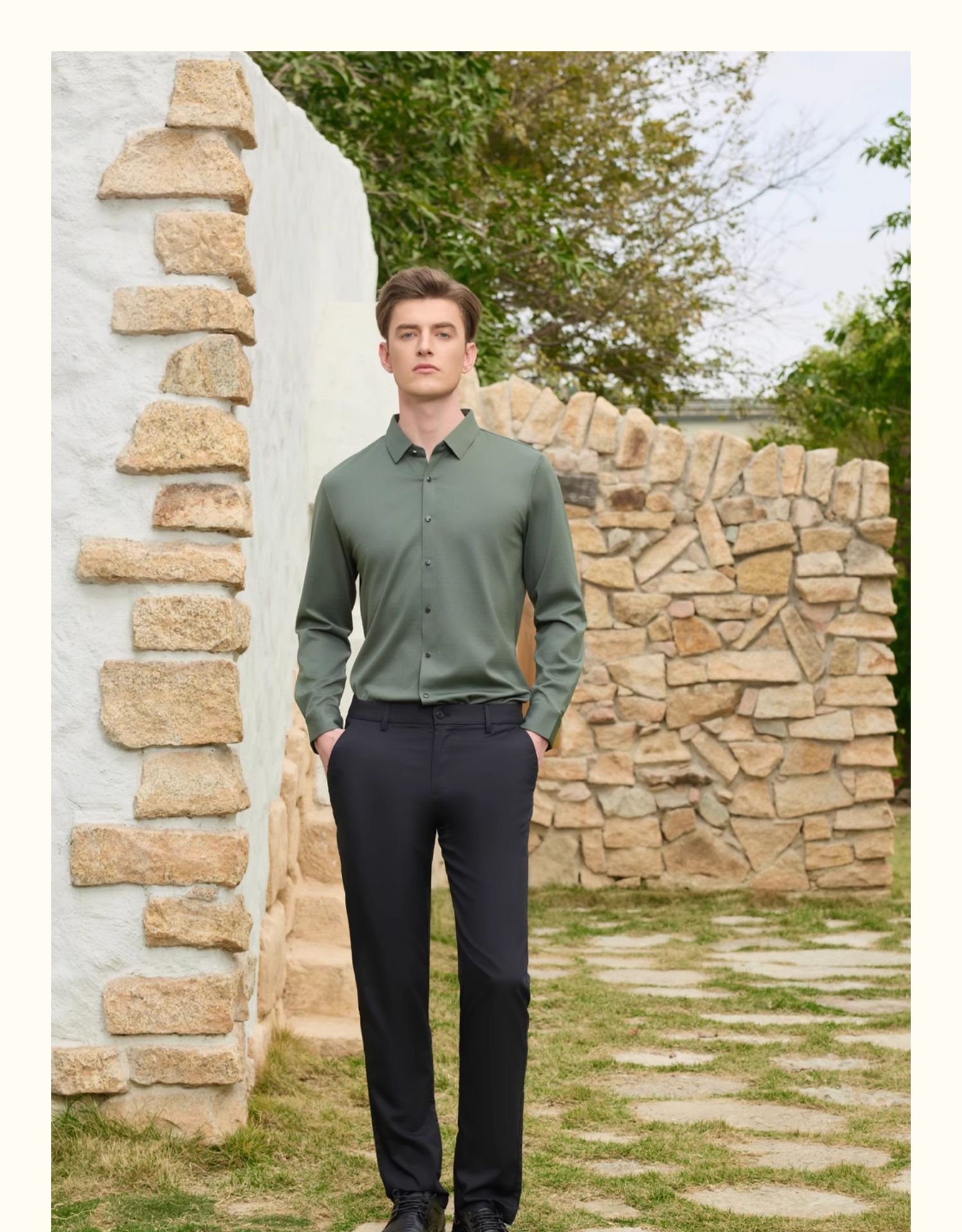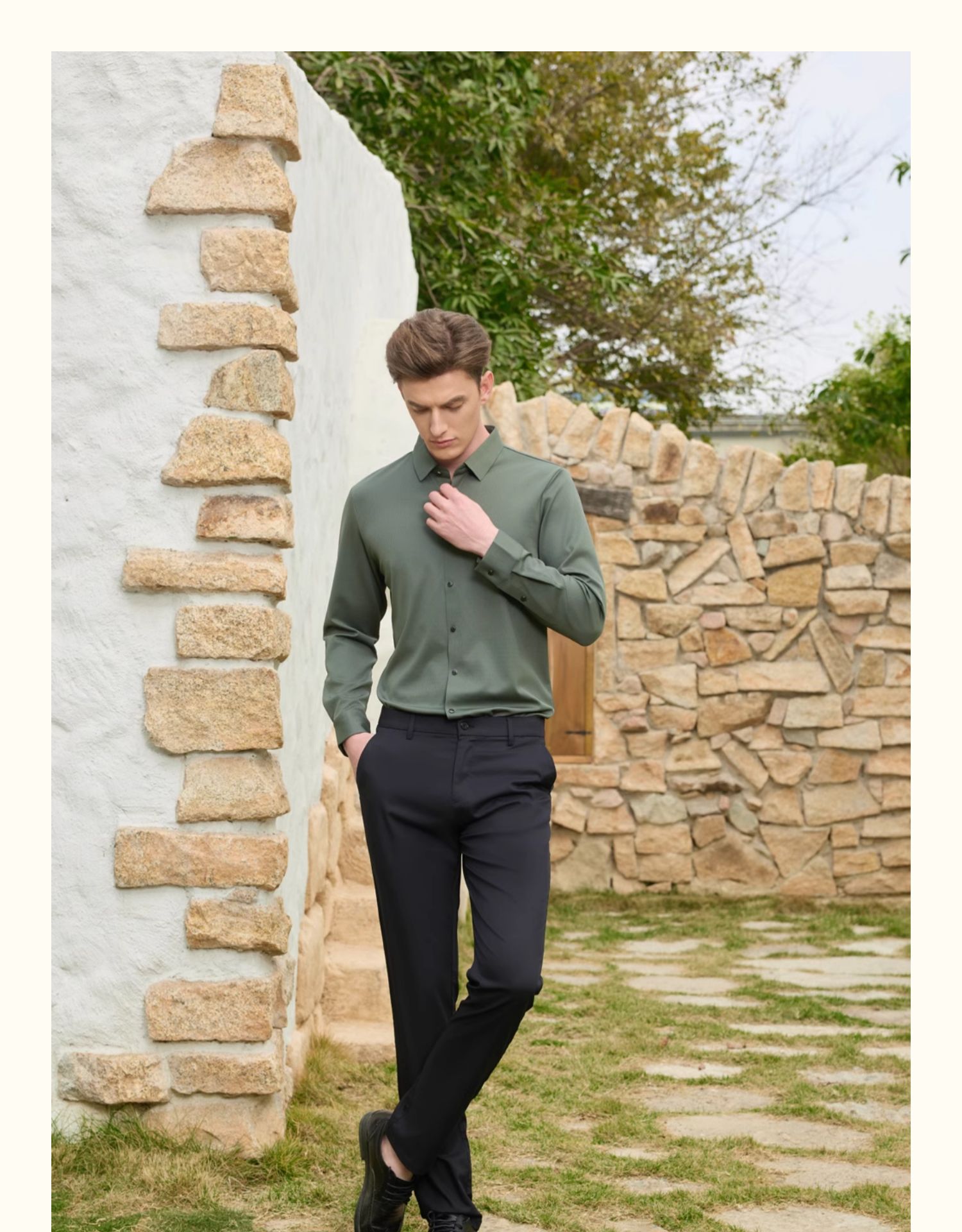 半身缘男装 春季新款无缝热压衬衣时尚纹理感衬衫261312M01012053