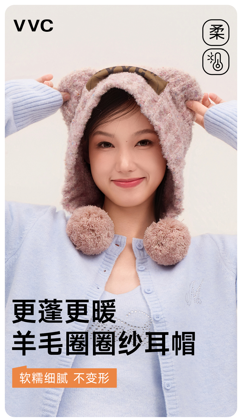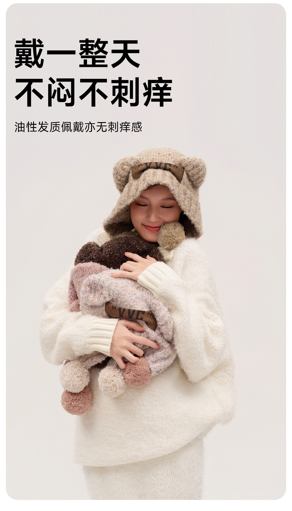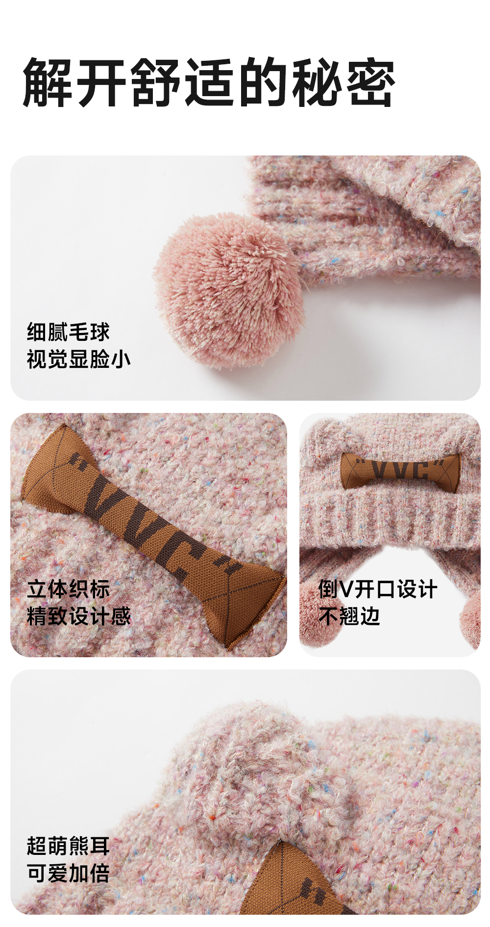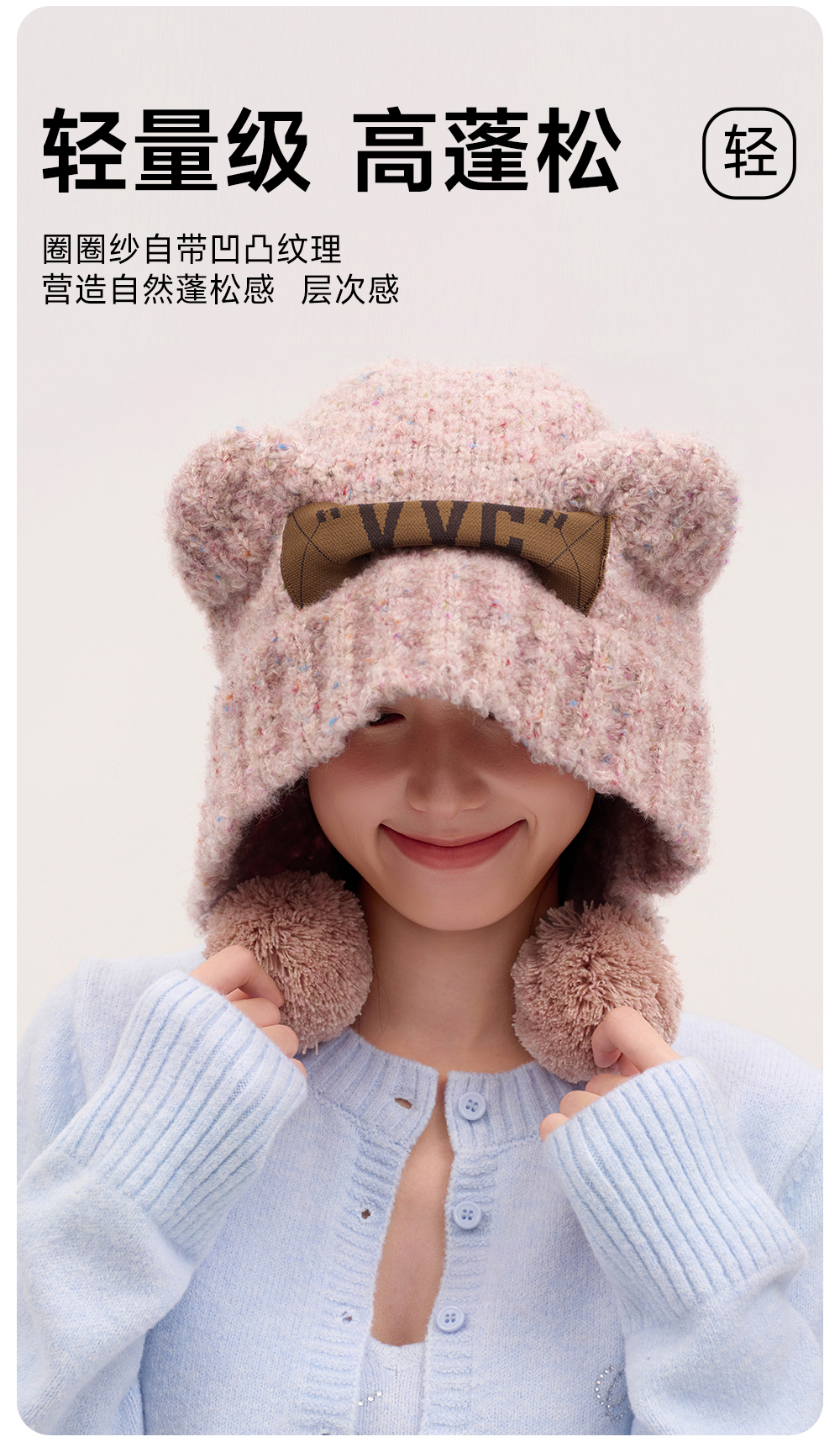 【成毅同款】VVC帽子女秋冬可爱小熊耳朵针织帽保暖显脸小毛线帽冬季防寒头套