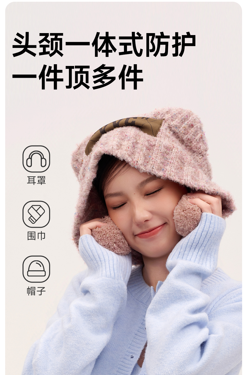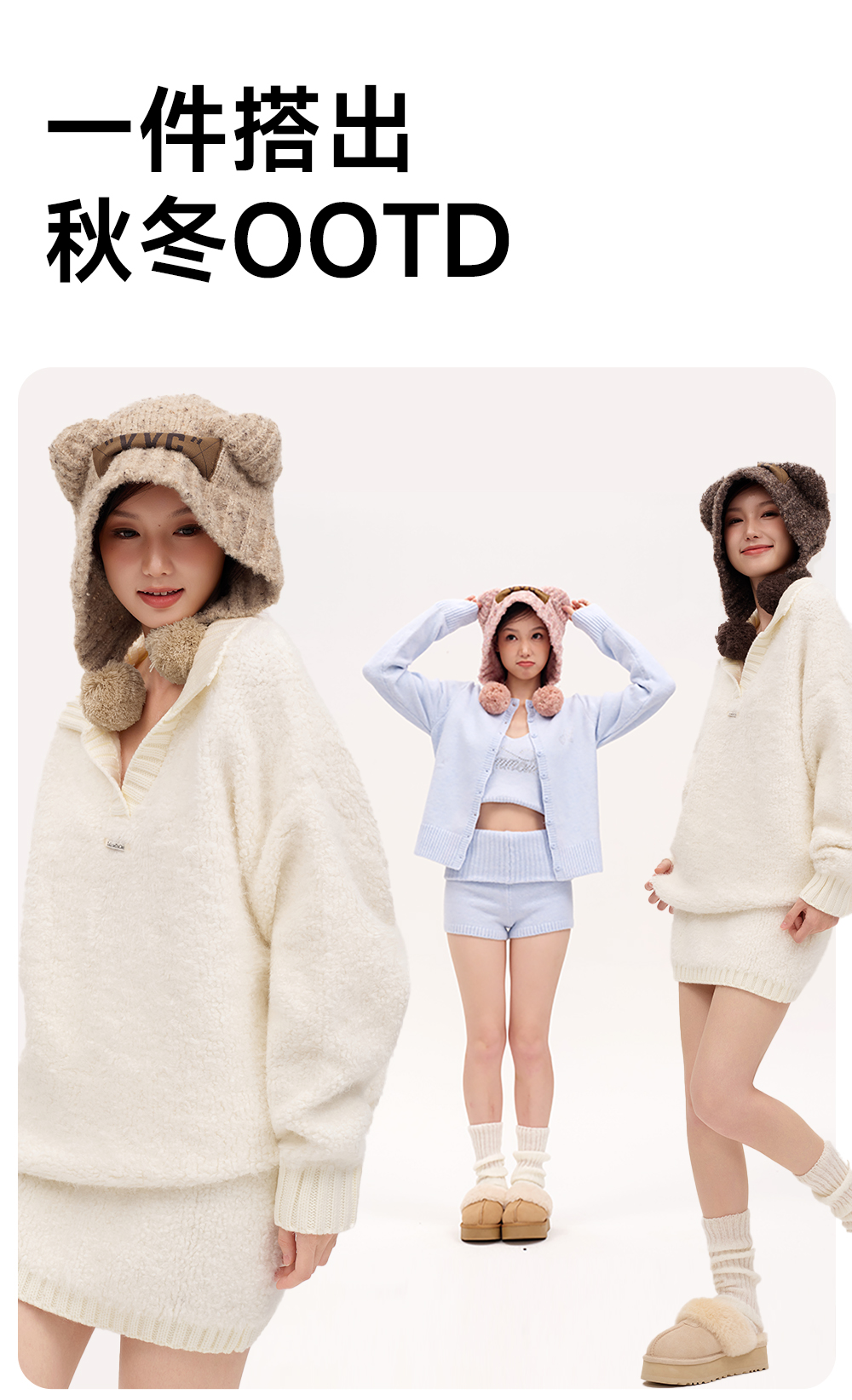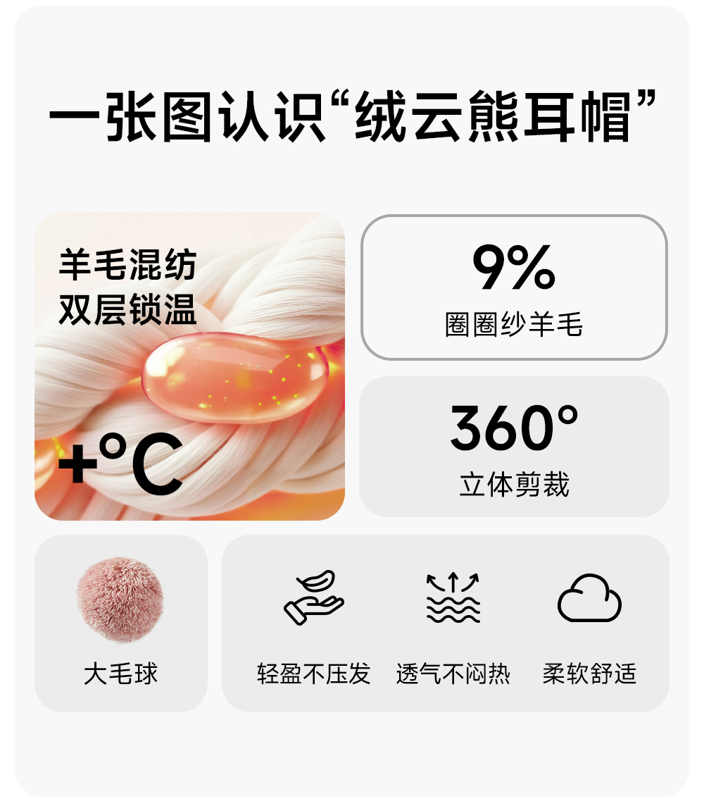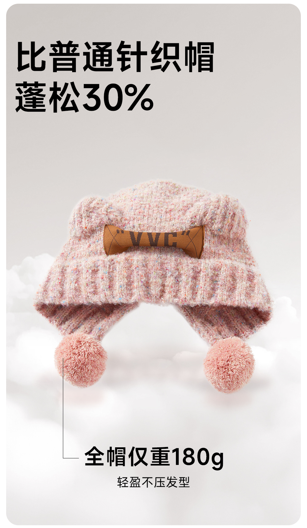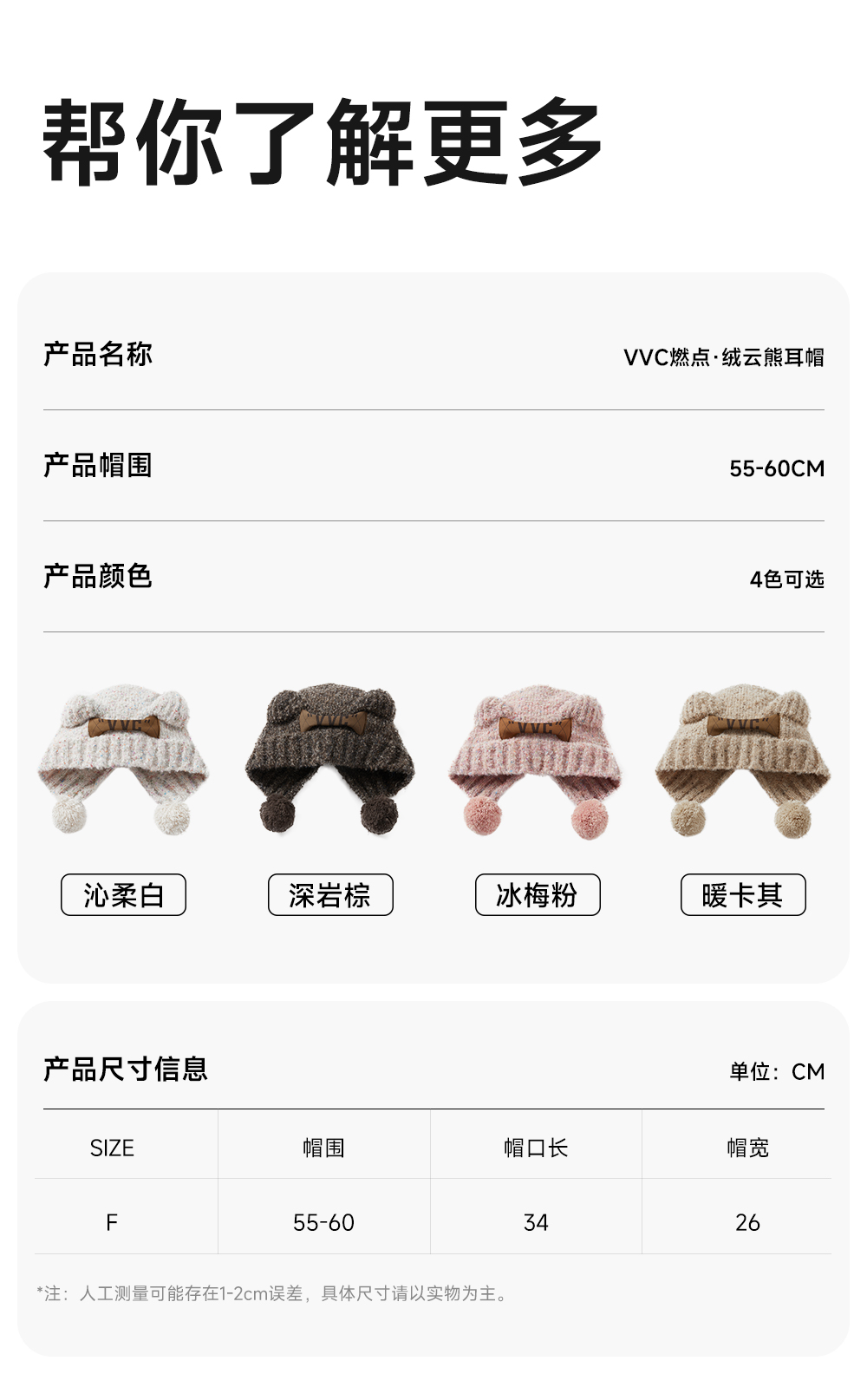 【成毅同款】VVC帽子女秋冬可爱小熊耳朵针织帽保暖显脸小毛线帽冬季防寒头套