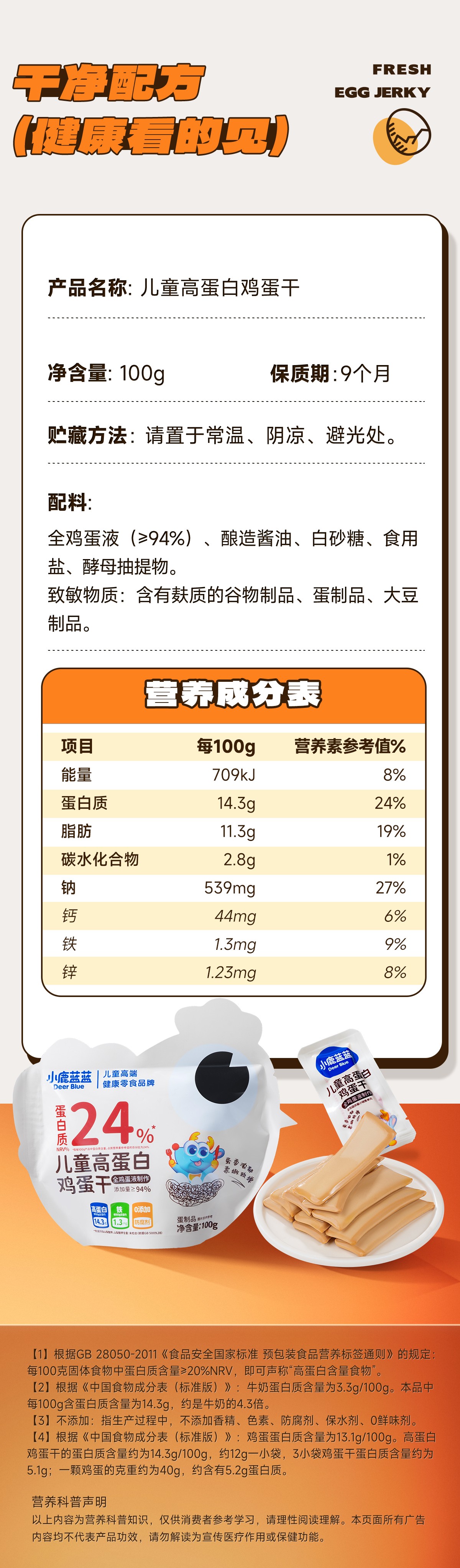 【任选专区】【36月+】儿童高蛋白鸡蛋干100g*1袋(含8条)