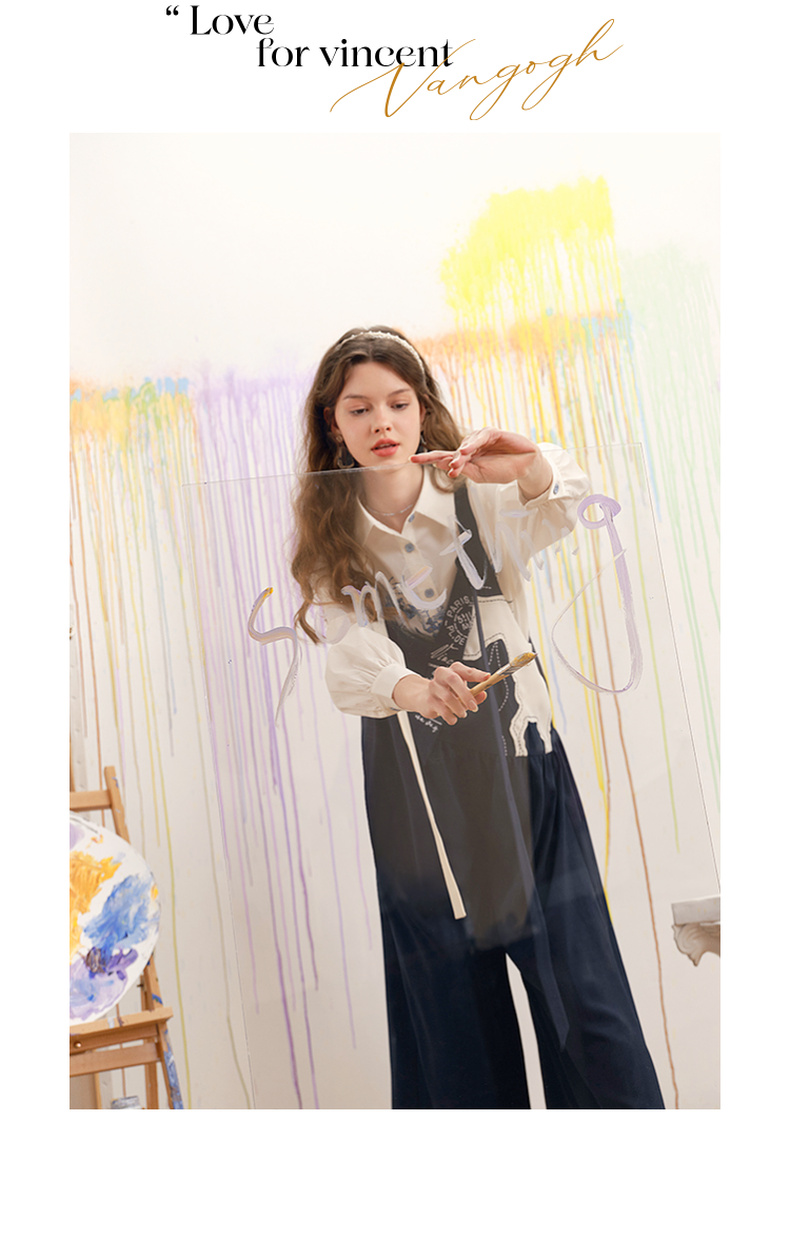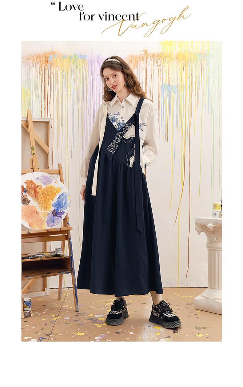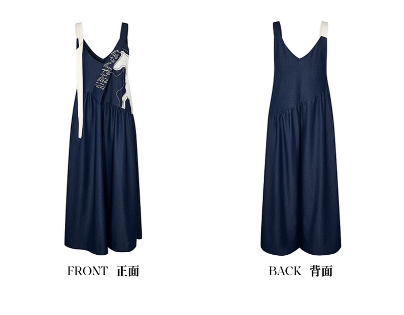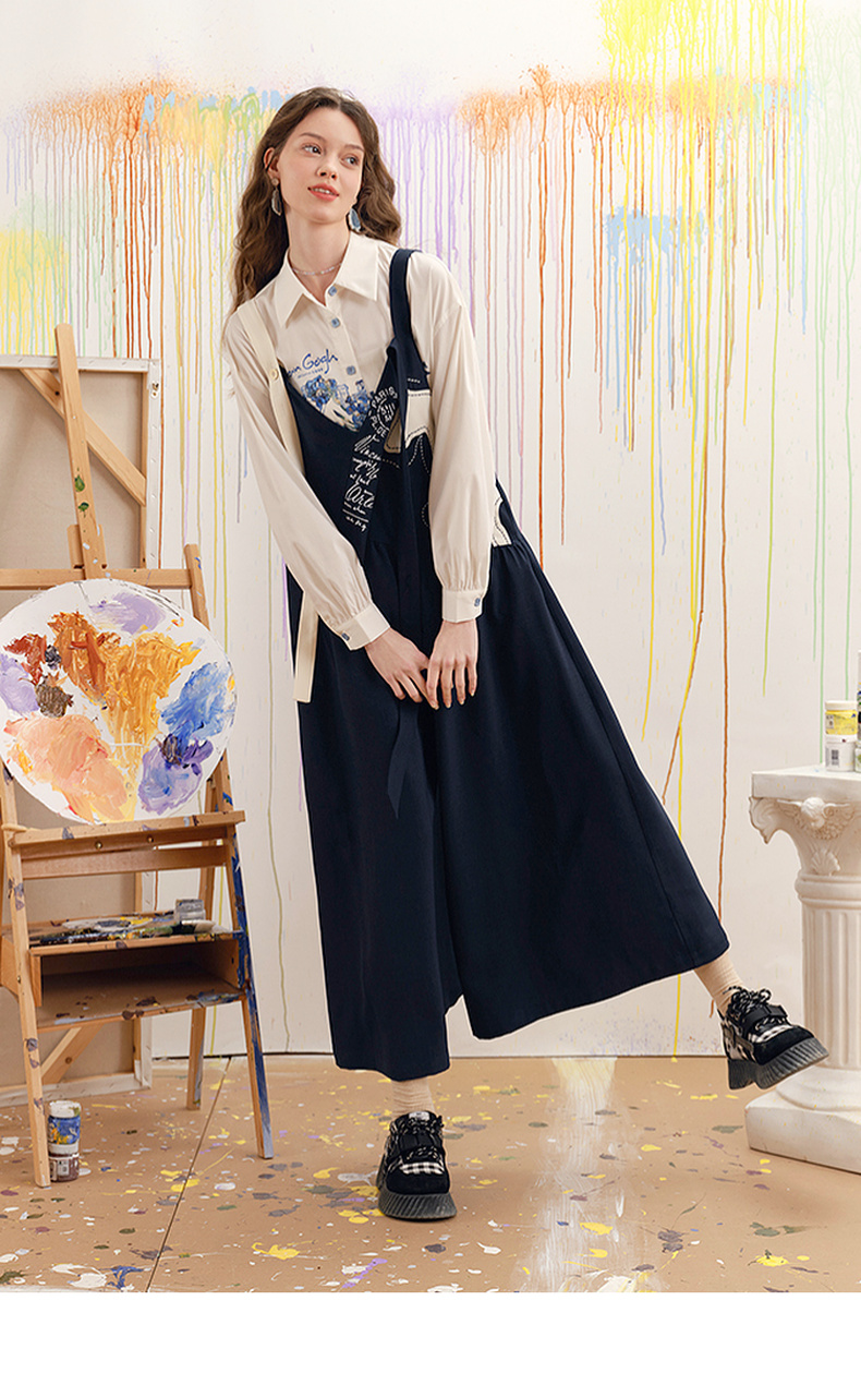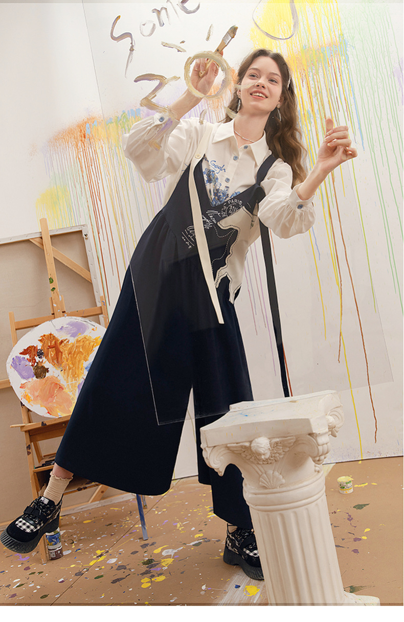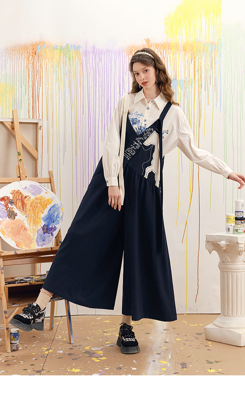 两三事梵高文艺 驭马漫游 2025春季新款动物贴布绣不对称背带裤女