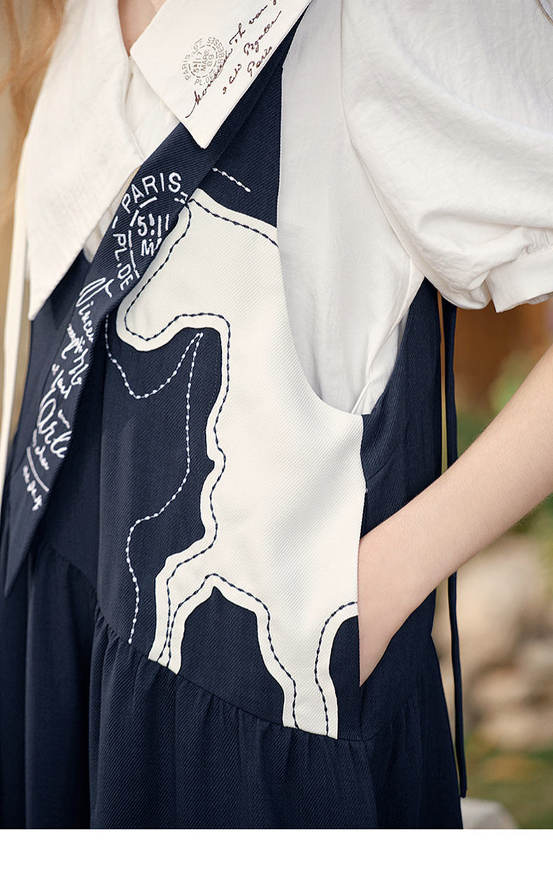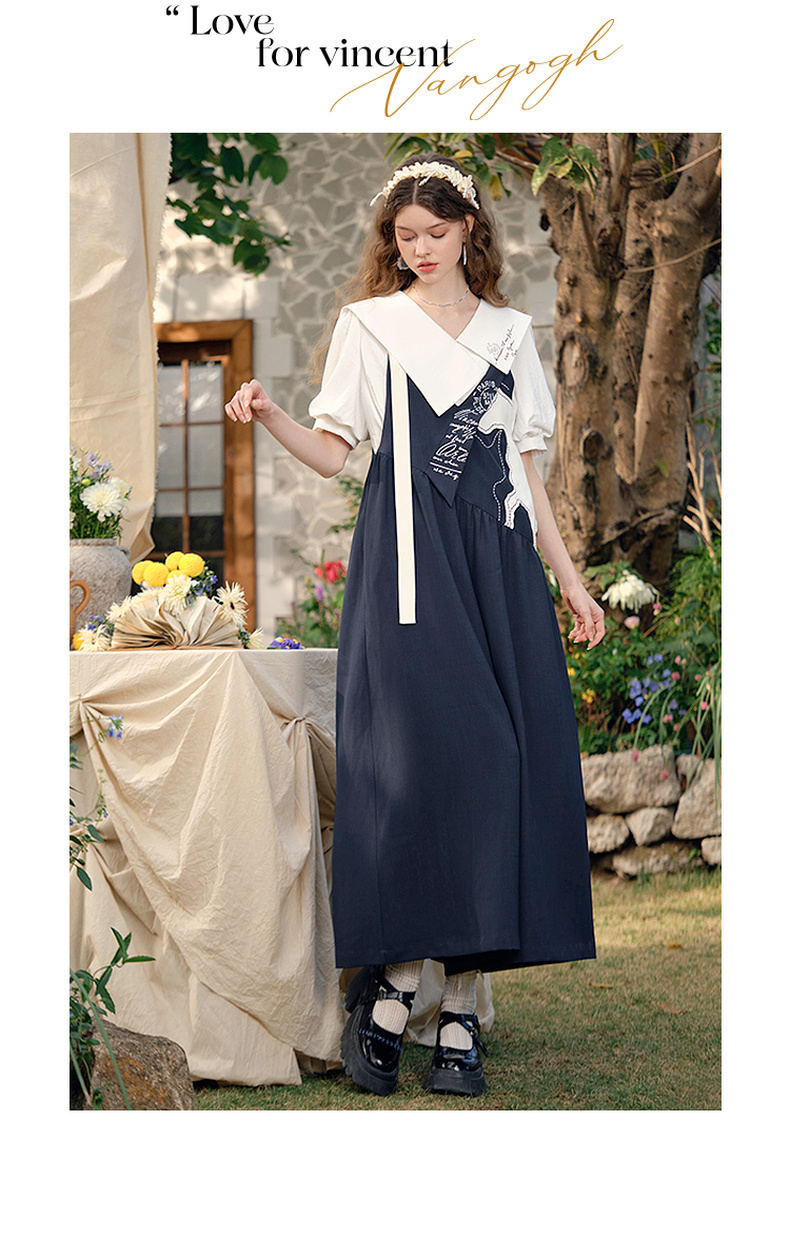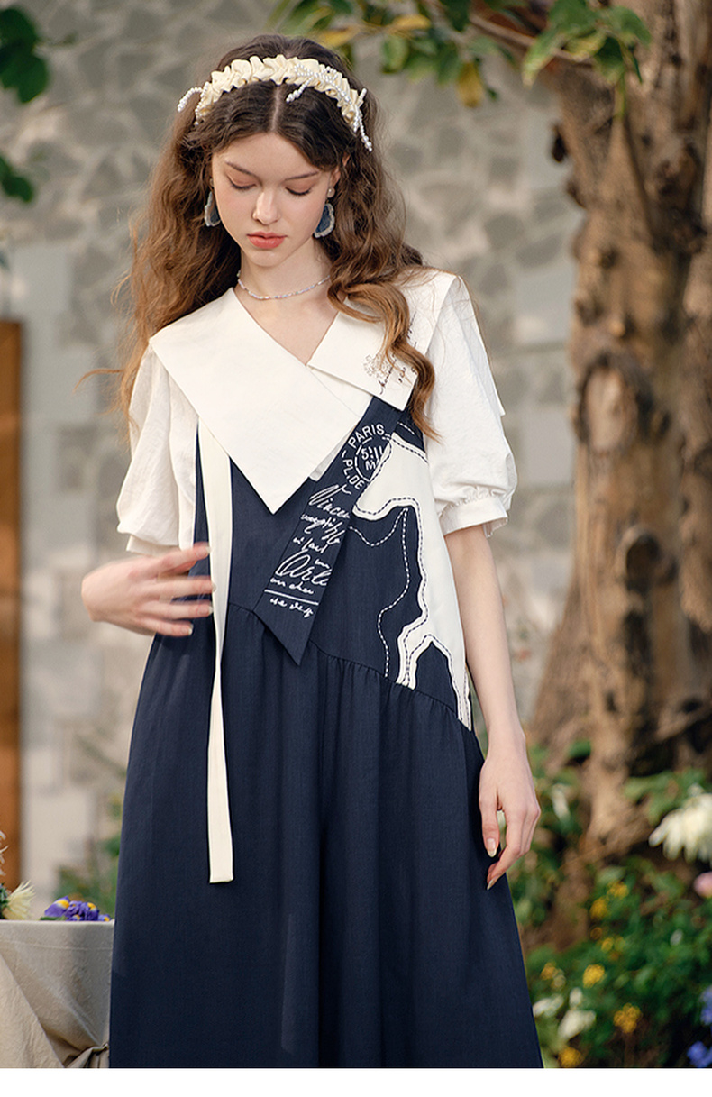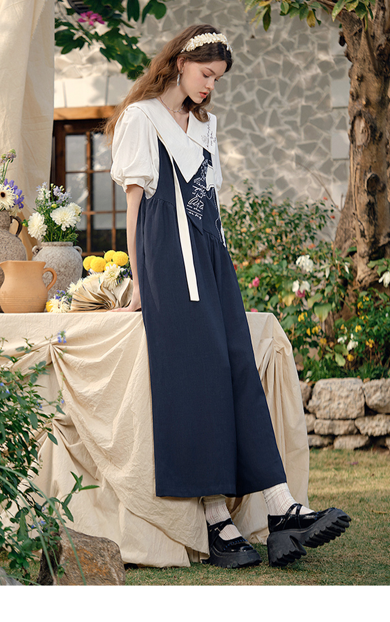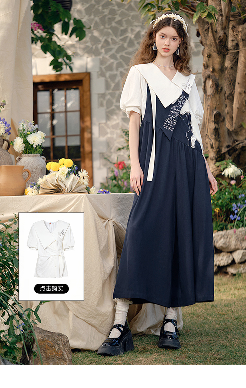 两三事梵高文艺 驭马漫游 2025春季新款动物贴布绣不对称背带裤女