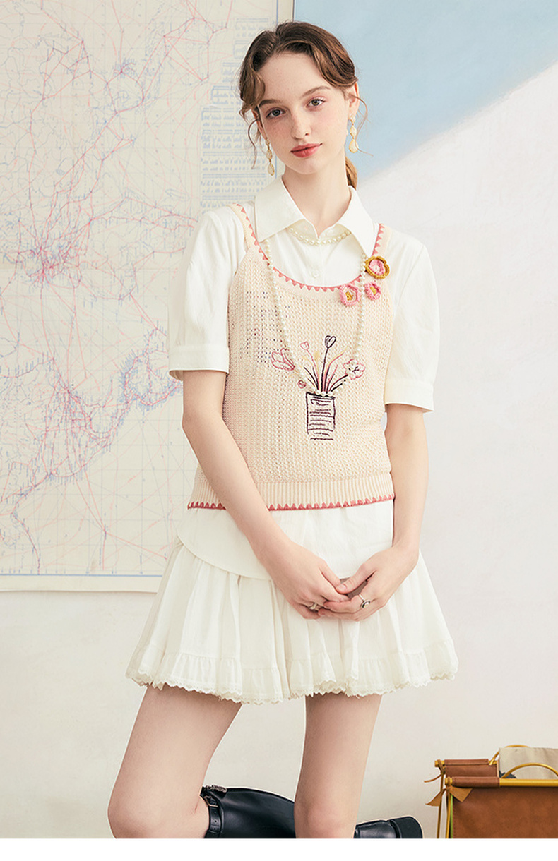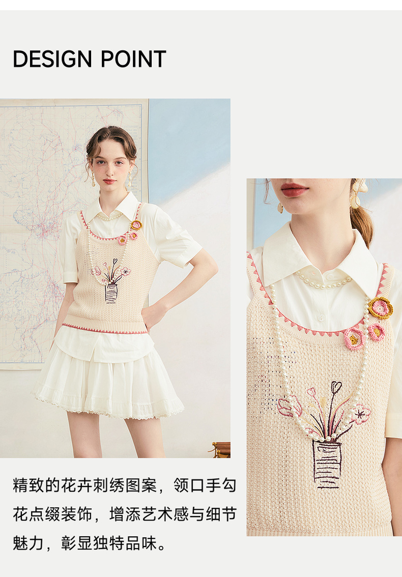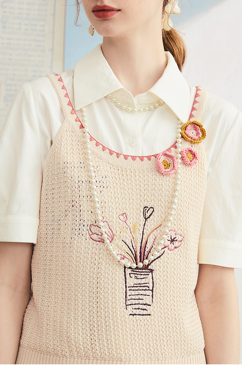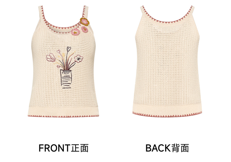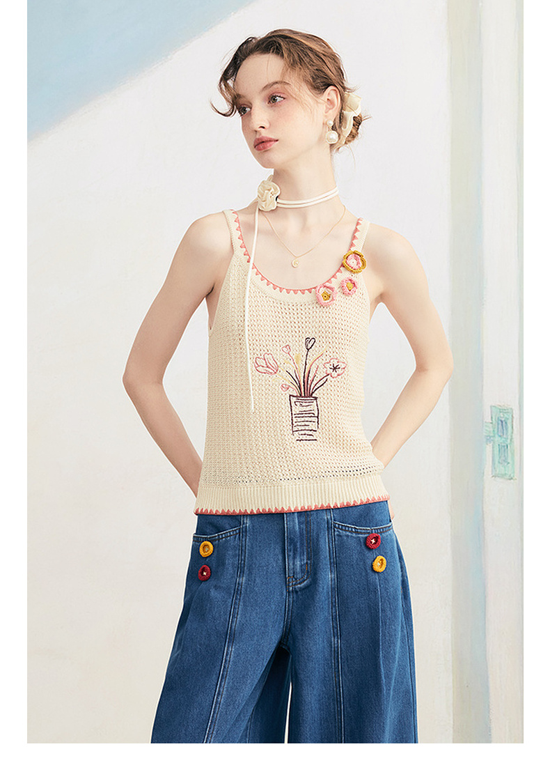两三事 亲吻露台 2025夏季新款复古立体手钩花绣花针织吊带衫女