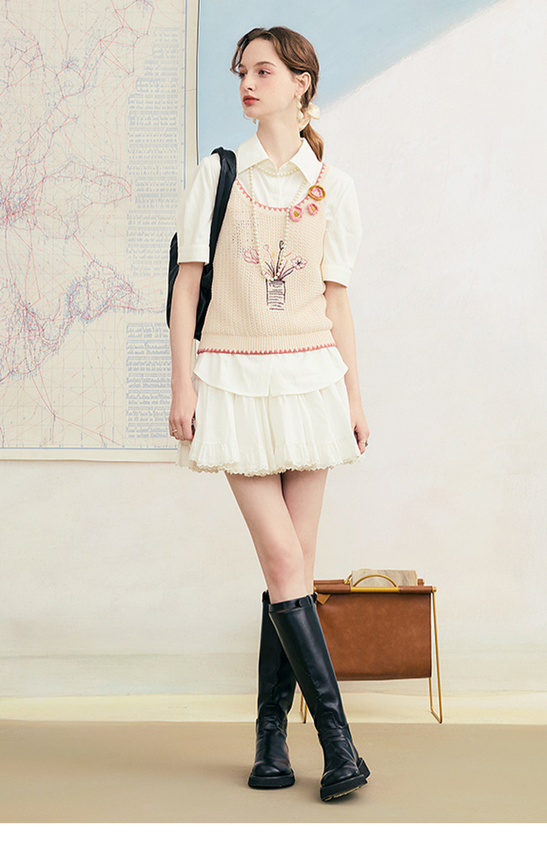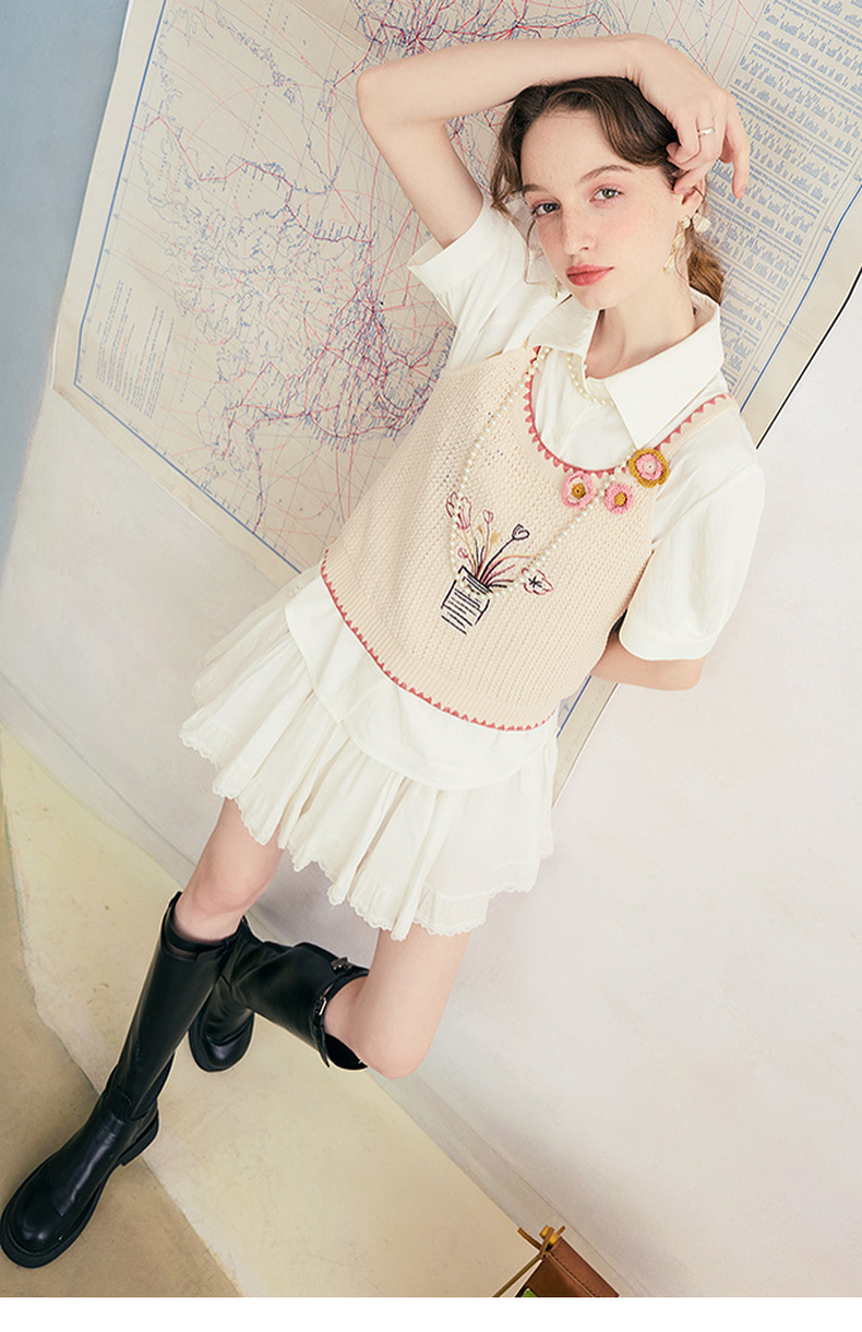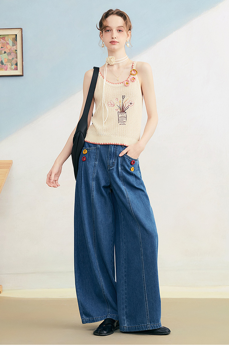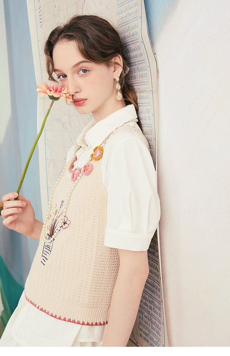 两三事 亲吻露台 2025夏季新款复古立体手钩花绣花针织吊带衫女