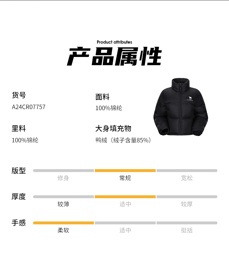 【石墨烯】骆驼户外羽绒服2025秋冬新款女款短款高蓬防风面包服 A24CR07757
