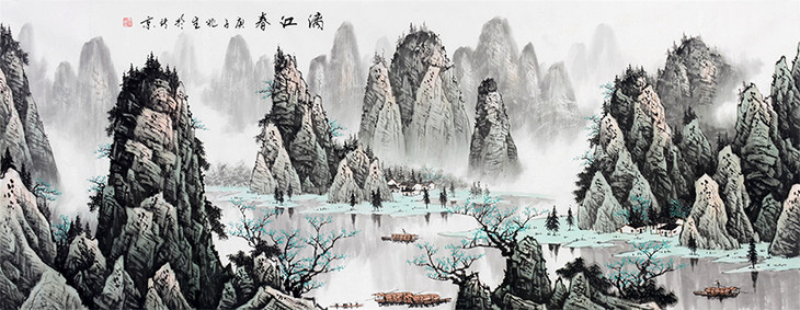 李兆生《漓江春》68*178cm 山水横幅作品 办公室/客厅/书法挂画